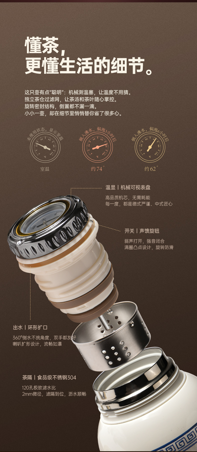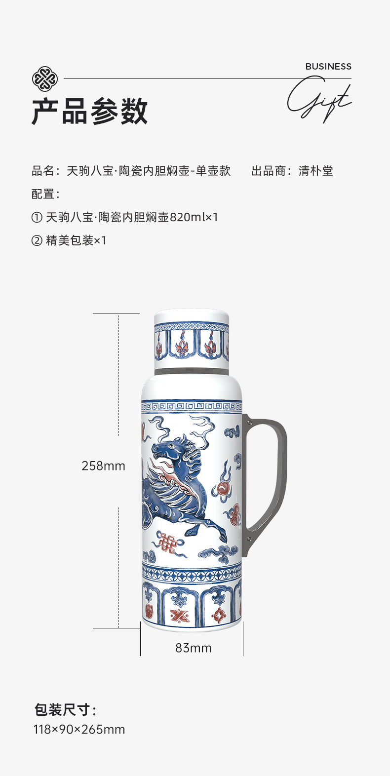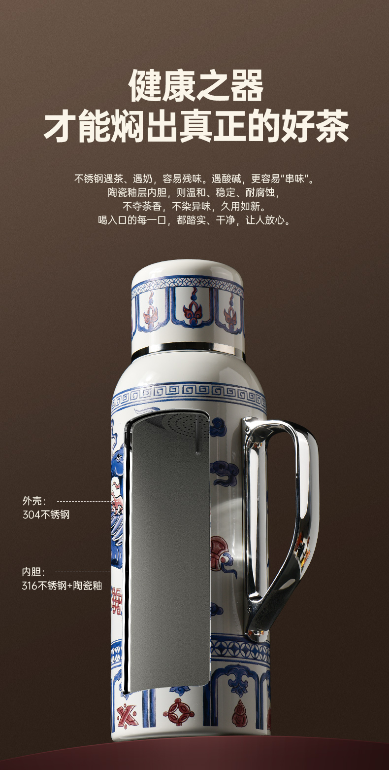 FXQ【天马奔腾保暖壶】天驹八宝陶瓷内胆焖壶 机械测温塞 陶瓷内胆 独立茶仓过滤网 360°倒水不挑角度 大容量保温杯中式礼盒装