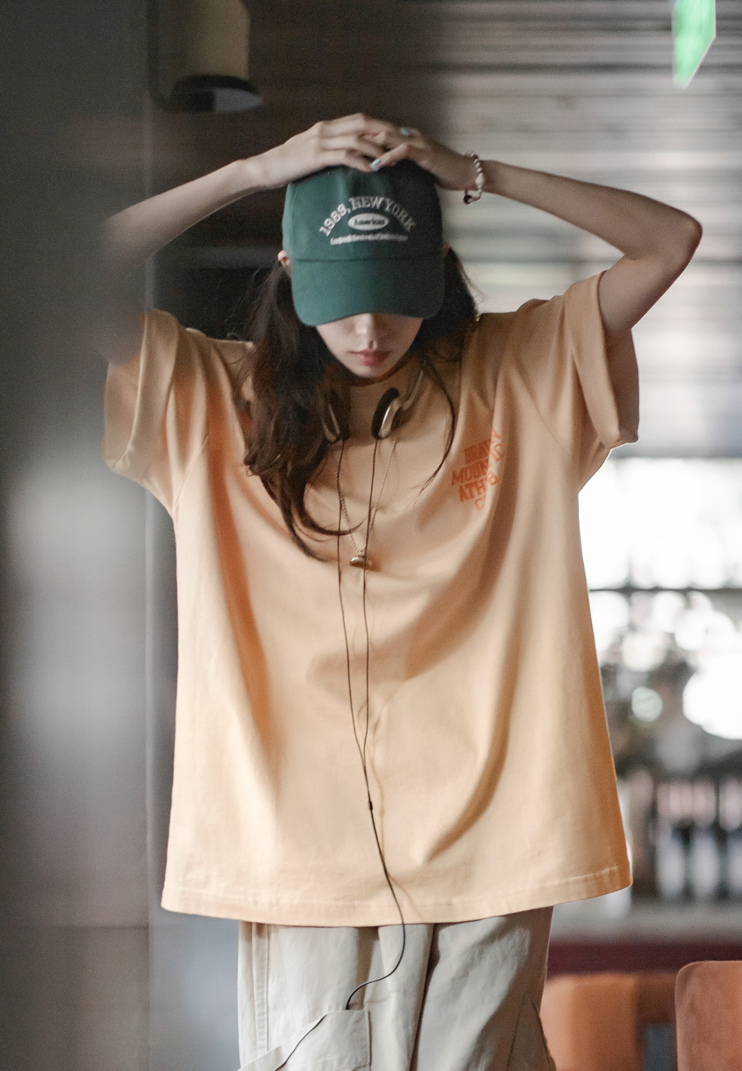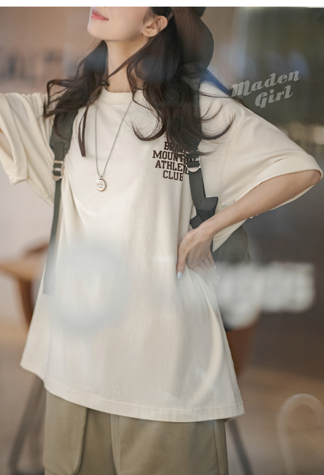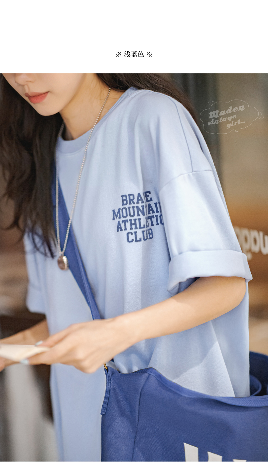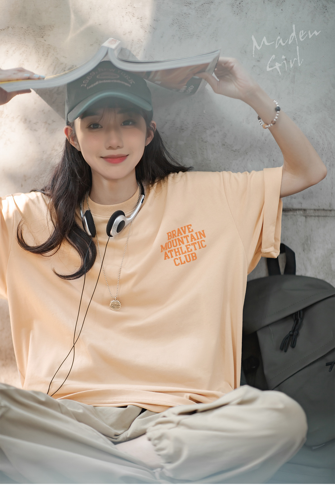 马登女装美式休闲马卡龙纯色短袖T恤字母印花多巴胺女孩穿搭上衣