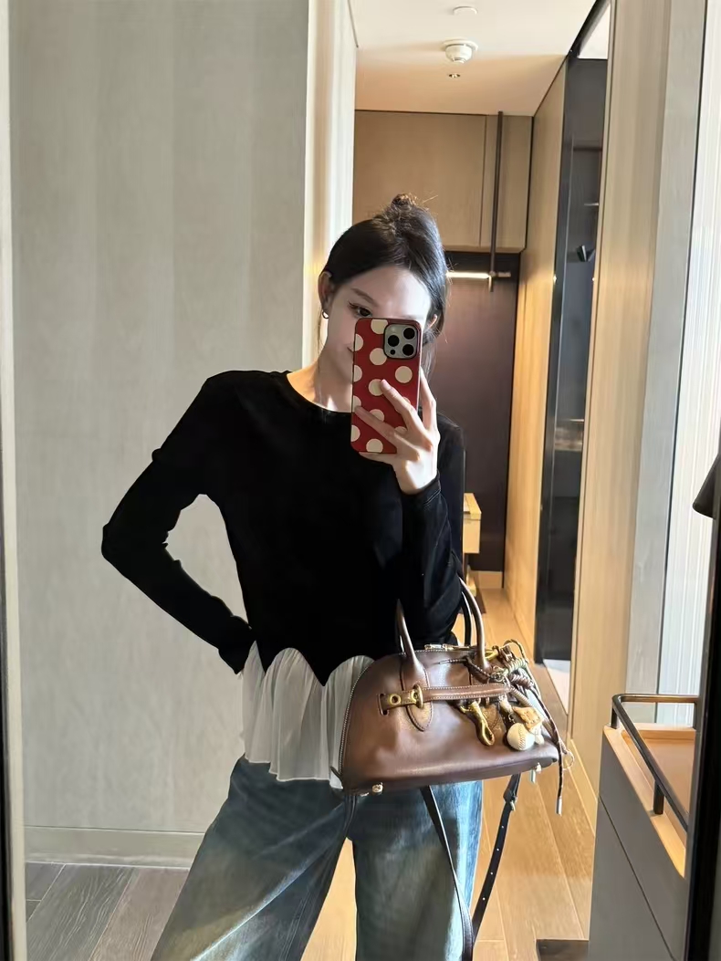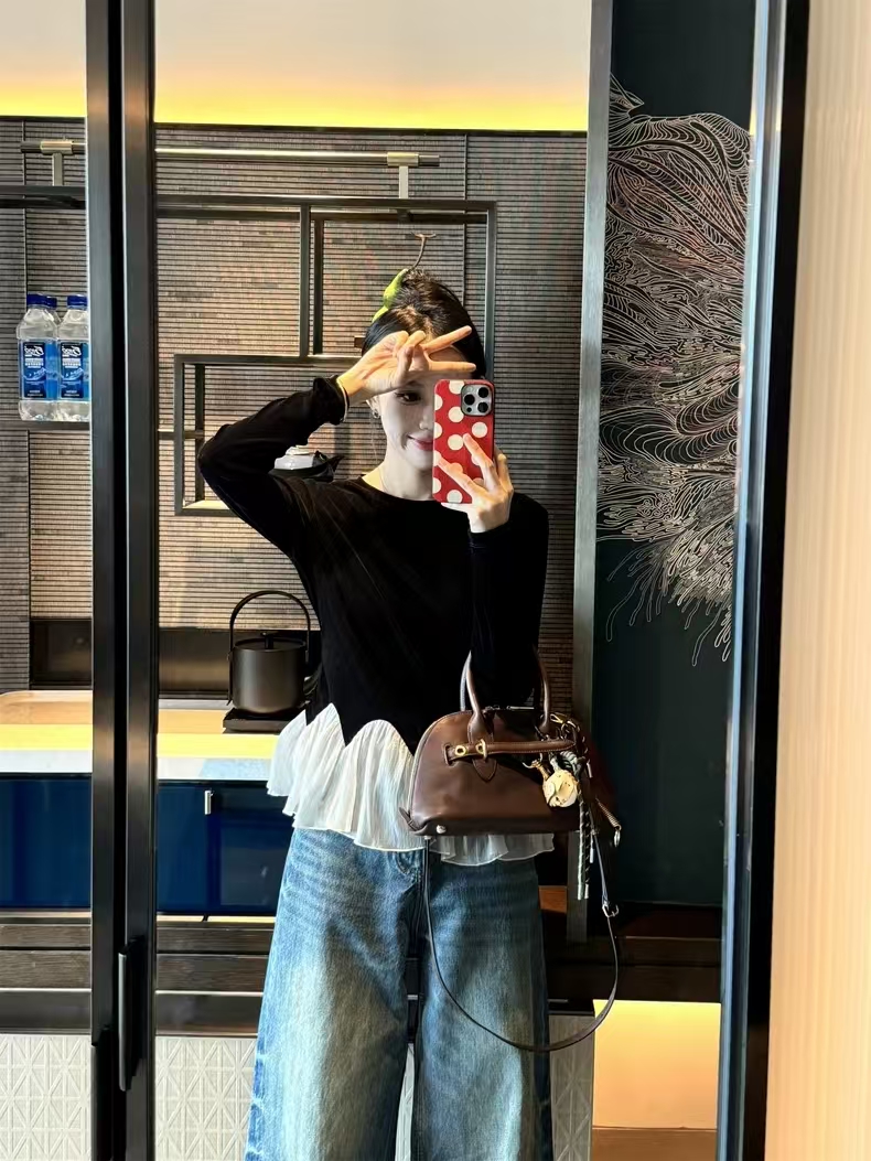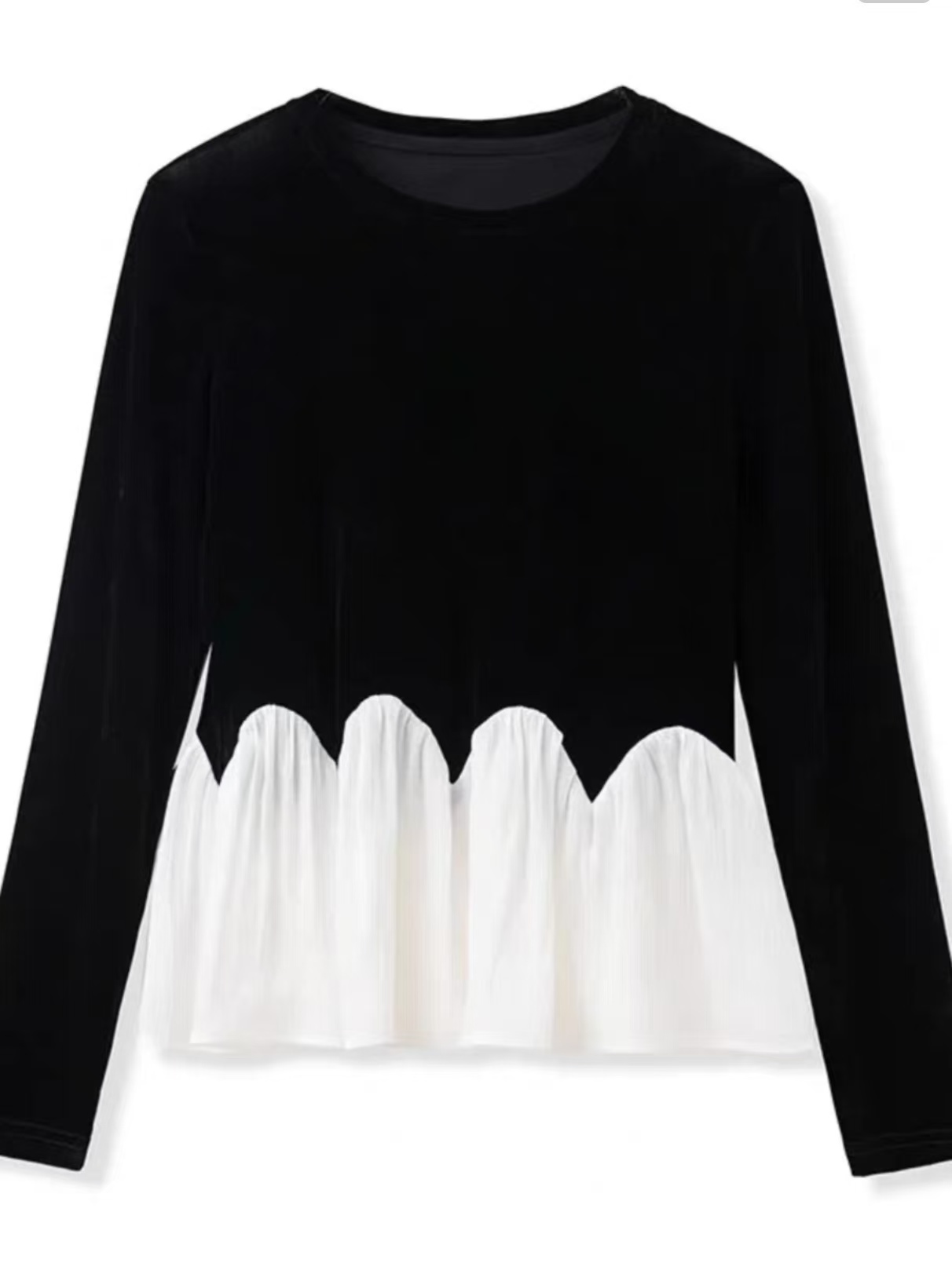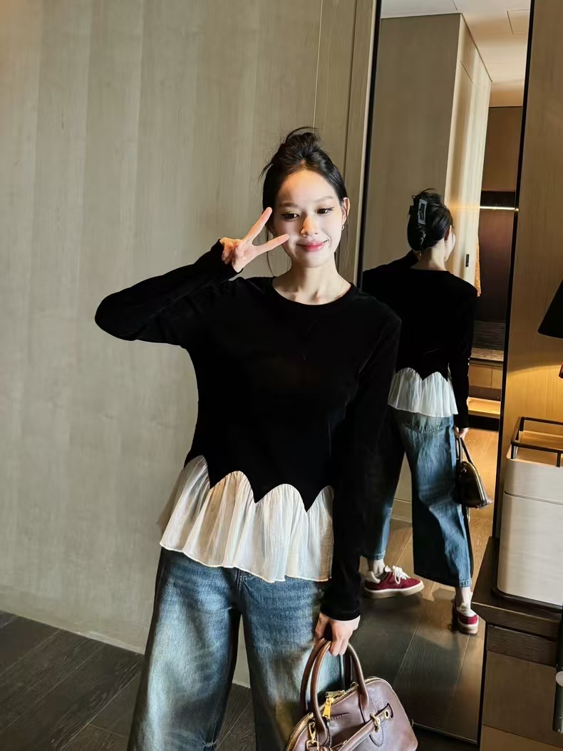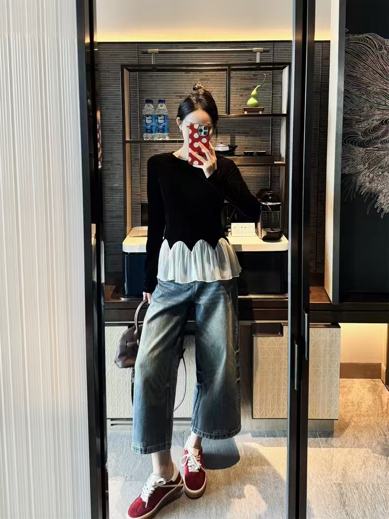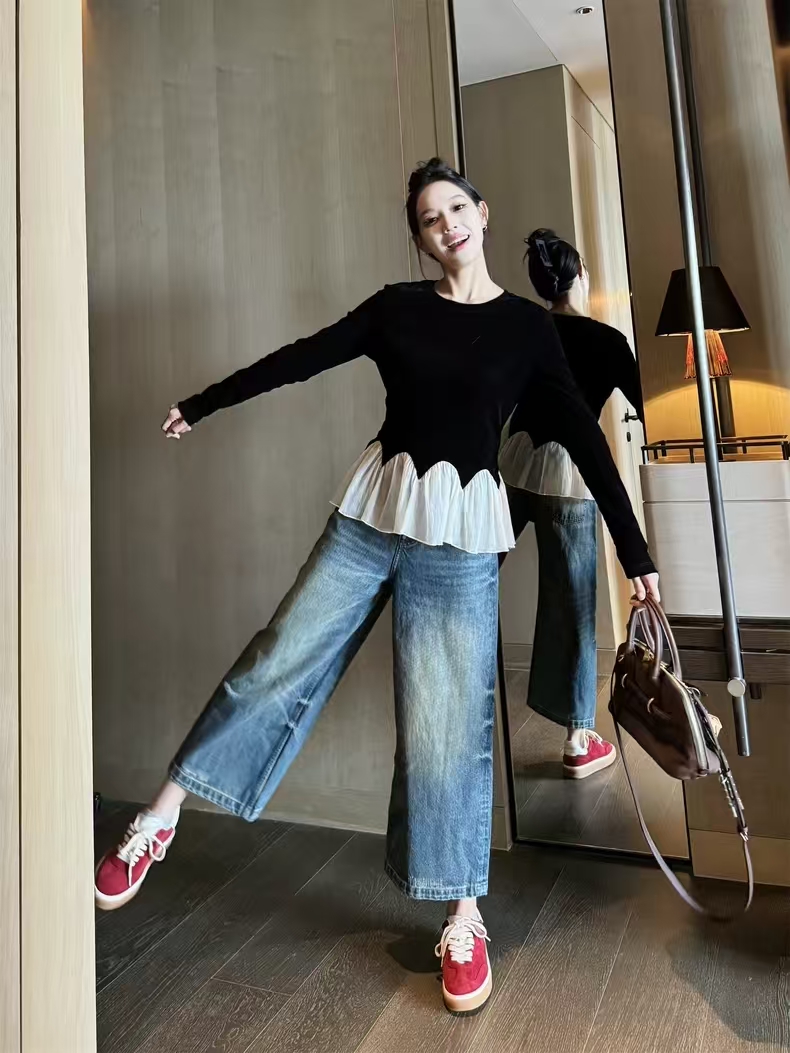 仅衣摆荷叶设计,增添温柔气质,下身裤子也百搭!