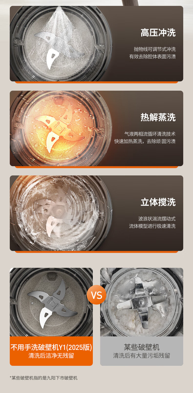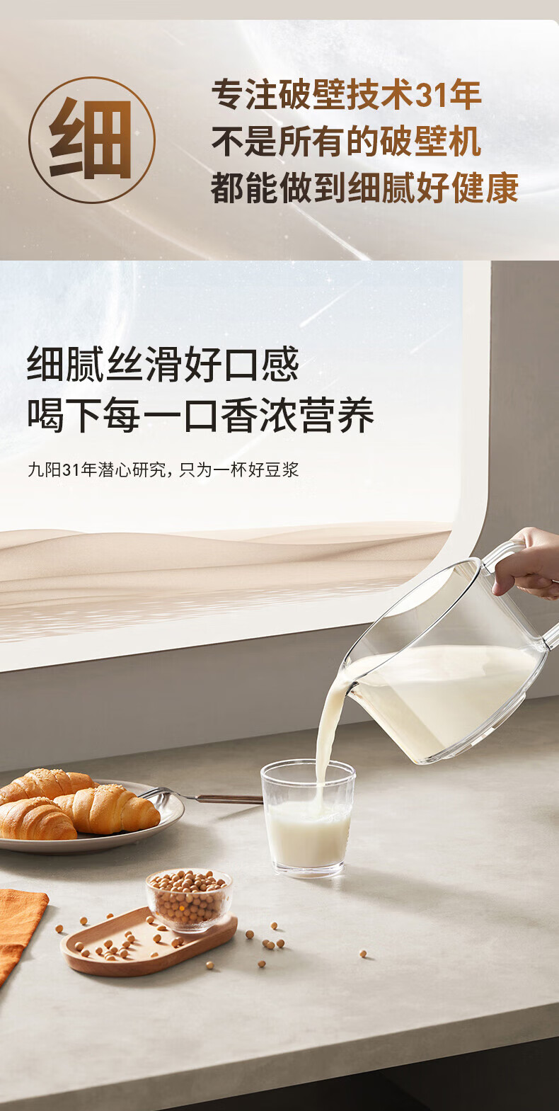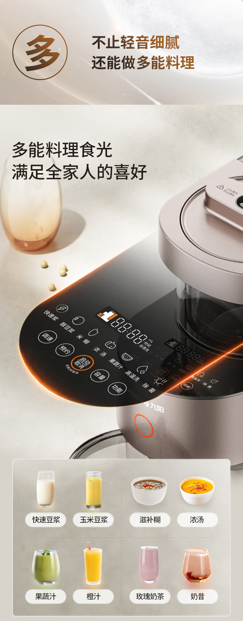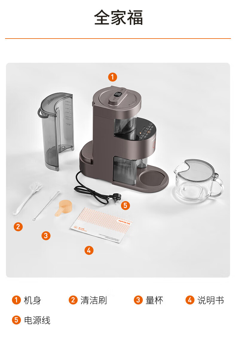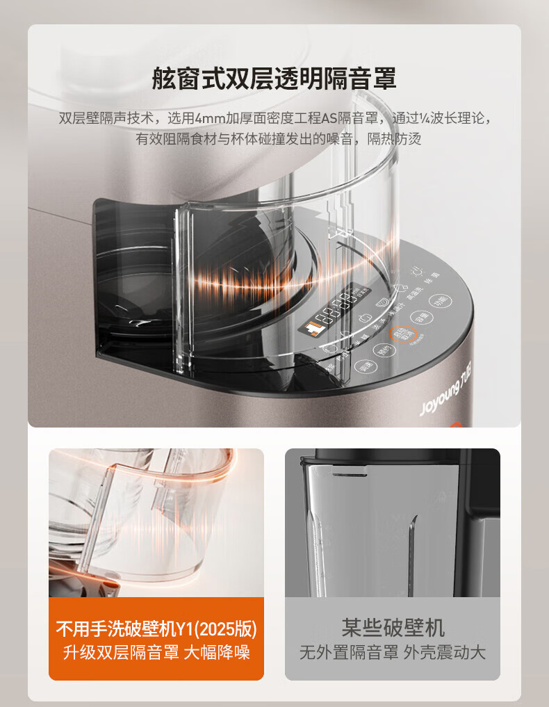 九阳 免手洗破壁机 轻音豆浆机 摩卡棕Y1(不带干磨杯)
