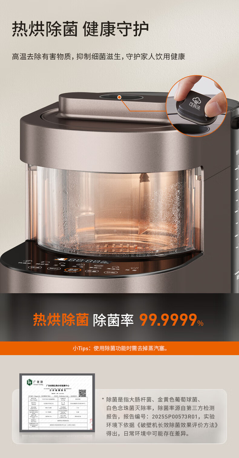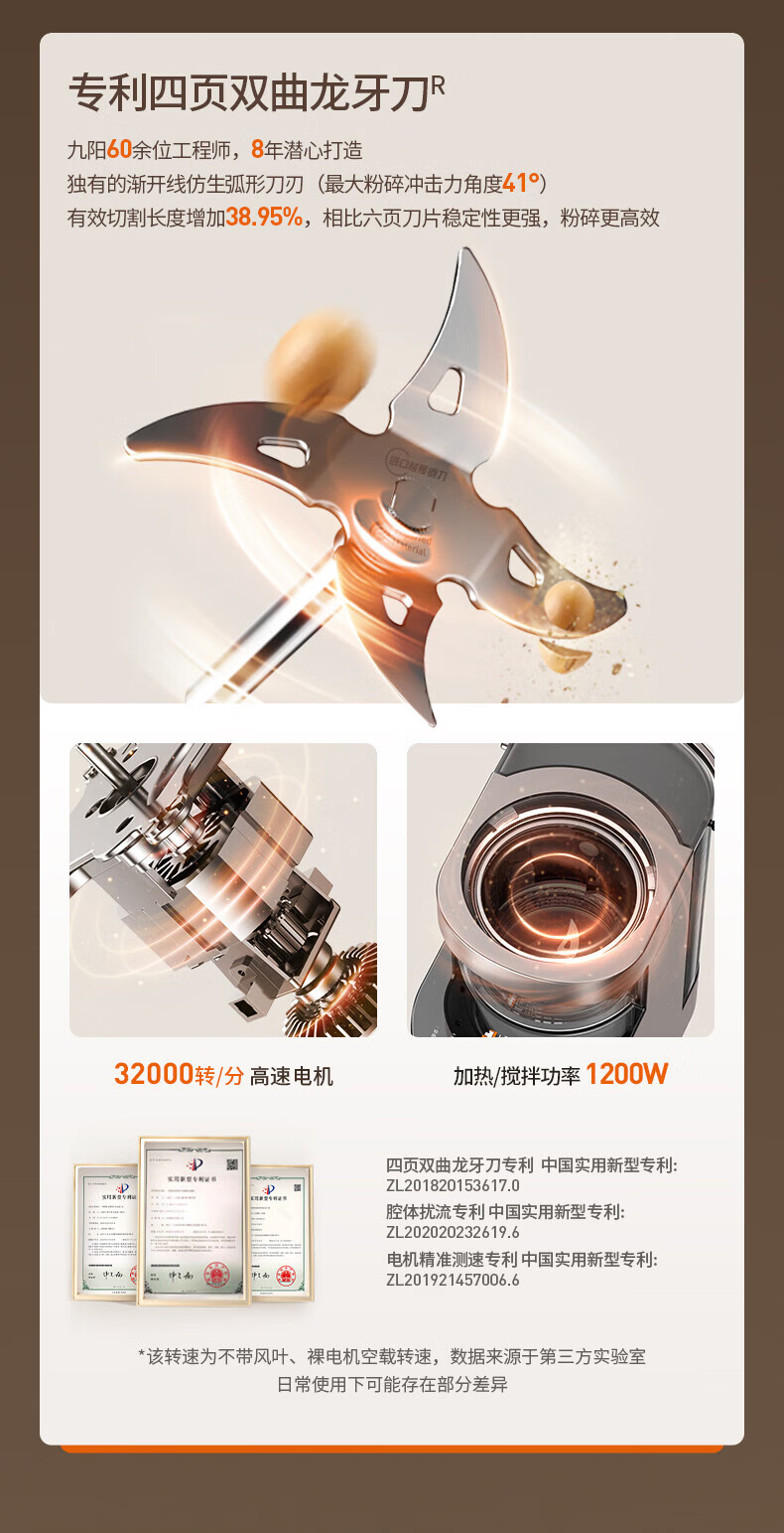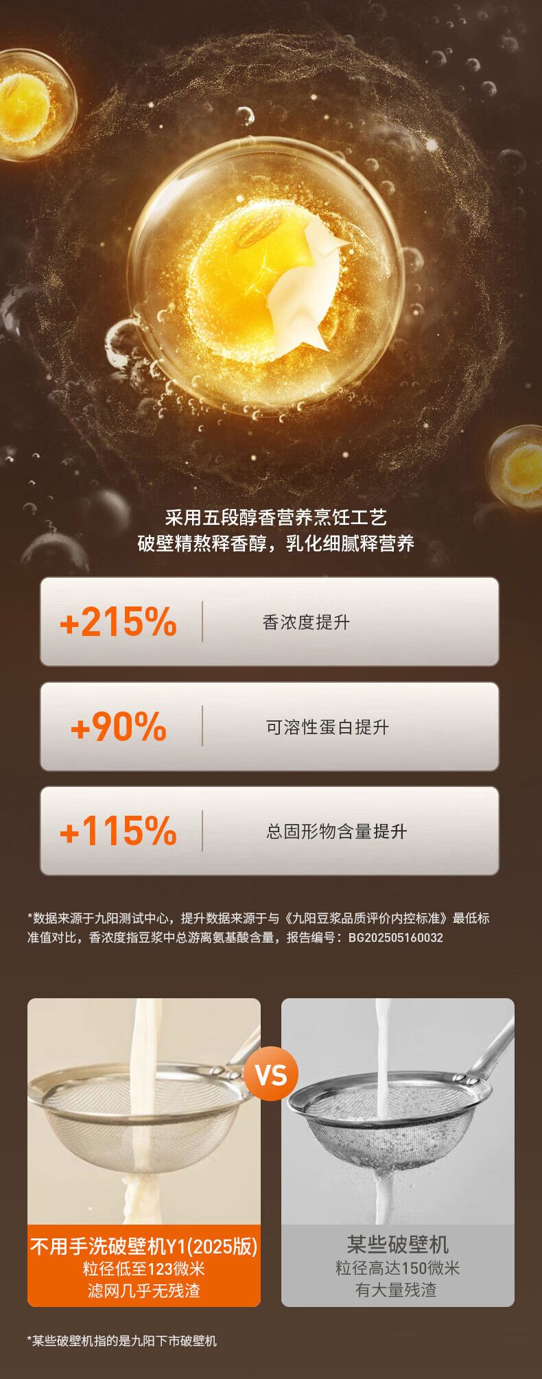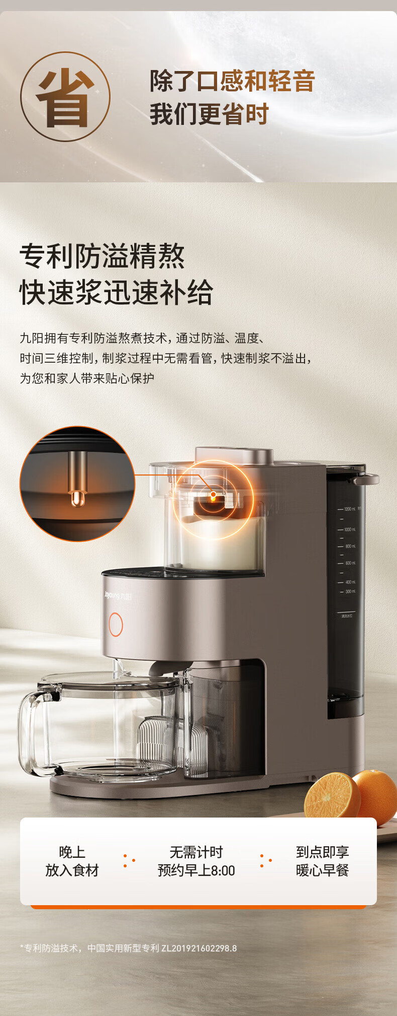 九阳 免手洗破壁机 轻音豆浆机 摩卡棕Y1(不带干磨杯)