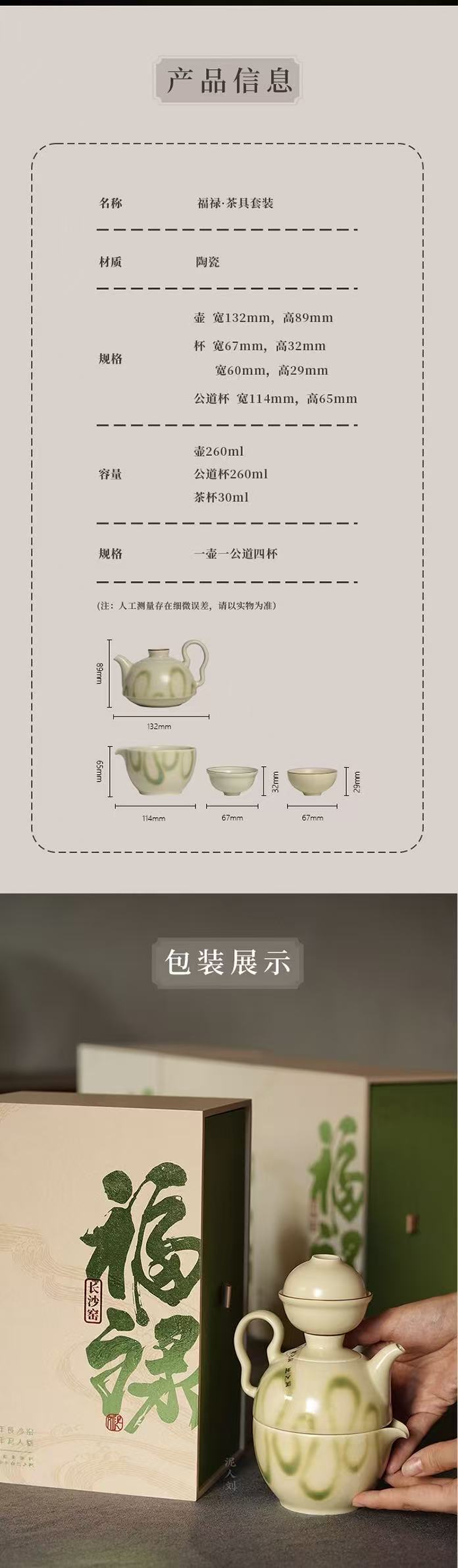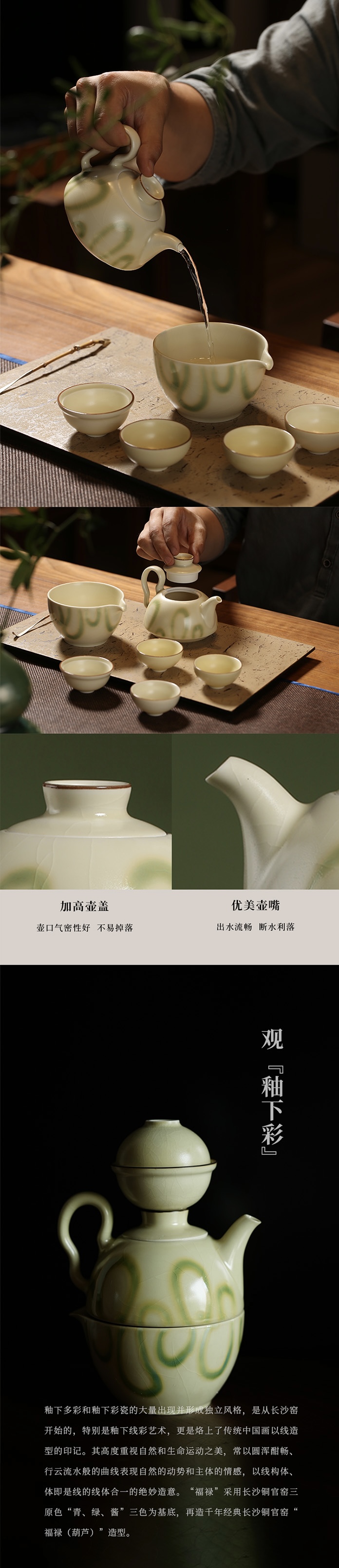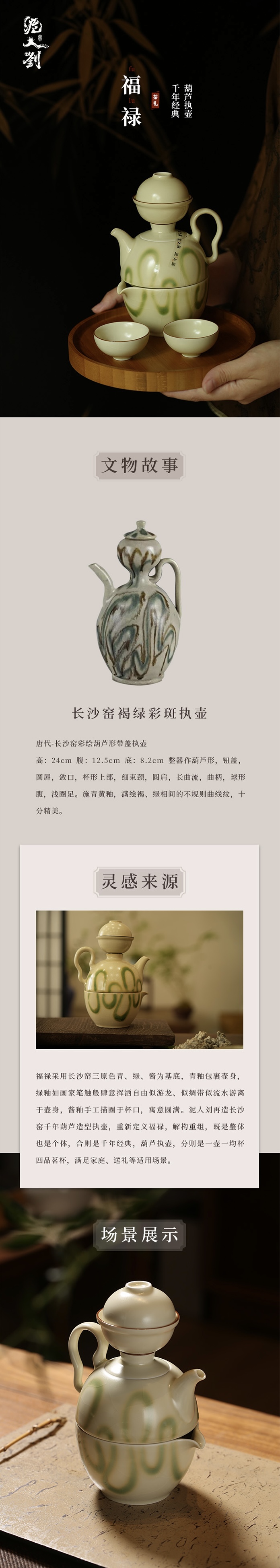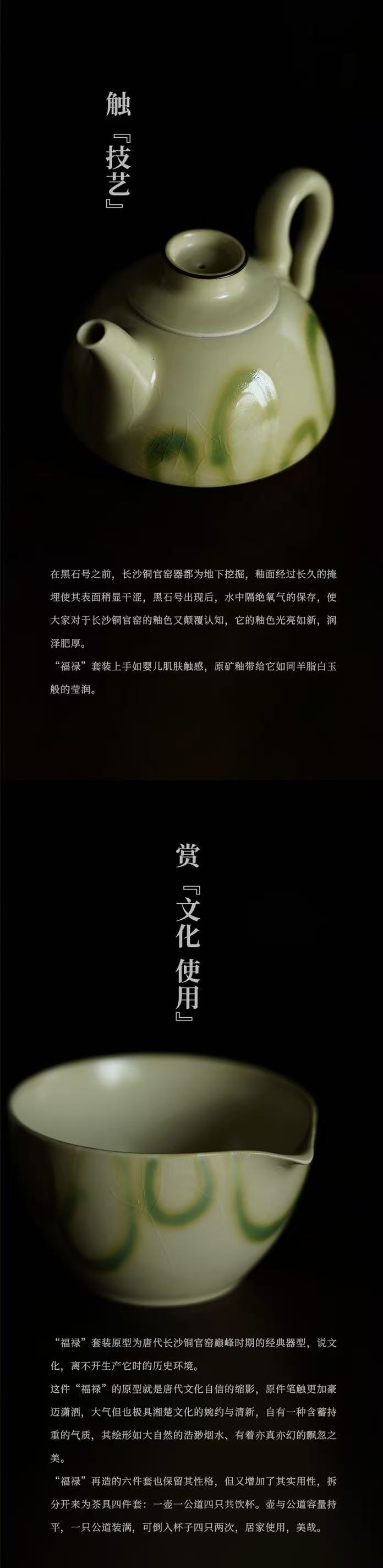 非遗手作 泥人刘 长沙窑 铜官窑陶瓷烧制技艺 福禄 茶具六件套装