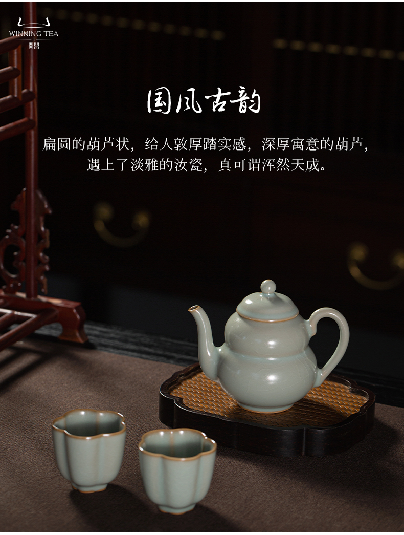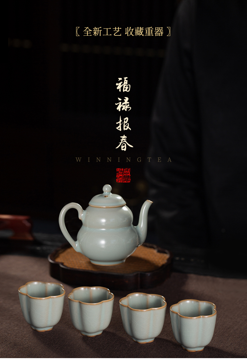 问鼎汝瓷福禄报春套组(福禄壶 香故杯)