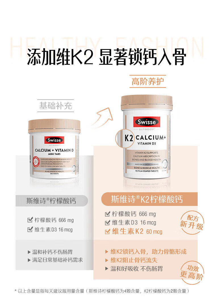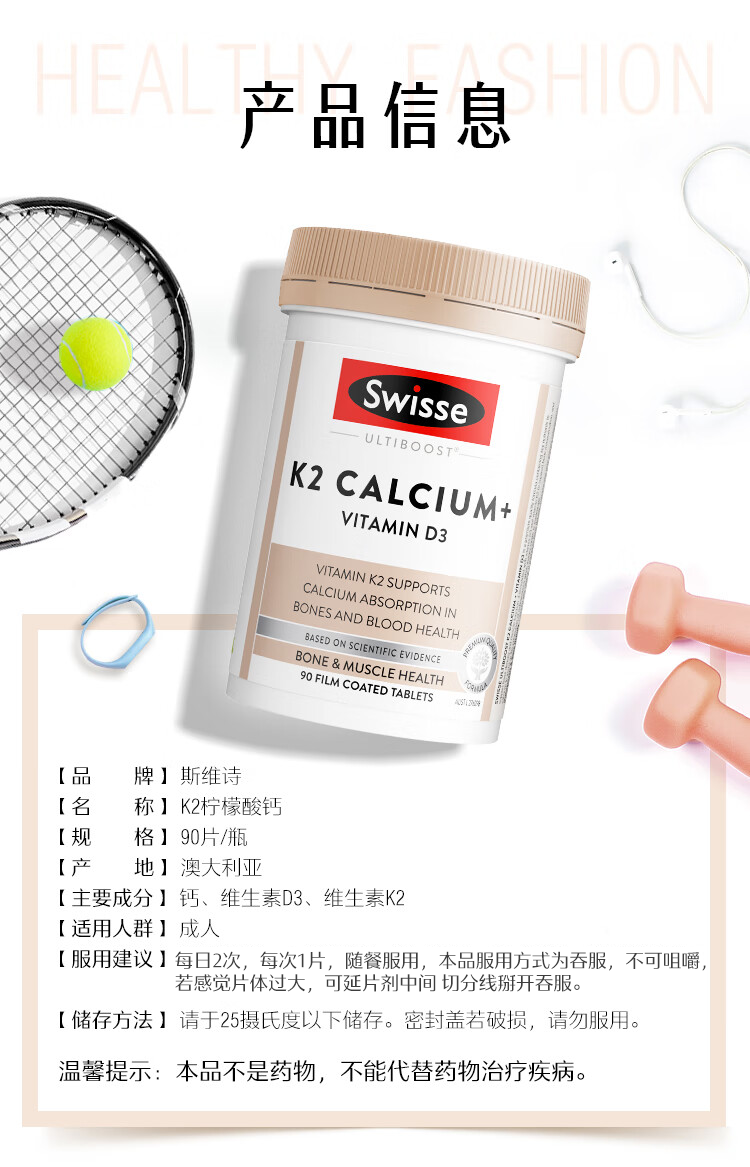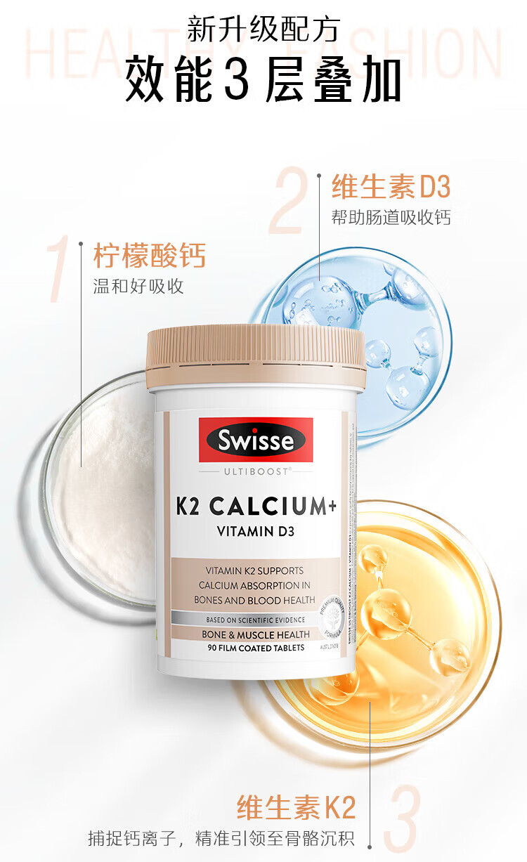 【保税直发】Swisse斯维诗K2钙+维生素D3片90片(2027年6月)