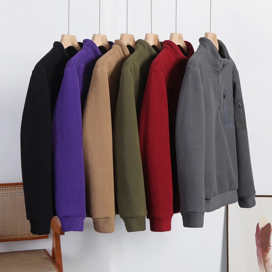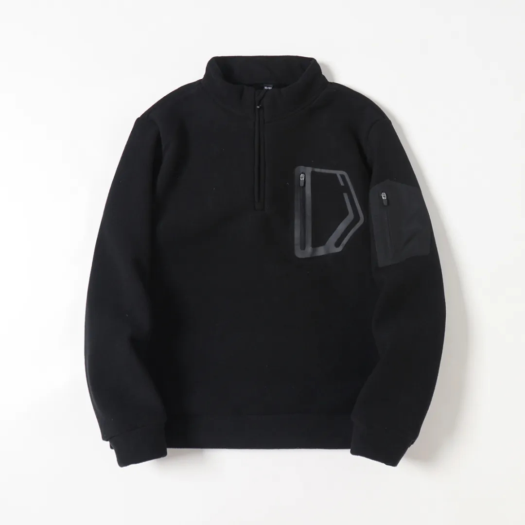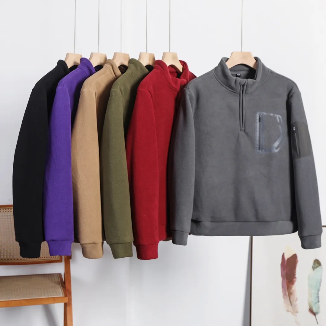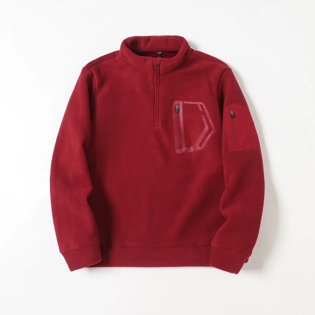 D110610秋冬双面绒防风保暖加厚加绒男士立领半拉链套头休闲宽松卫衣