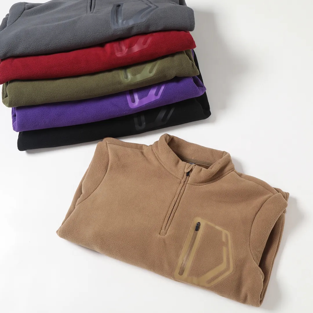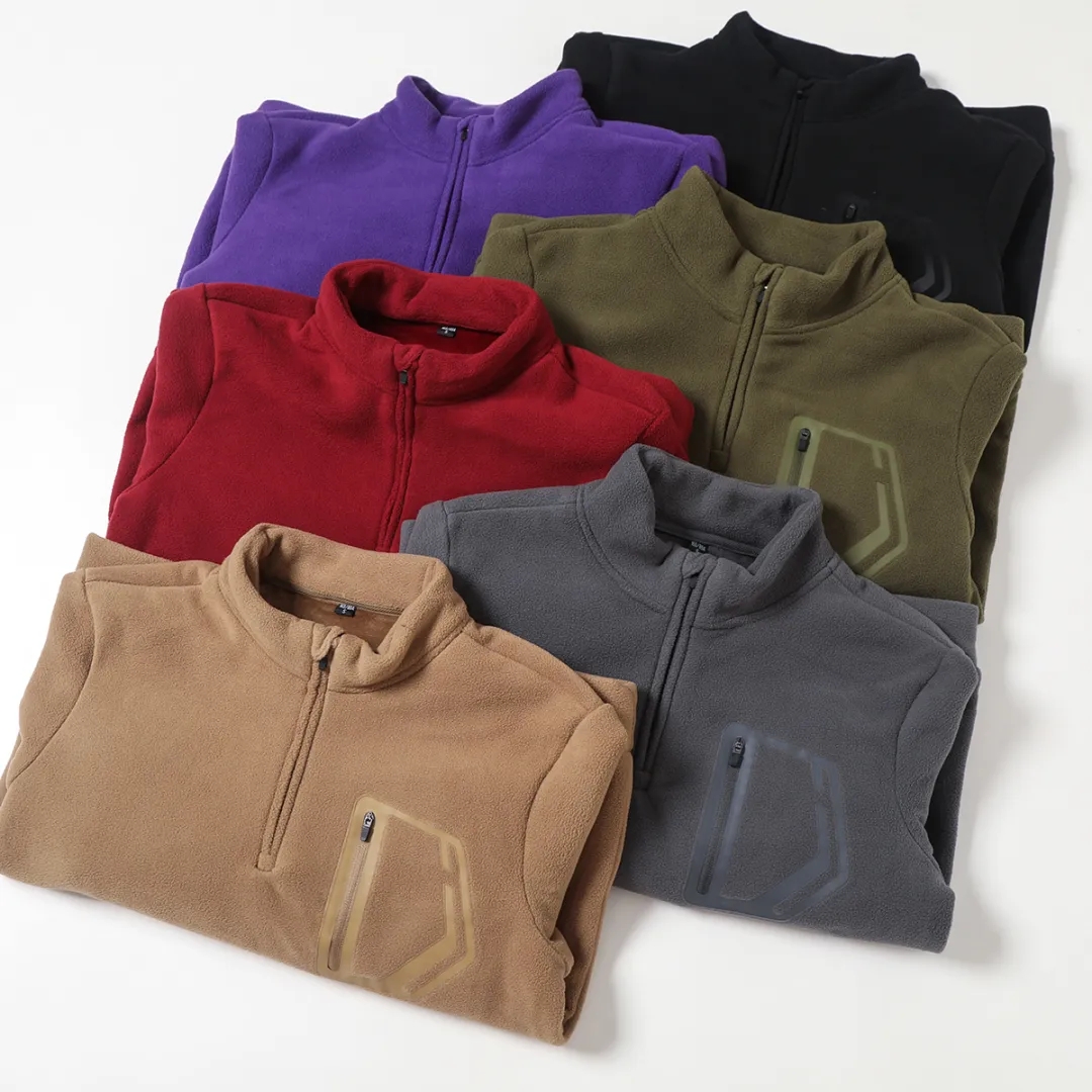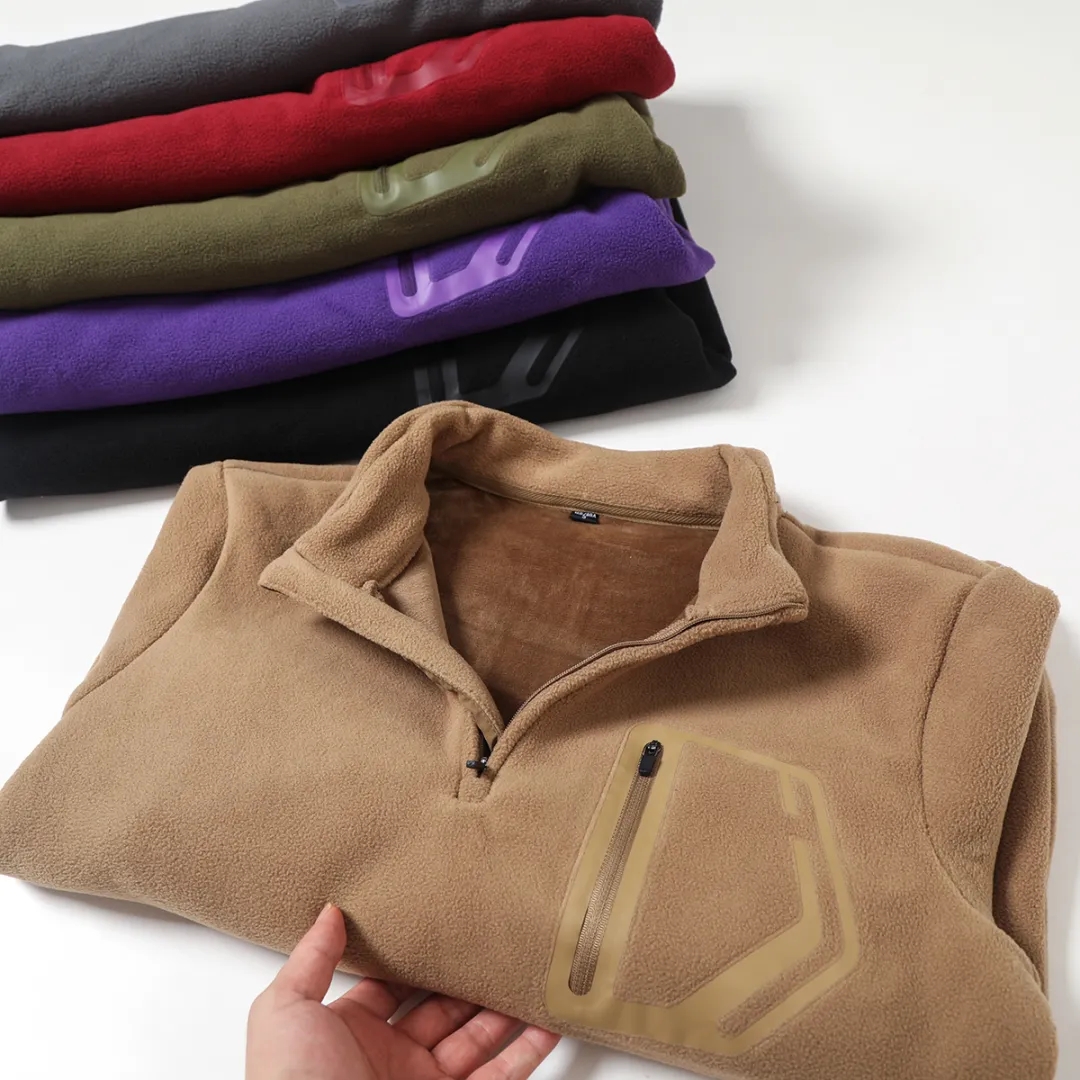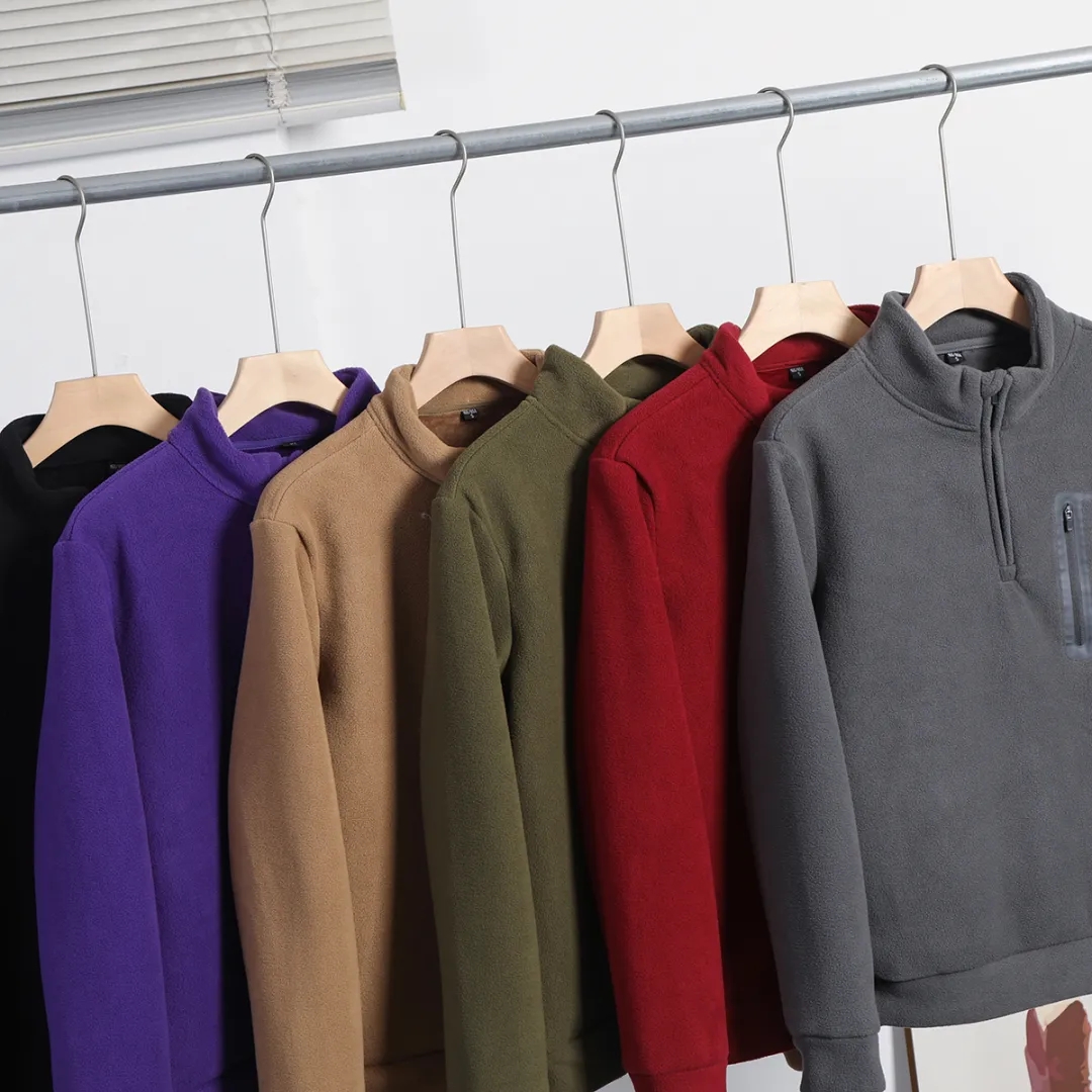 D110610秋冬双面绒防风保暖加厚加绒男士立领半拉链套头休闲宽松卫衣