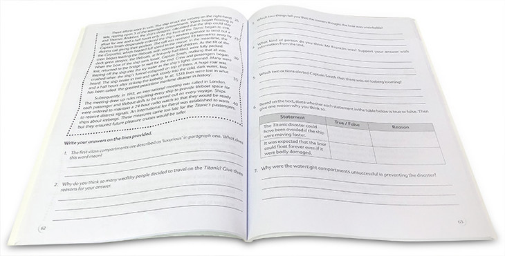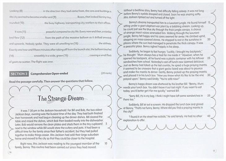 ·Exercise formats such as MCQ (multiple choice questions), cloze passages and open-ended questions to develop students’ literal, inferential and higher-order thinking skills;