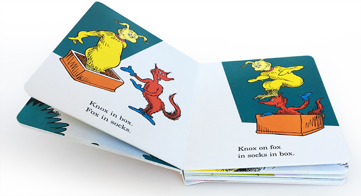 Dr. Seuss's Fox in Socks has been troubling tongues—and garnering giggles—since 1965. Written specifically to be read aloud, it features a tricky fox in socks and the progressively more difficult tongue-twisting games he plays on his exasperated friend Mr. Knox. Now available for the first time in an abridged, sturdy, board book edition, this beloved classic will have babies of all ages laughing with—and at—their parents as they struggle, like Knox, to blab such blibber blubber as muddle puddle tweetle poodle beetle noodle bottle paddle battle!