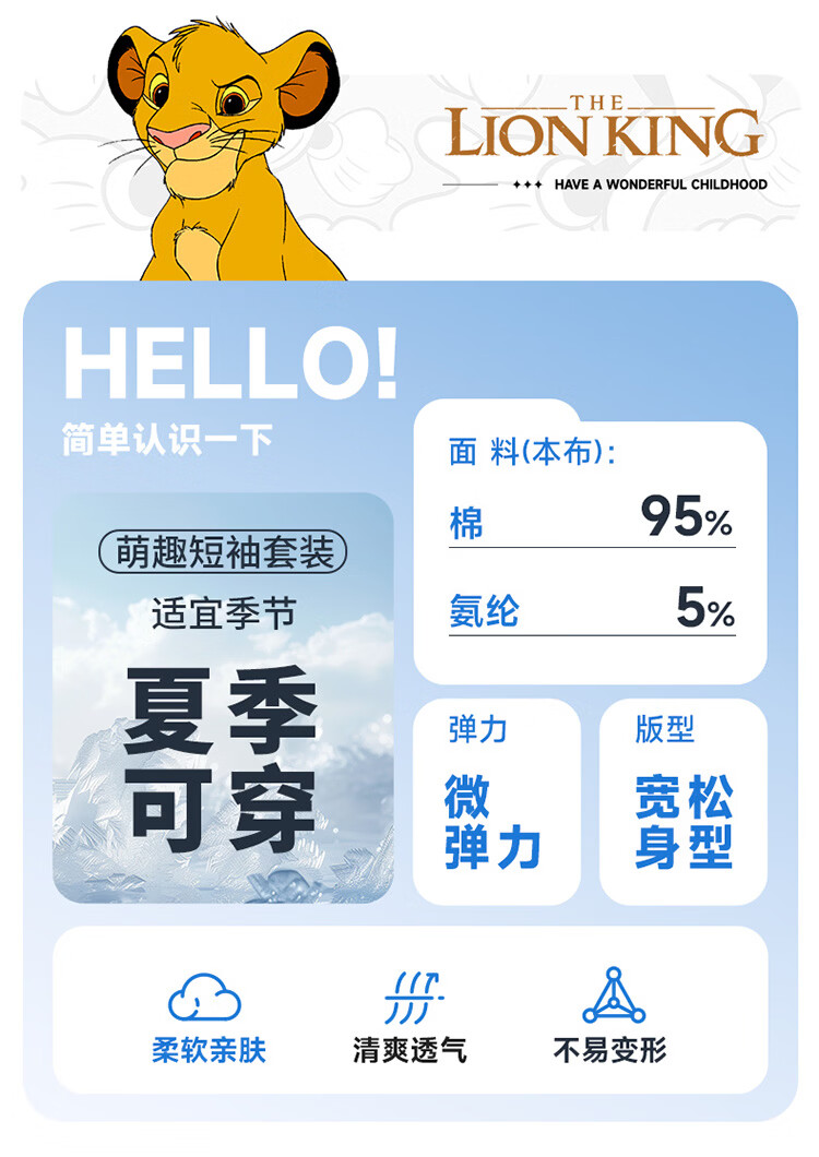迪士尼男童夏季卡通短袖套装ZD2FT046