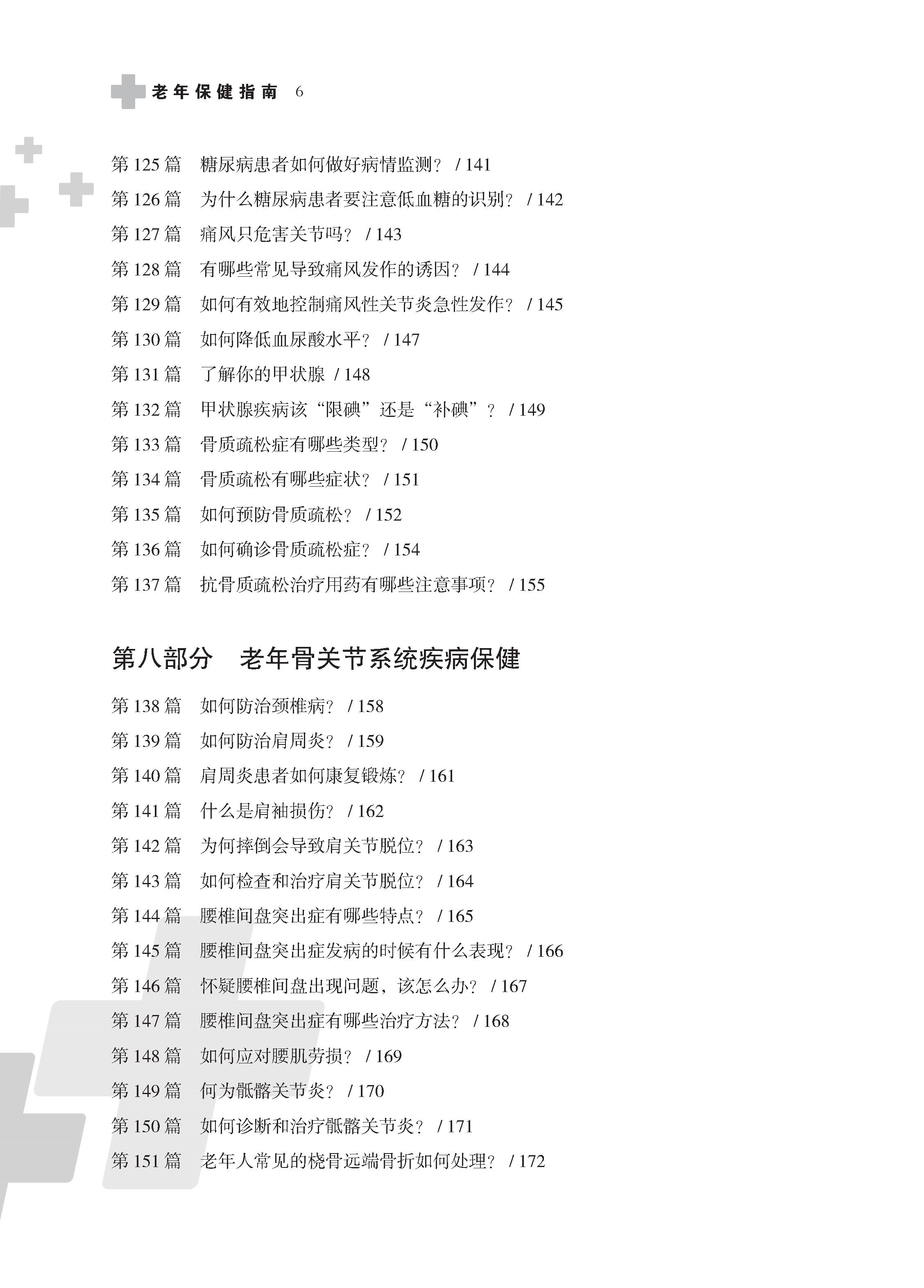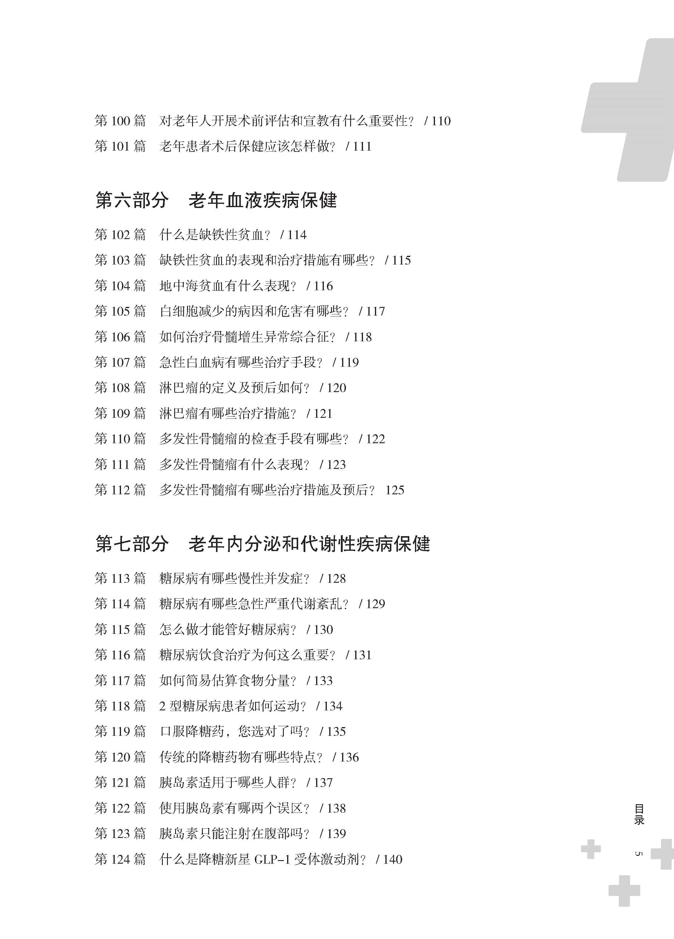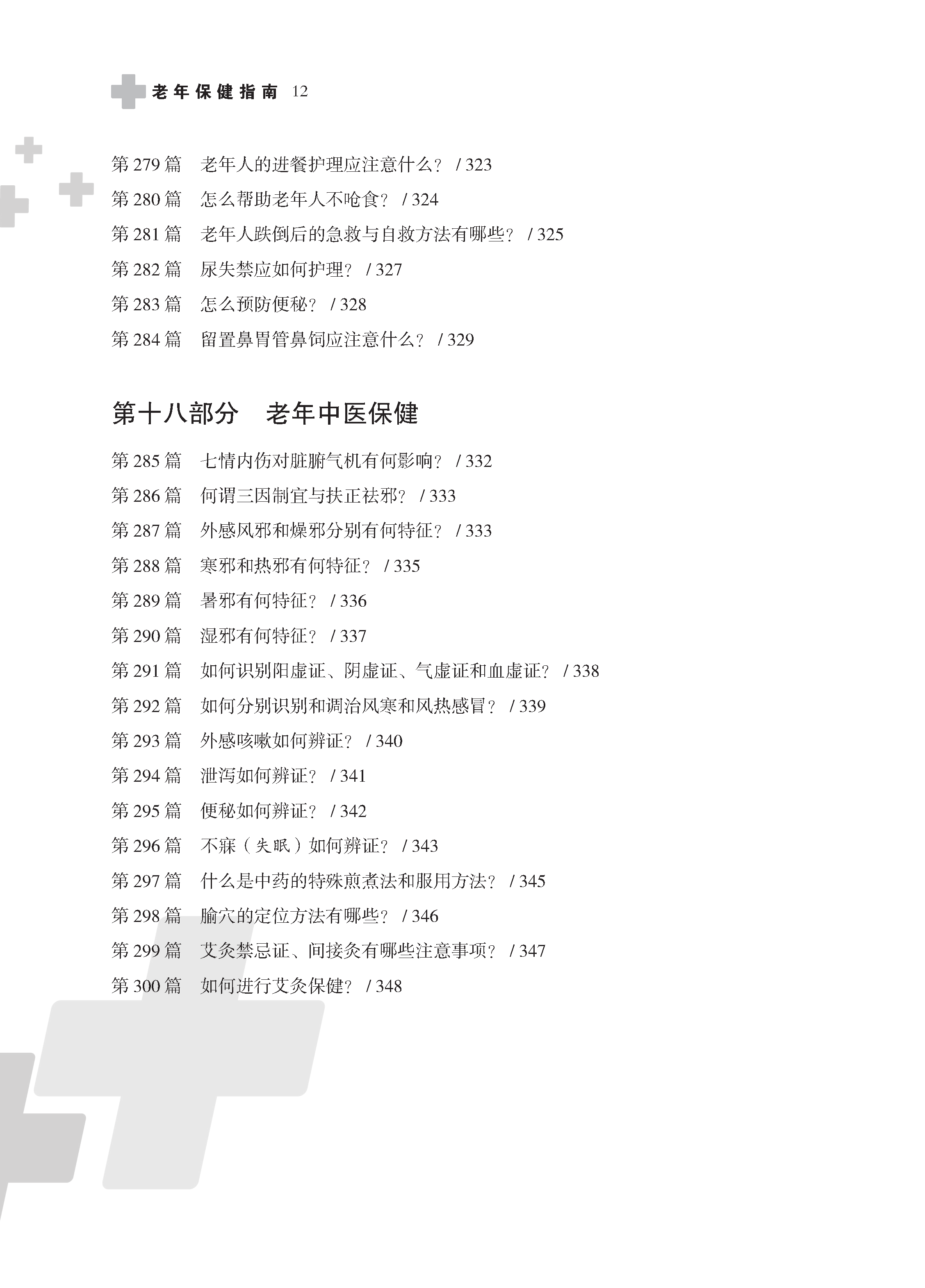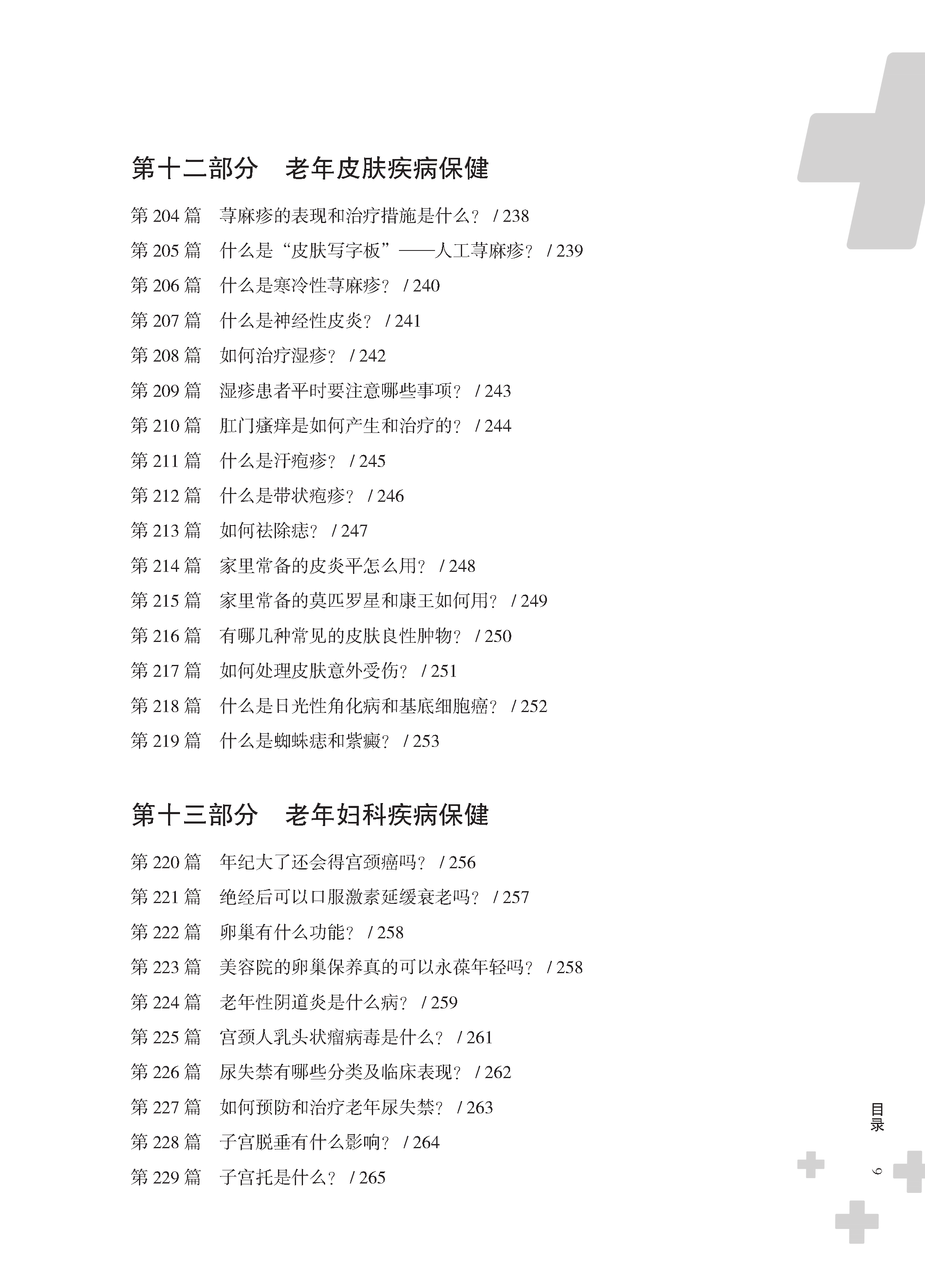 本书针对老年人的心理和生理特点,涵盖老年呼吸疾病保健、老年心血管疾病保健、老年消化系统疾病保健、老年泌尿系统疾病保健、老年血液疾病保健、老年内分泌和代谢性疾病保健、老年骨关节系统疾病保健、老年神经疾病保健、老年肿瘤保健、老年眼耳鼻喉疾病保健、老年皮肤疾病保健、老年妇科疾病保健、老年常见功能障碍康复与保健、老年饮食营养保健、老年药物保健、老年护理保健、老年中医保健17个部分内容,既帮助读者了解和认识老年疾病,又指导大家如何预防和保健老年疾病。