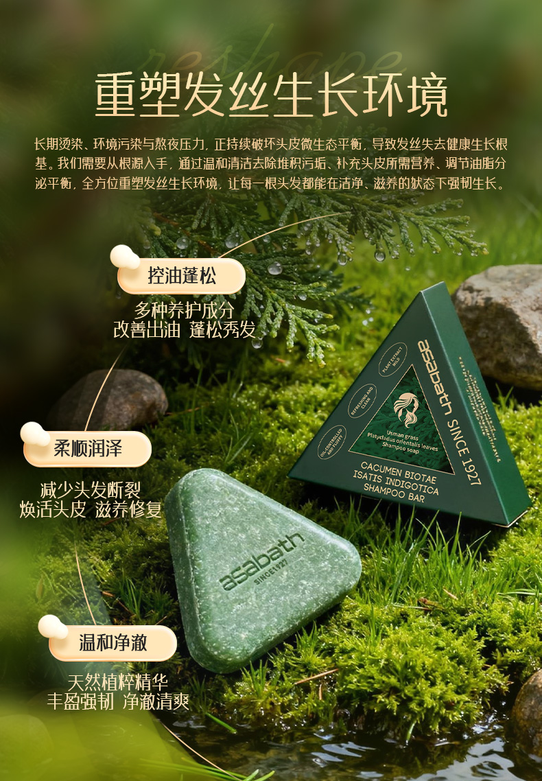 【冬季油头克星 芬兰百年品牌】asabath新疆乌斯曼草洗发皂侧伯叶何首乌护发皂固发防断发草本中药手工皂100g+送起泡网