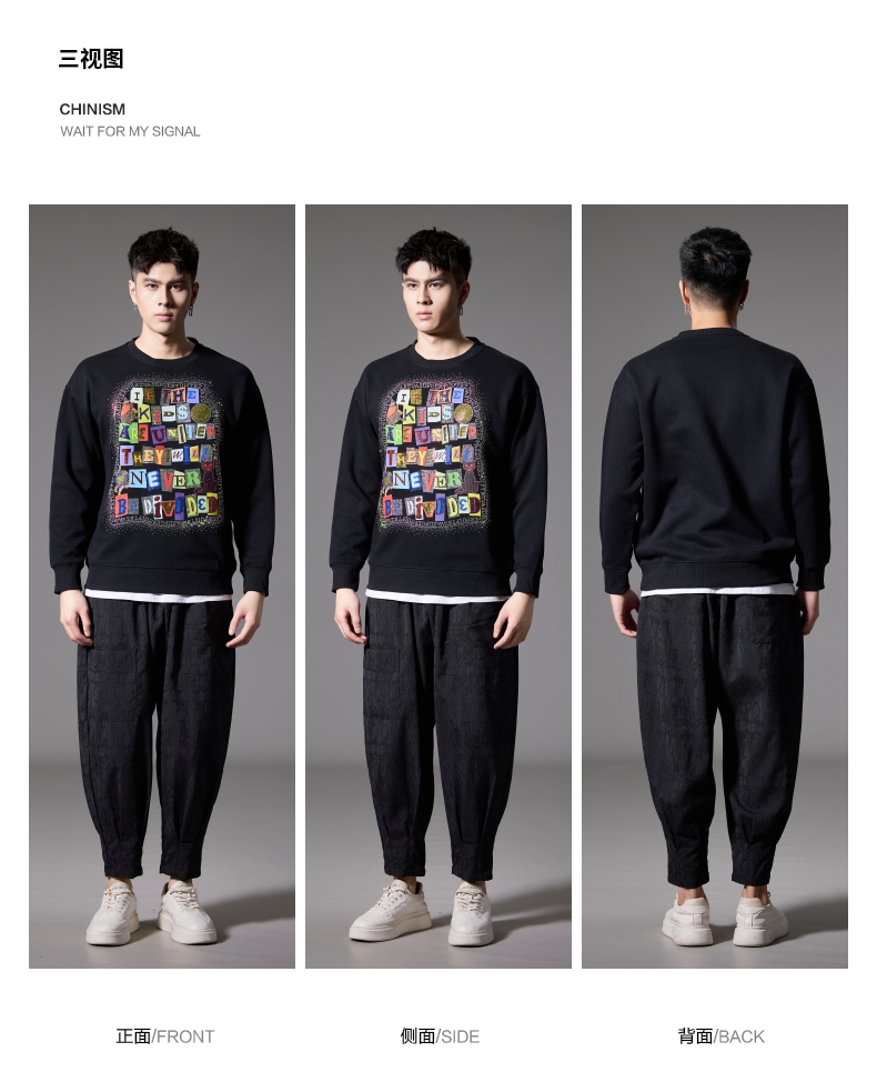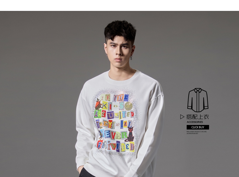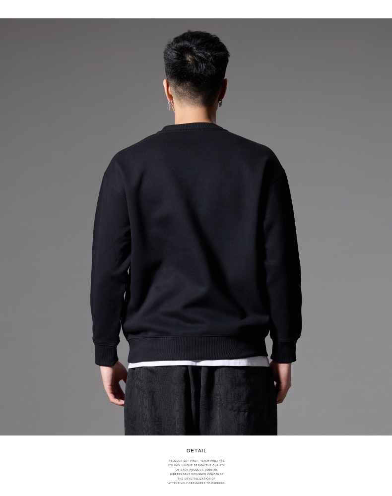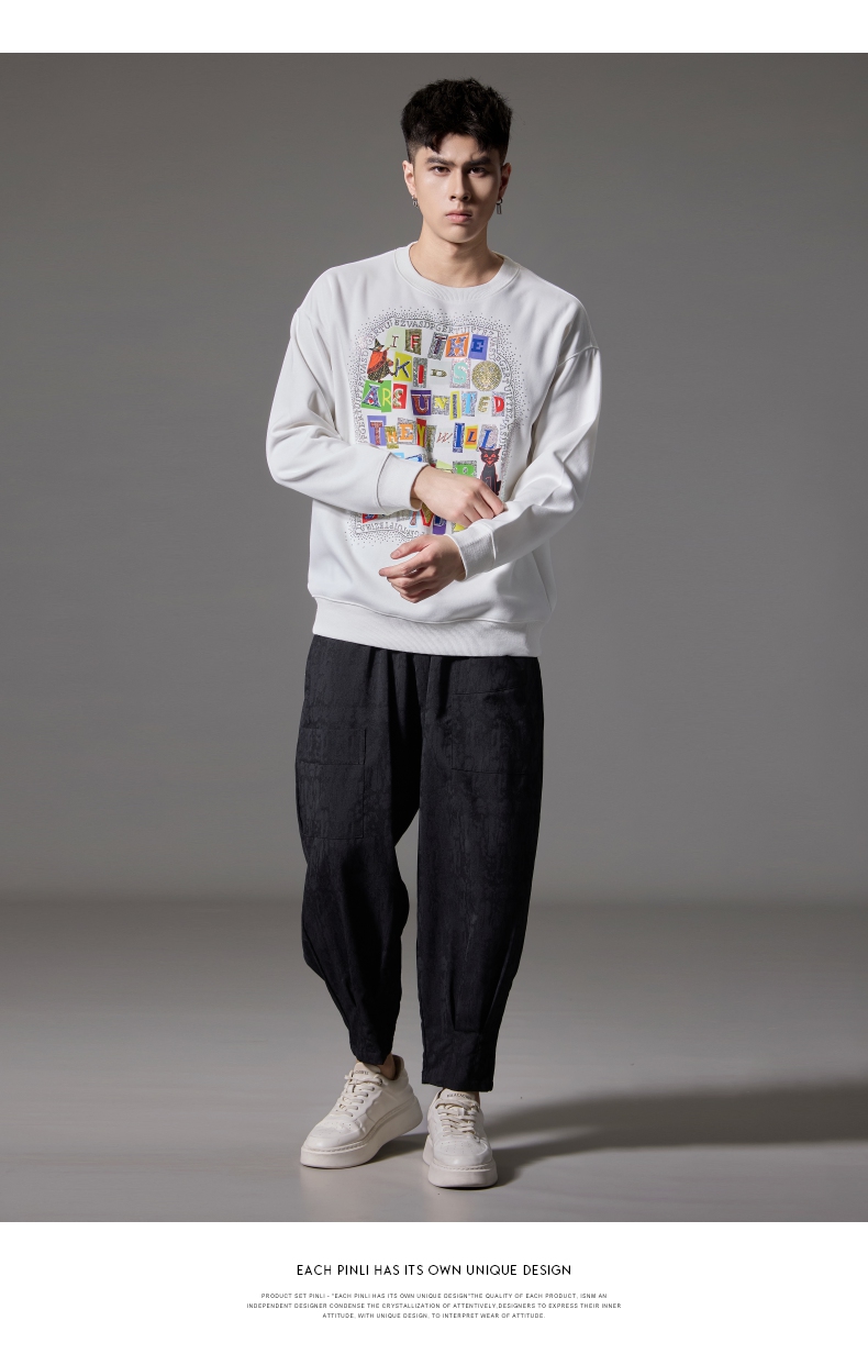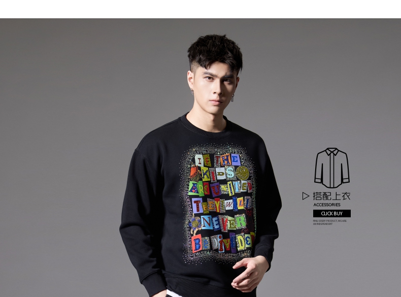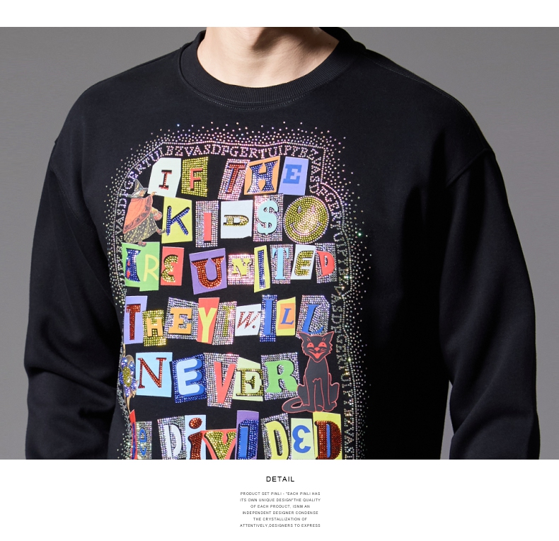PINLI品立2024秋季新款字母烫钻圆领卫衣潮牌休闲百搭套头男上衣BG243109011