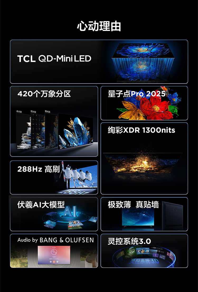 TCL电视 85P12K QD-Mini LED 420个万象分区 绚彩XDR 1300nits Audio by Bang & Olufsen 85英寸