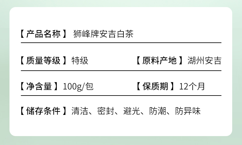 【2026年新茶预售】狮峰丨安吉白茶 绿茶 明前精品 100g 纸包 2026年新茶,新茶预计4月10日发货