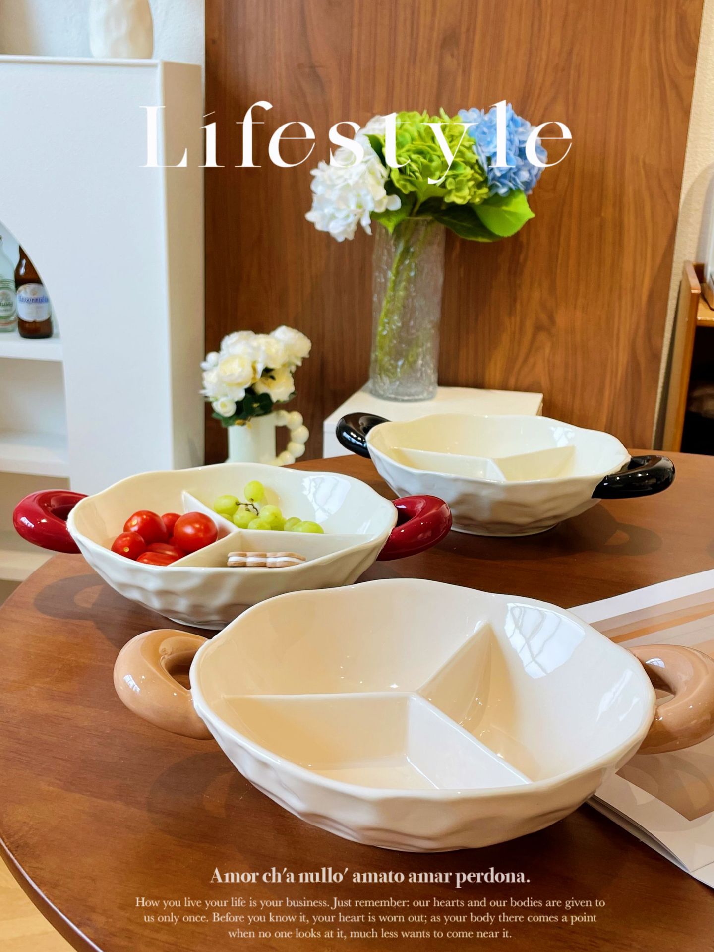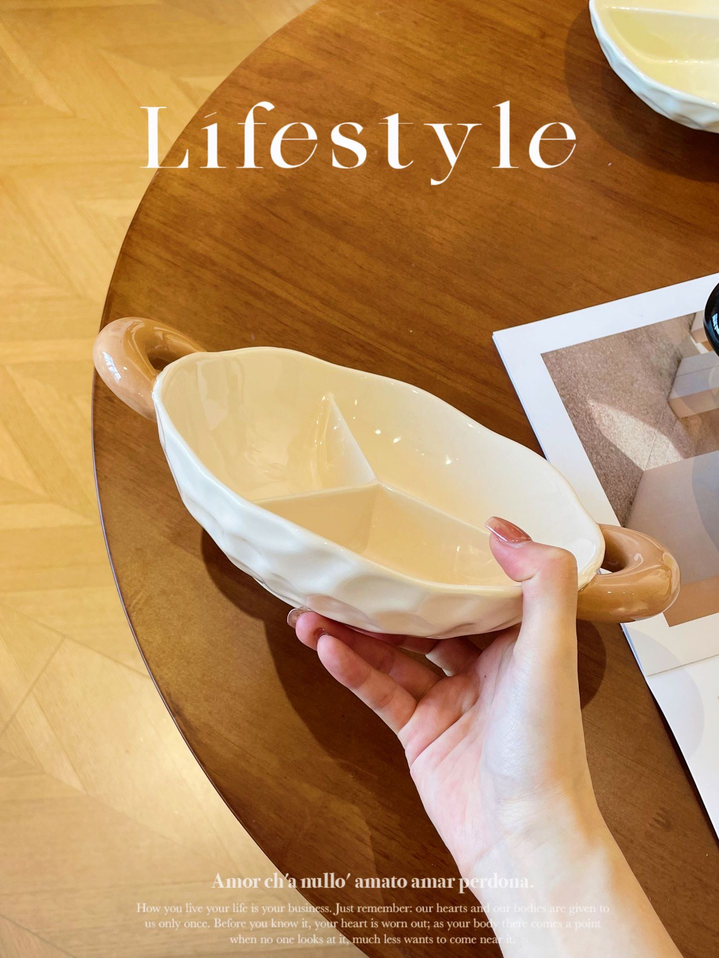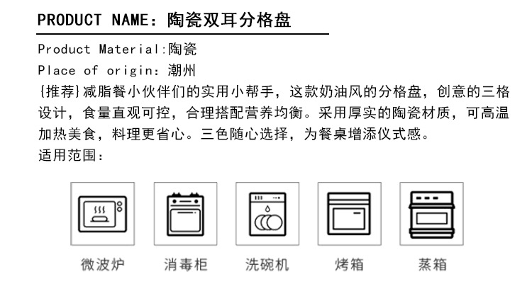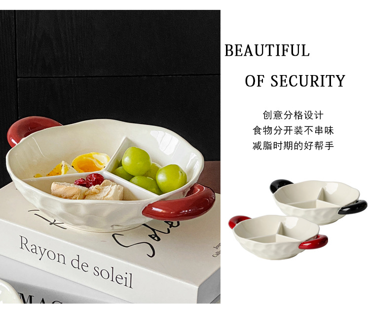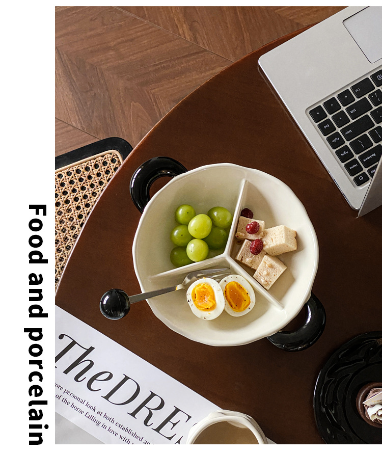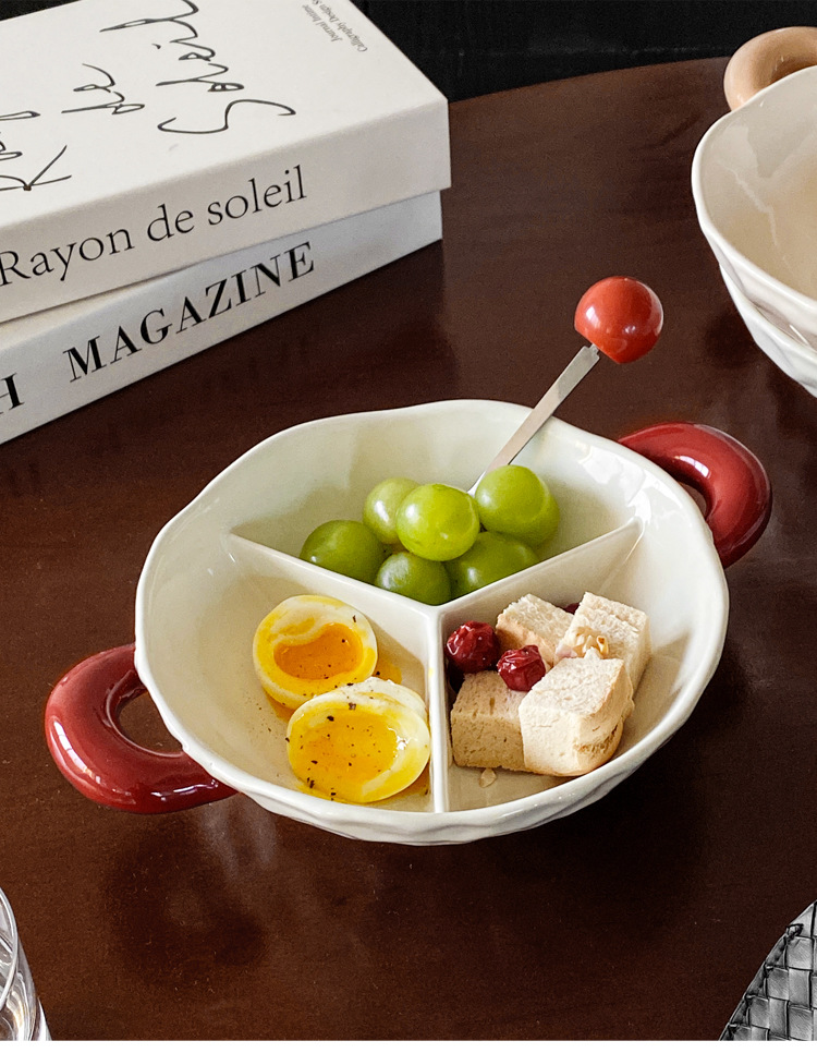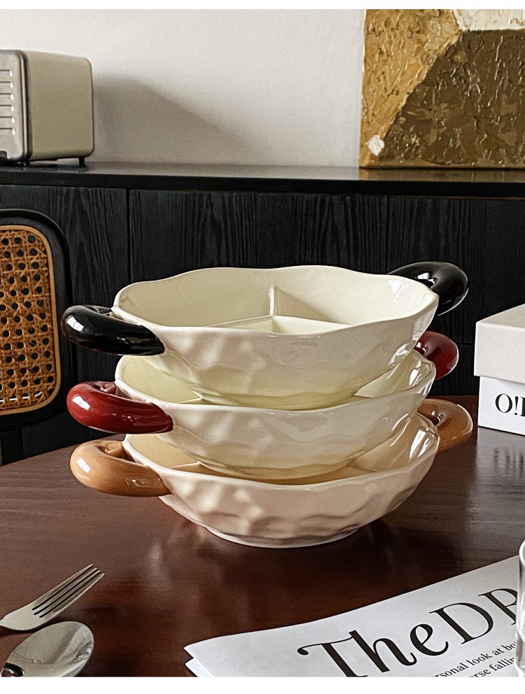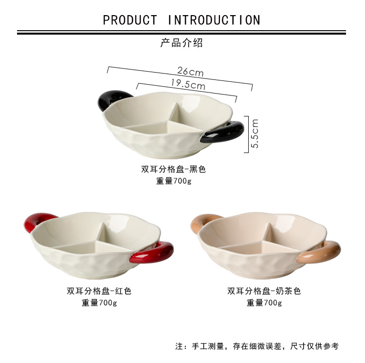 【轻奢双耳分格盘】陶瓷双耳分格盘家用菜盘水果盘子菜碟子零食盘2025新款轻奢