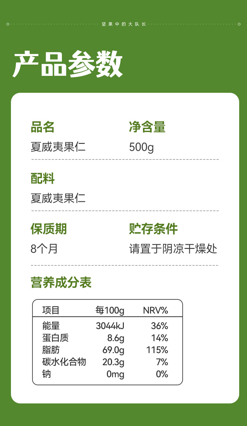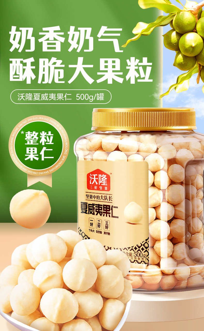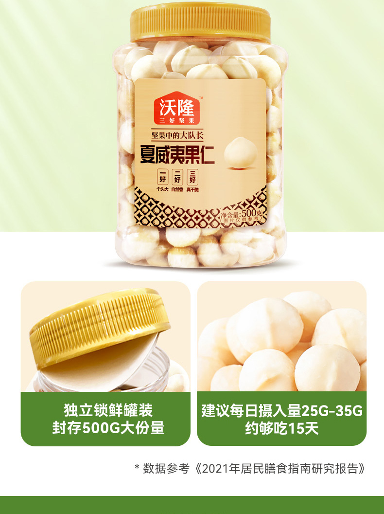 【沃隆】夏威夷果仁500g即食原味炒货坚果干果仁孕妇休闲零食