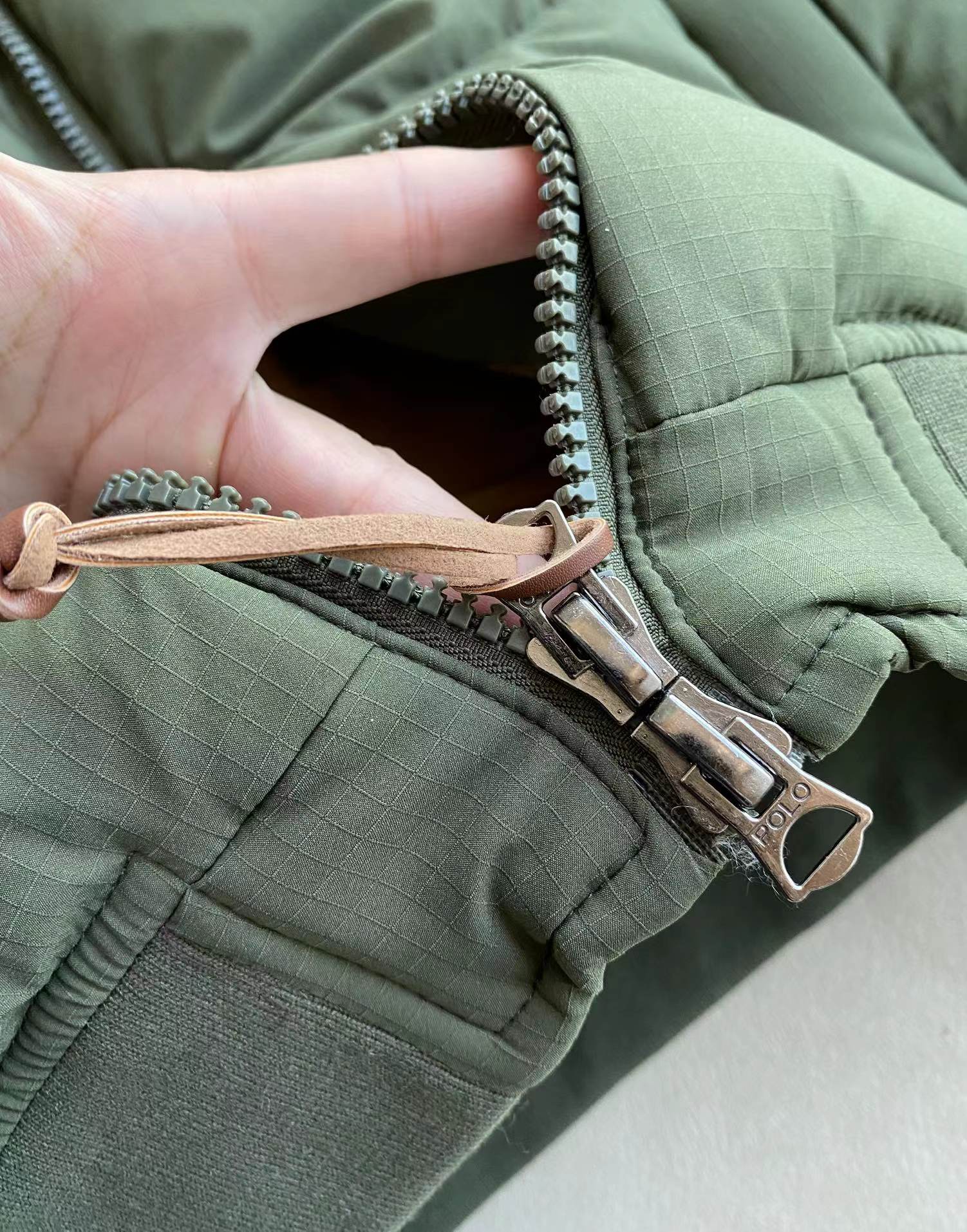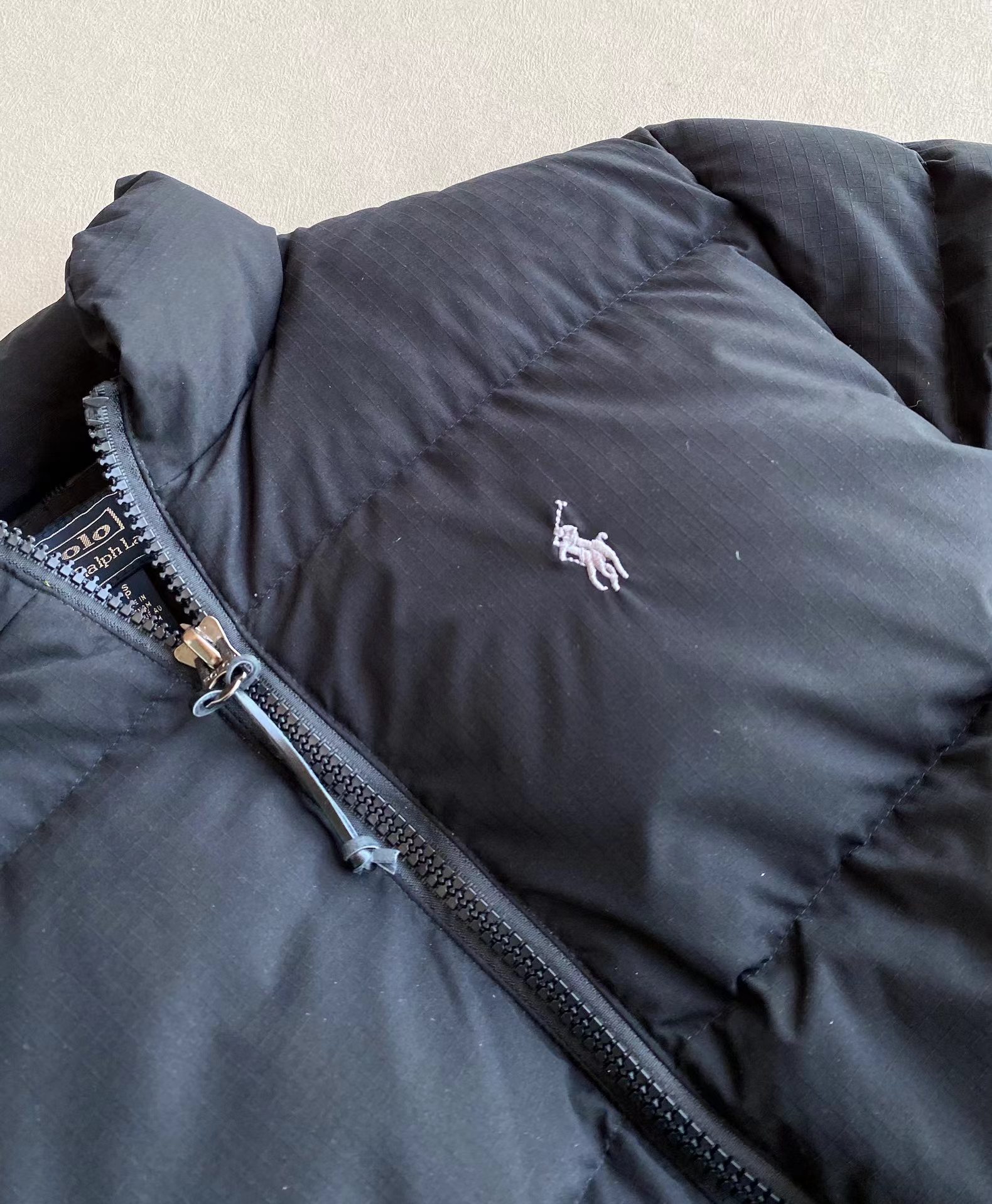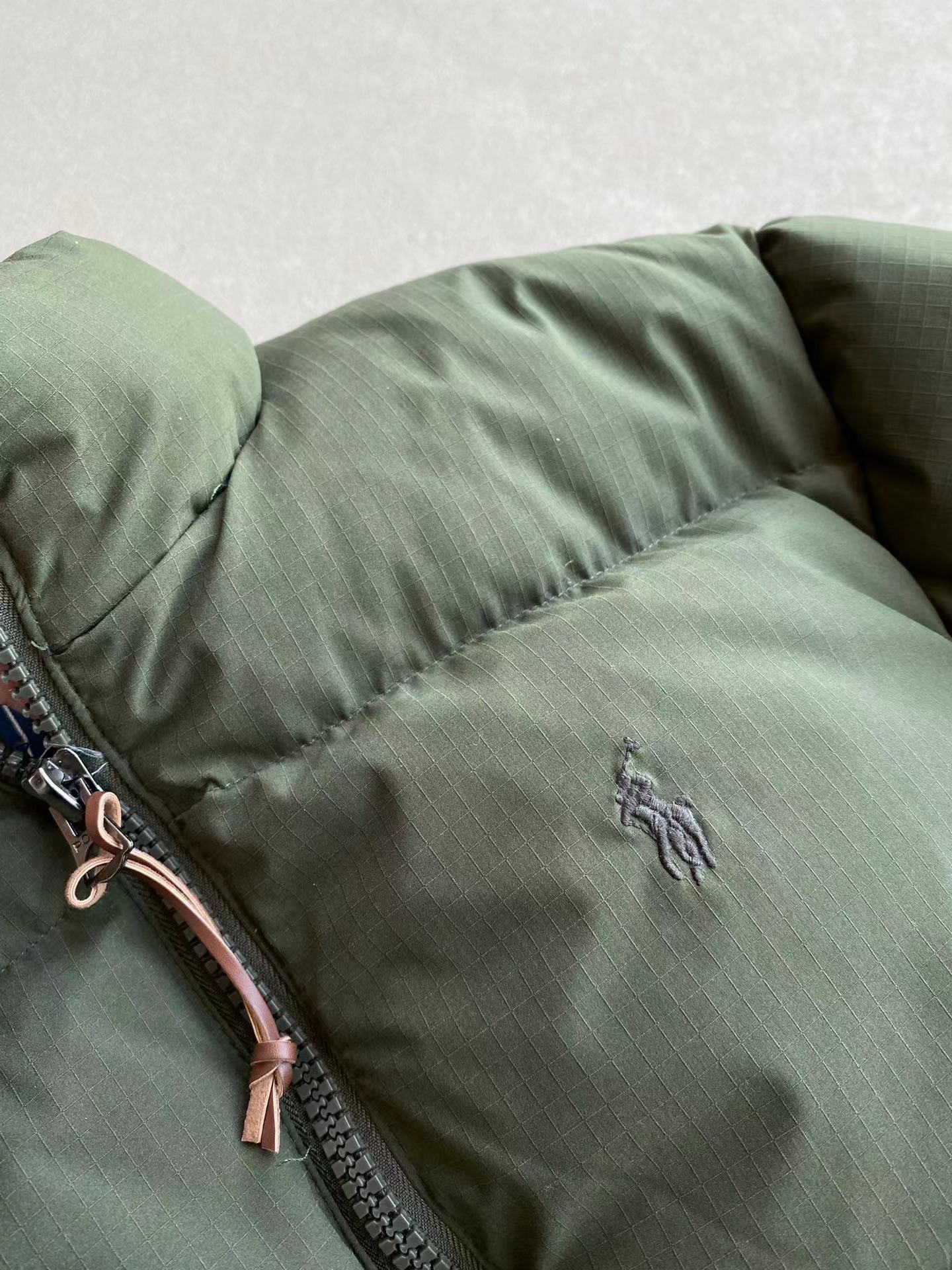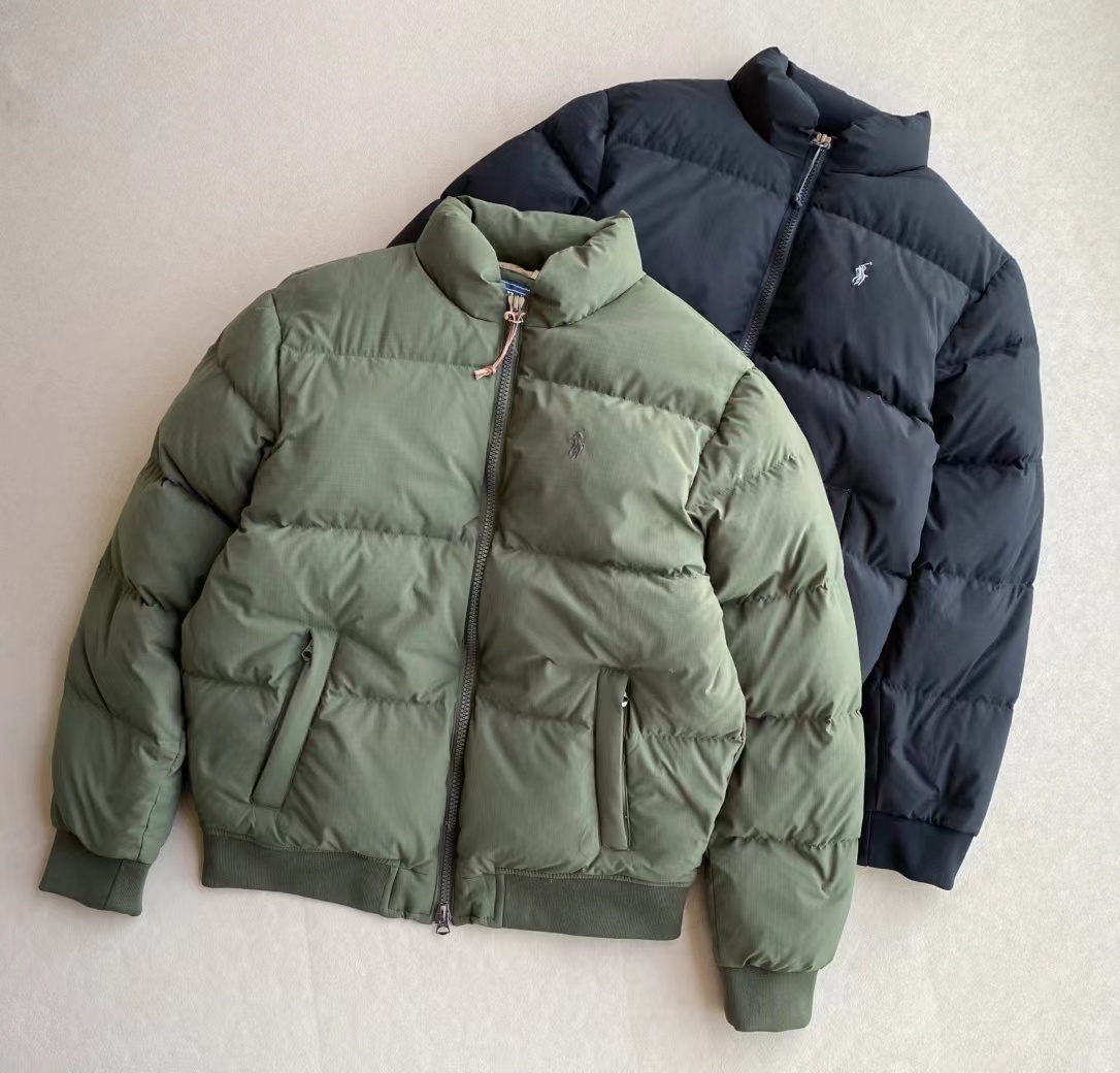 新国标90白鸭绒填充+双层胆布 平均300g+的充绒量 保暖的同时更加轻便不厚重 有效锁温不跑绒 YKK双头拉链设计 冷热随调 百灵达绣花机定制万针小马刺绣 大身与里布均采用涤纶面料 呈现考究的窗格图案纹理