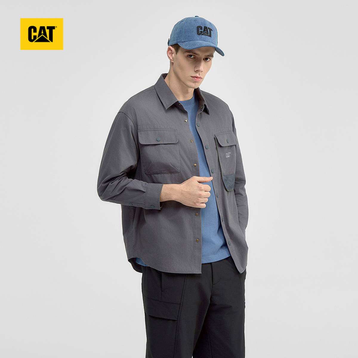 【春上新】【95折】6楼卡特CAT秋款网装口袋休闲长袖衬衣深灰色CO3SHW36051C08,吊牌价728,折后价692
