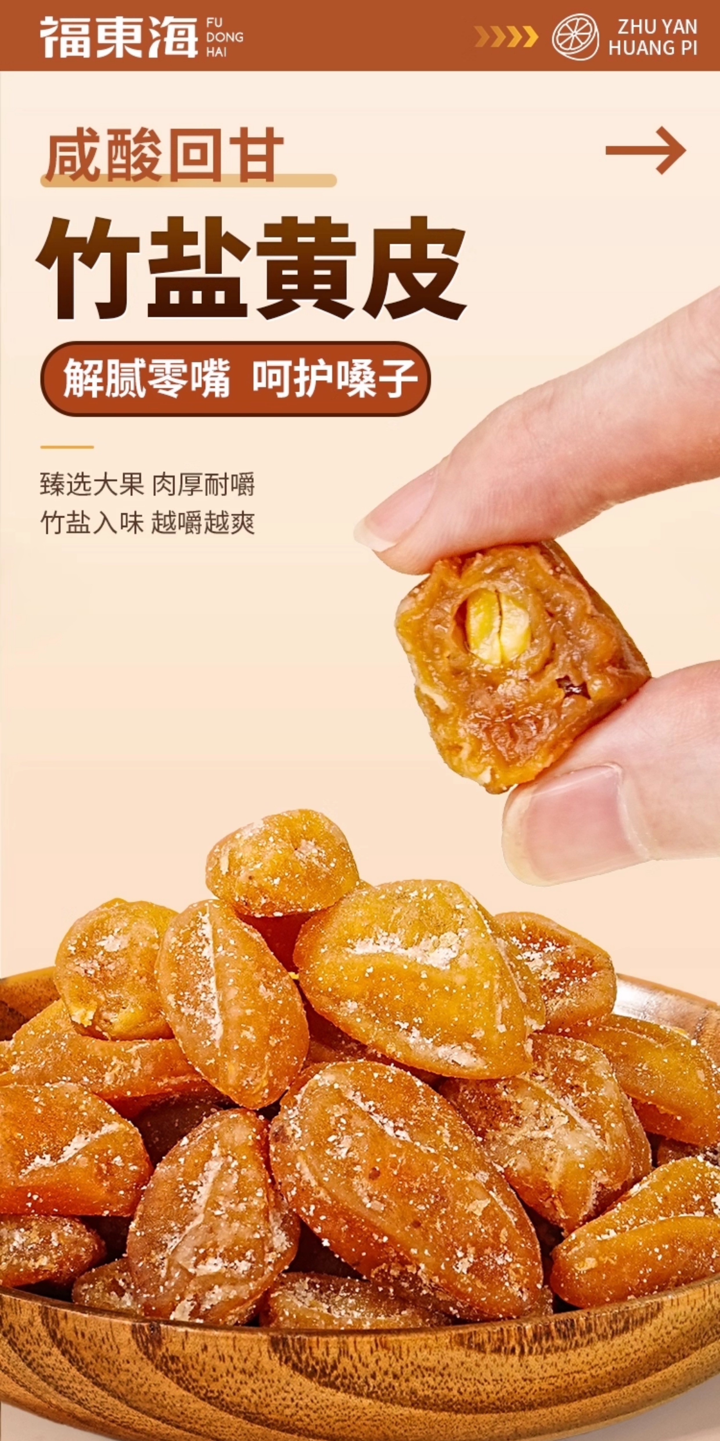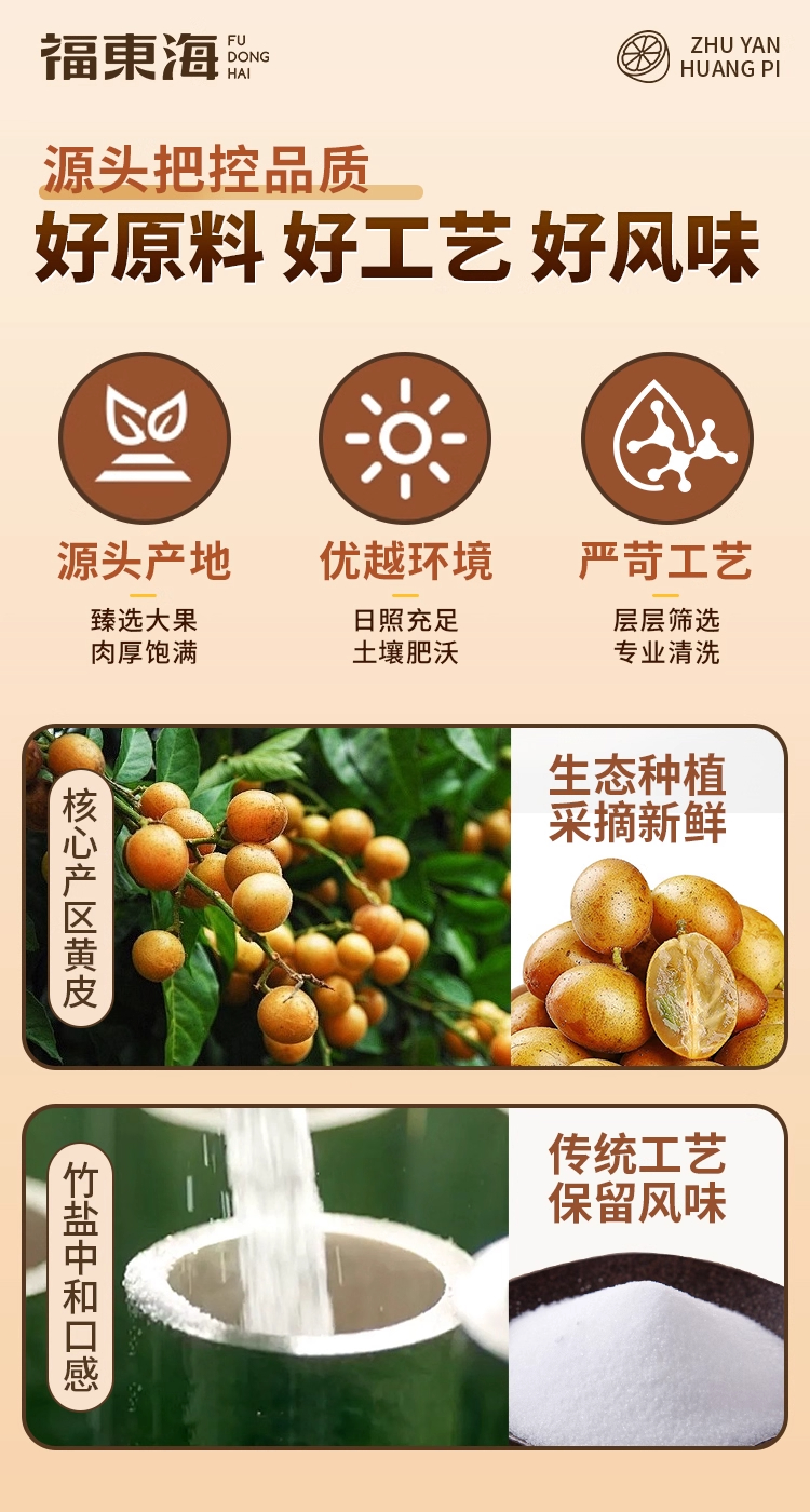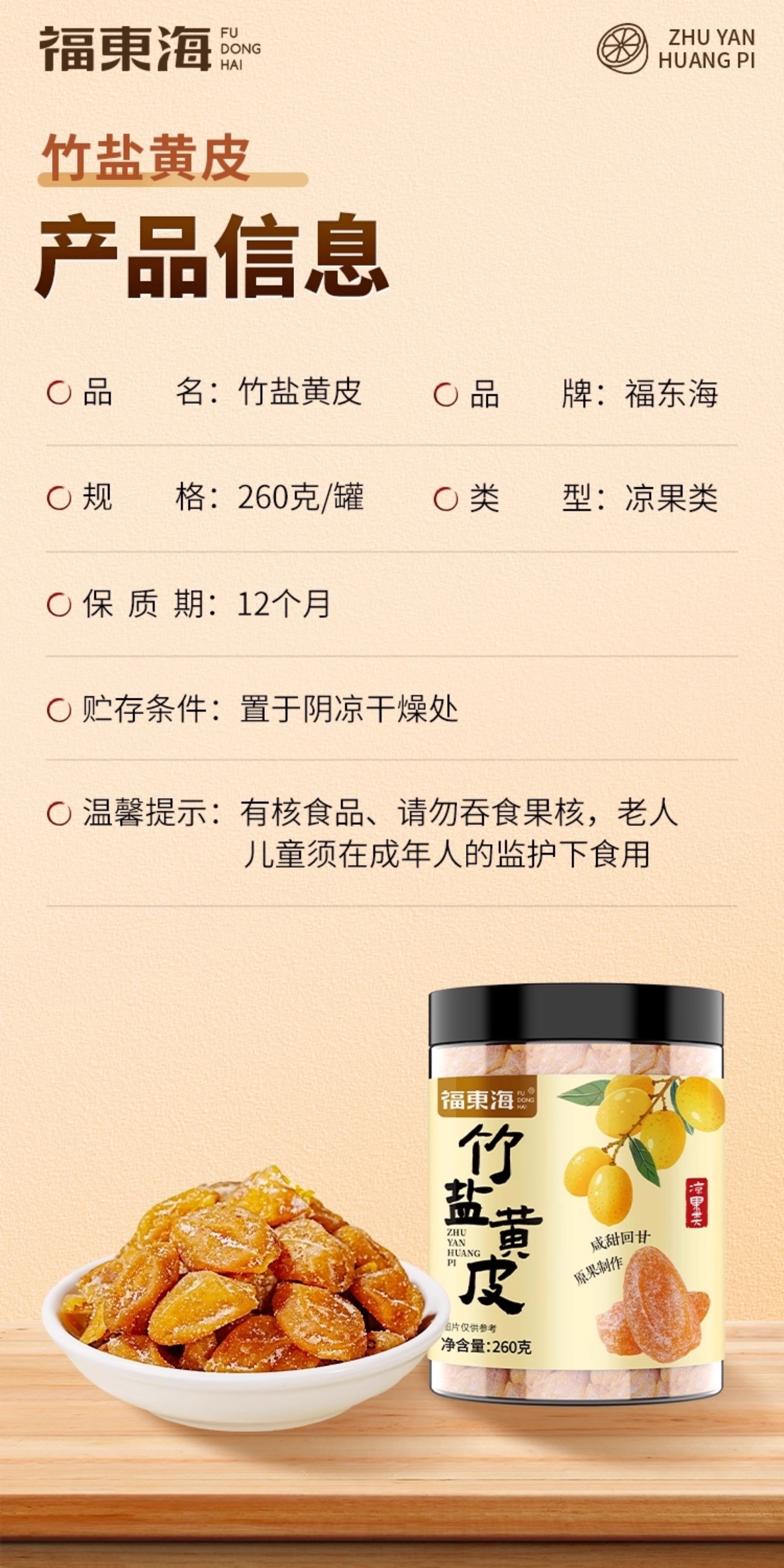 福东海 竹盐黄皮260克 正宗无核鸡心黄皮果干蜜饯果脯特产小零食