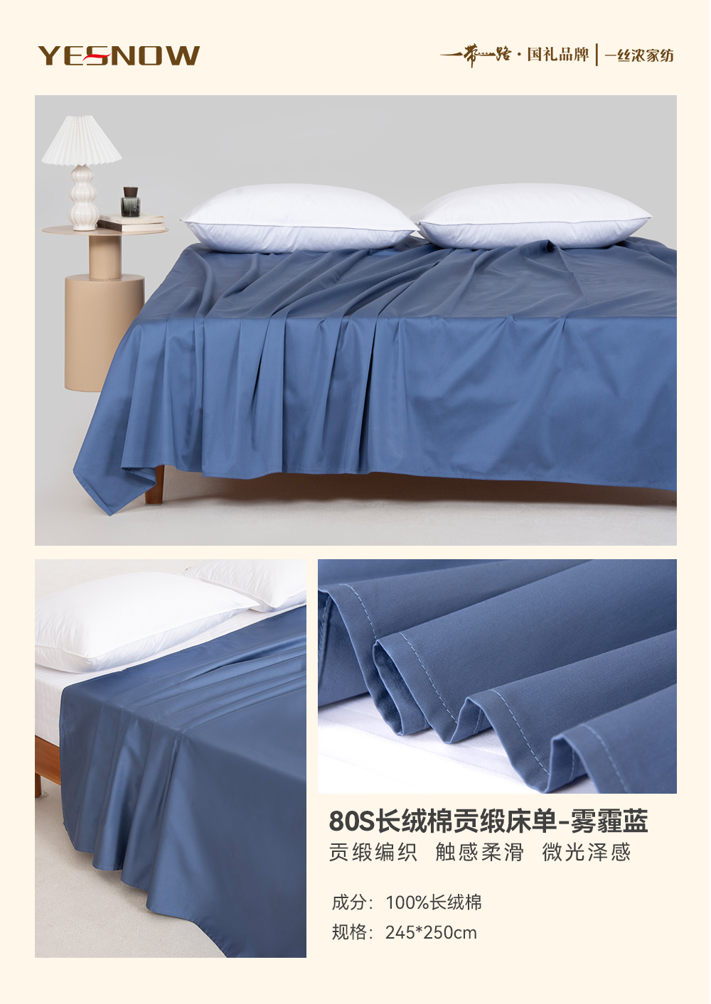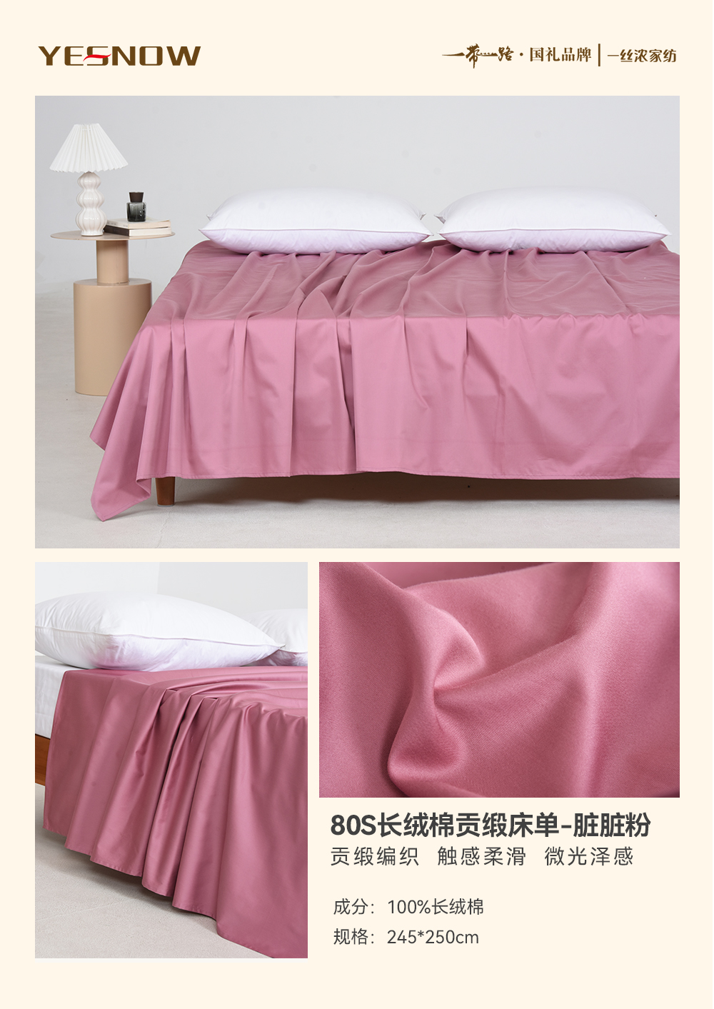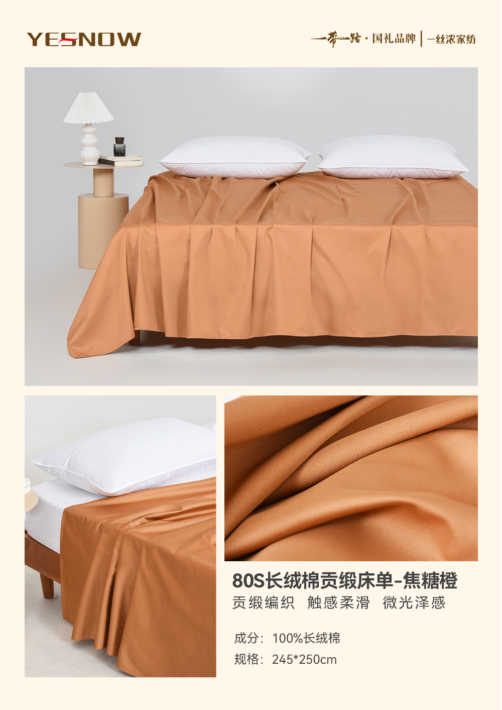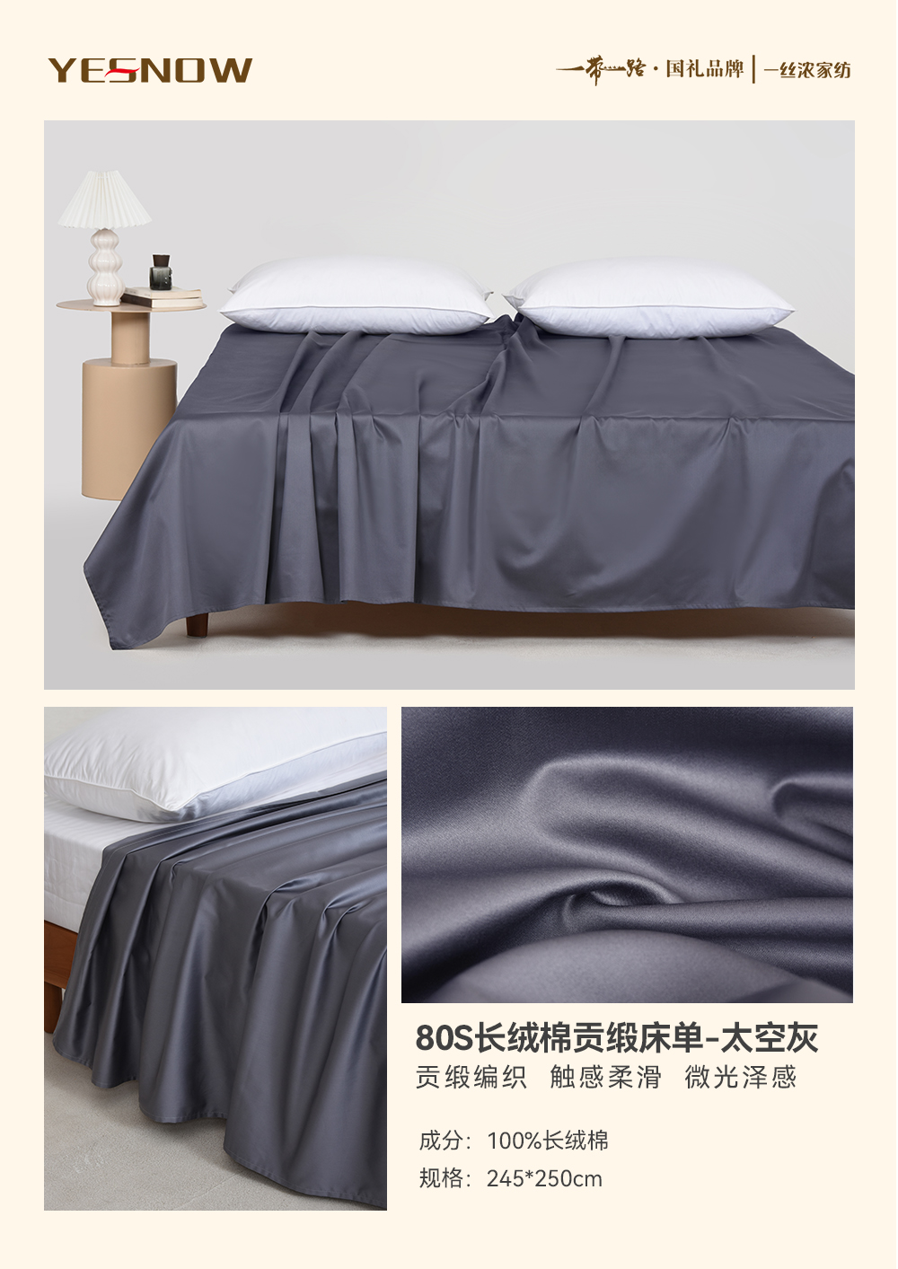 80S长绒棉贡缎床单奢华柔软亲肤透气四季通用