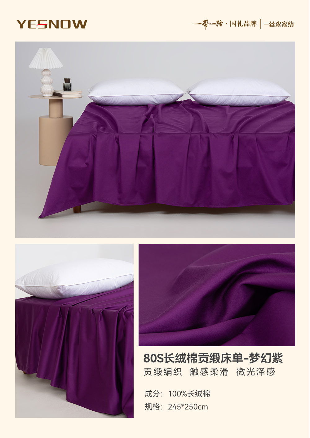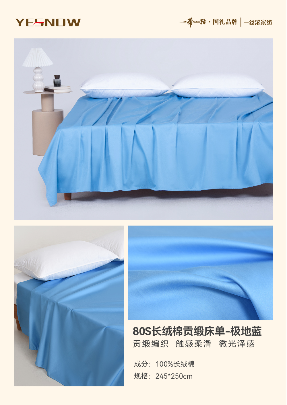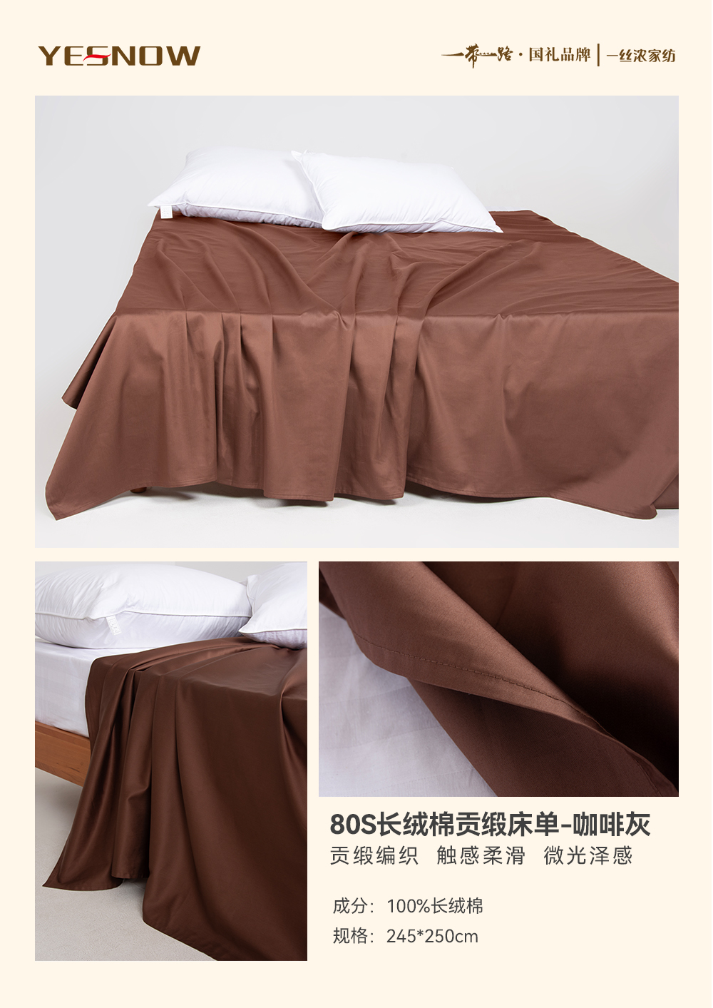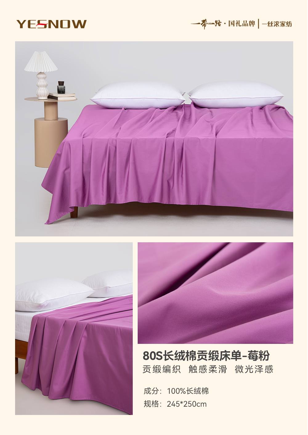 80S长绒棉贡缎床单奢华柔软亲肤透气四季通用