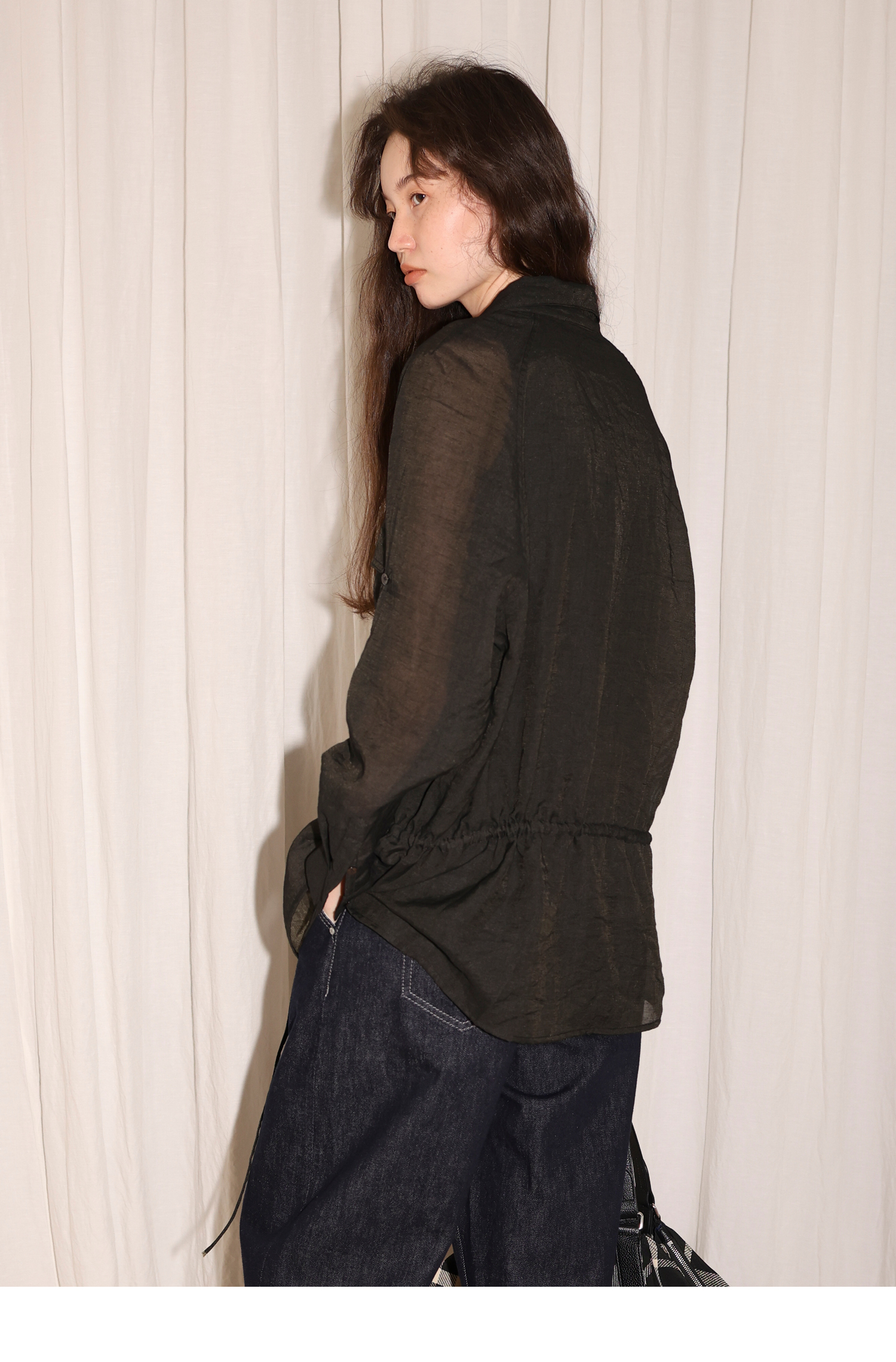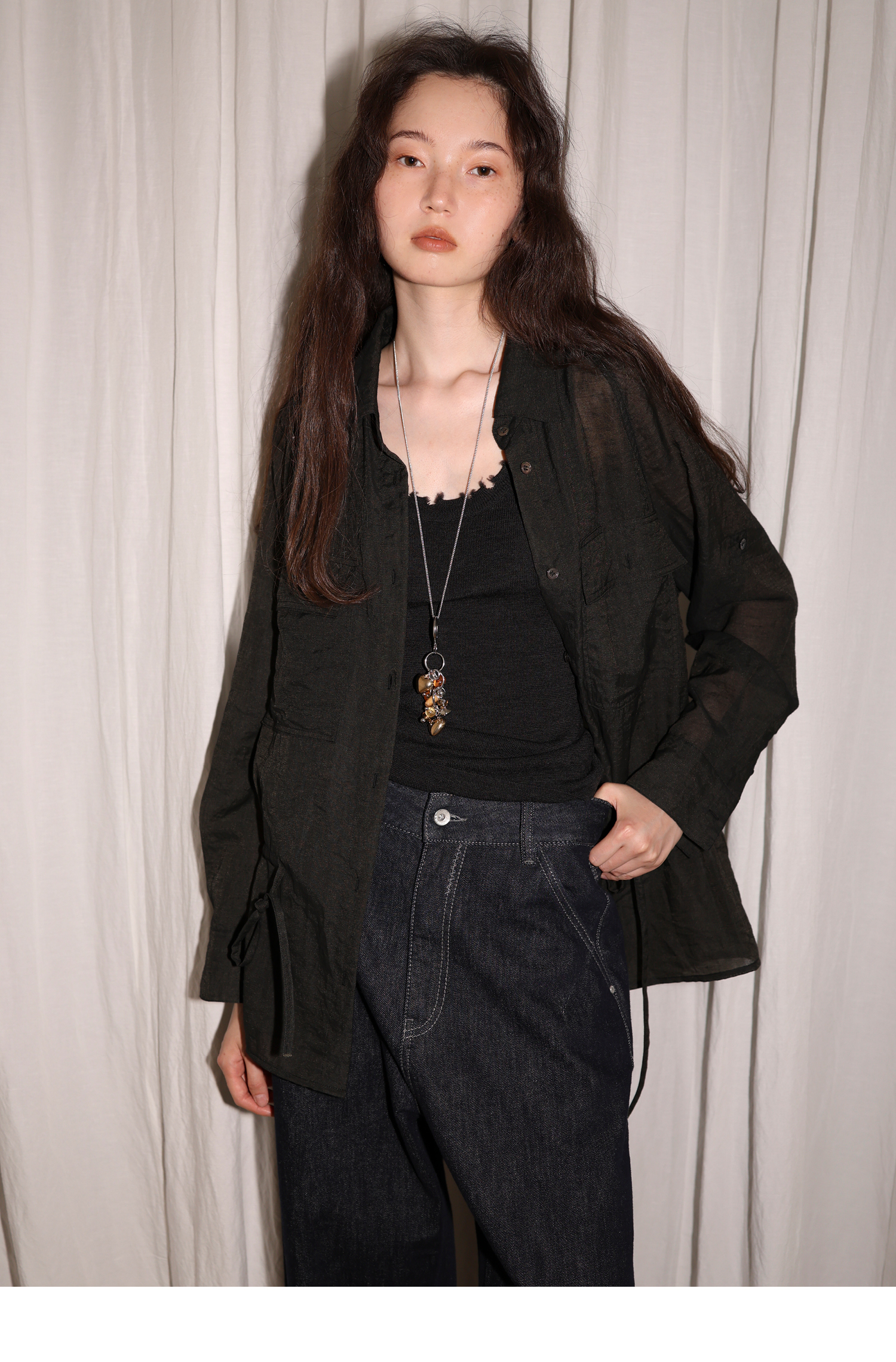 素舶 亚麻再生纤维抽绳收腰插肩长袖游猎衬衫