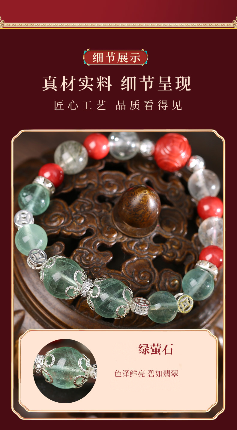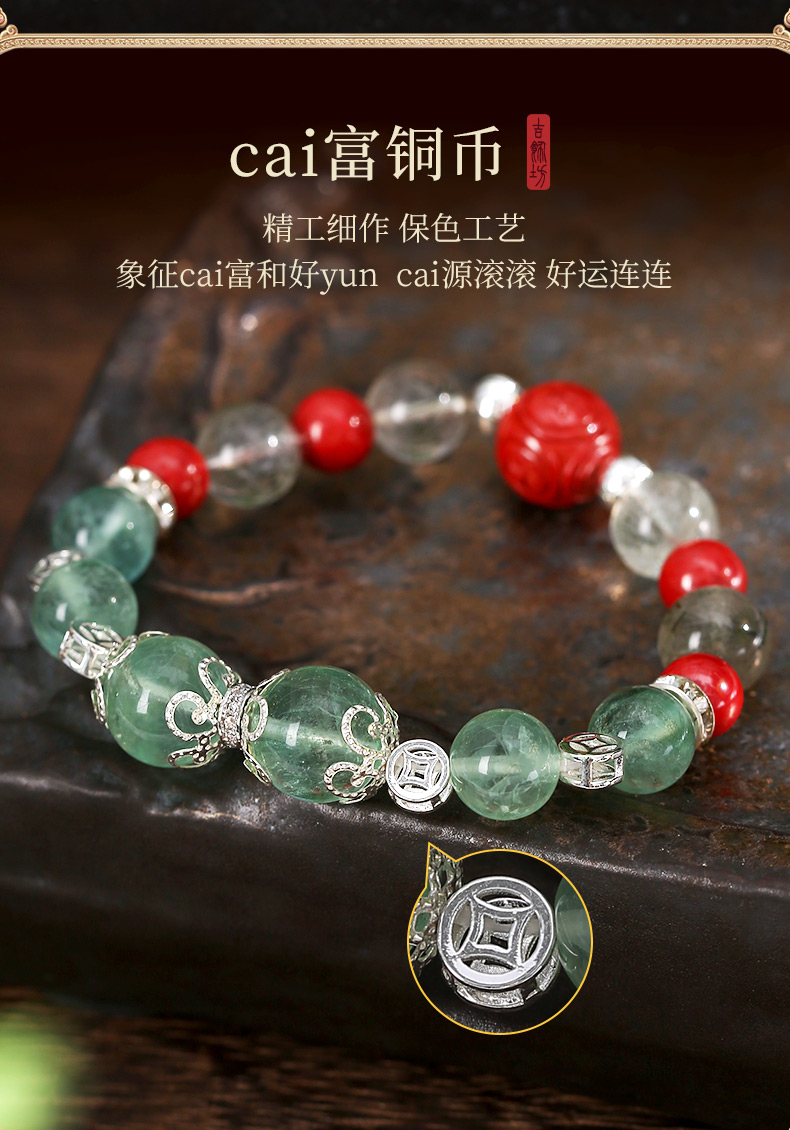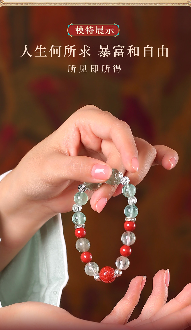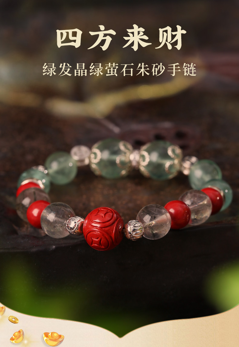 灵机生活馆绿发晶绿萤石水晶手链朱砂手串