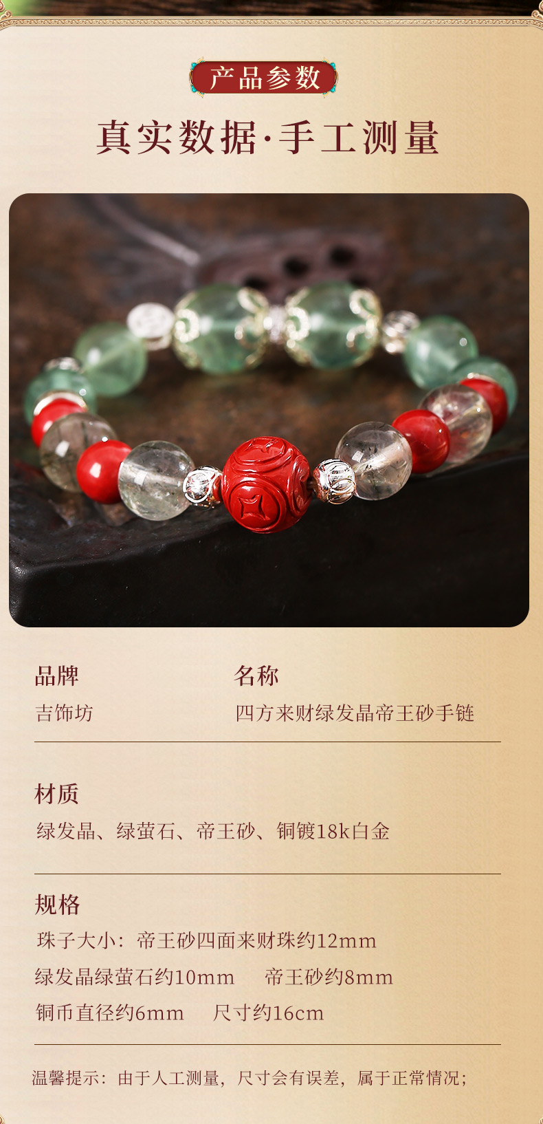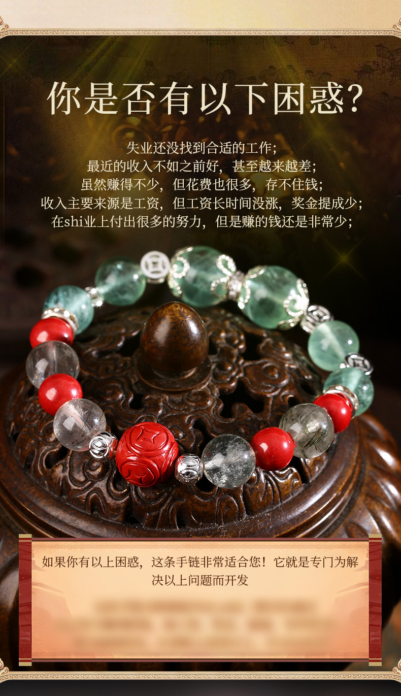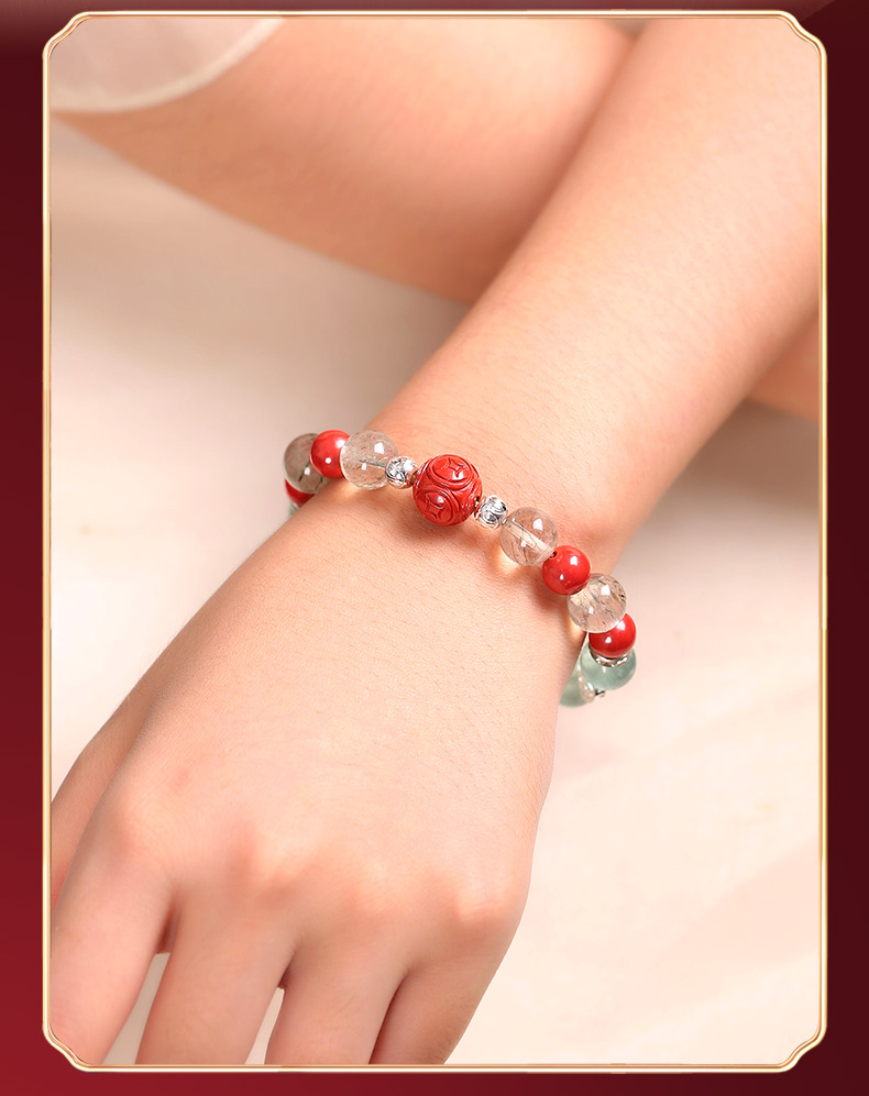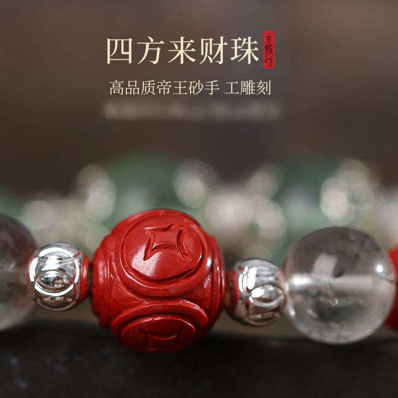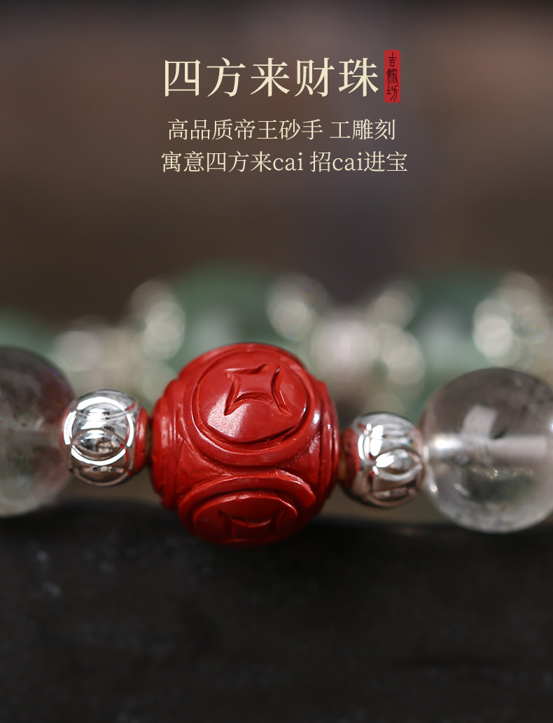 灵机生活馆绿发晶绿萤石水晶手链朱砂手串