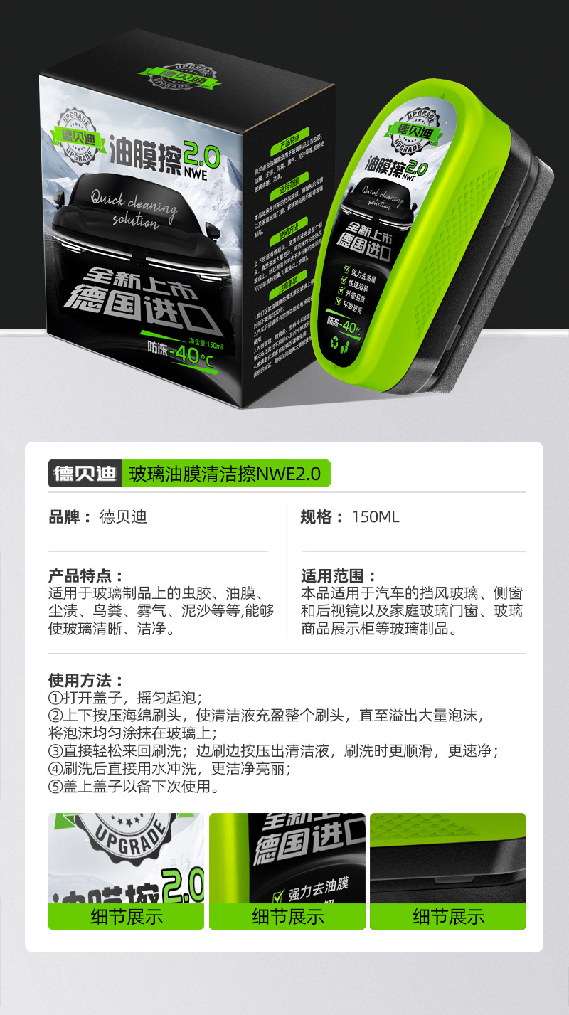 汽车玻璃防冻油膜擦连体涂抹式油膜擦150ml(4-1220)