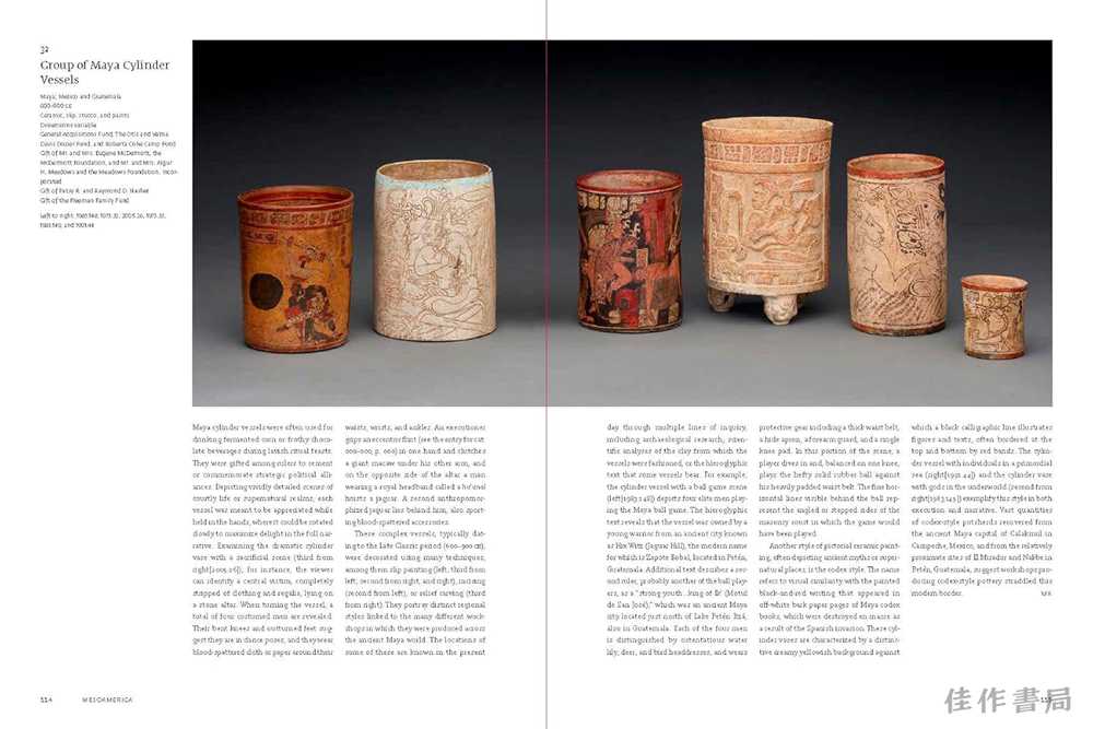 这本书汇集了来自古代美洲的100多件艺术杰作,包括美国西南部、中美洲、地峡哥伦比亚区以及南美洲安第斯山脉的原住民作品。这些作品在新的摄影和学术研究背景下,以历史、考古和艺术的形式呈现。本书探讨了来自美国最早文明的一系列陶瓷、金属制品、石雕和纺织品,这些文明包括祖先普韦布洛人、墨西加人、奥尔梅克人、玛雅人、查文文明、印加人、莫切人、瓦里人等等。书中的亮点包括一些极其罕见的珍品,如带有神祇形象的查文王冠、一种此前未定义的安第斯四片式斗篷、一件米斯特克马赛克面具、一个玛雅带盖四足碗,以及来自地峡哥伦比亚区的令人叹为观止的金饰。