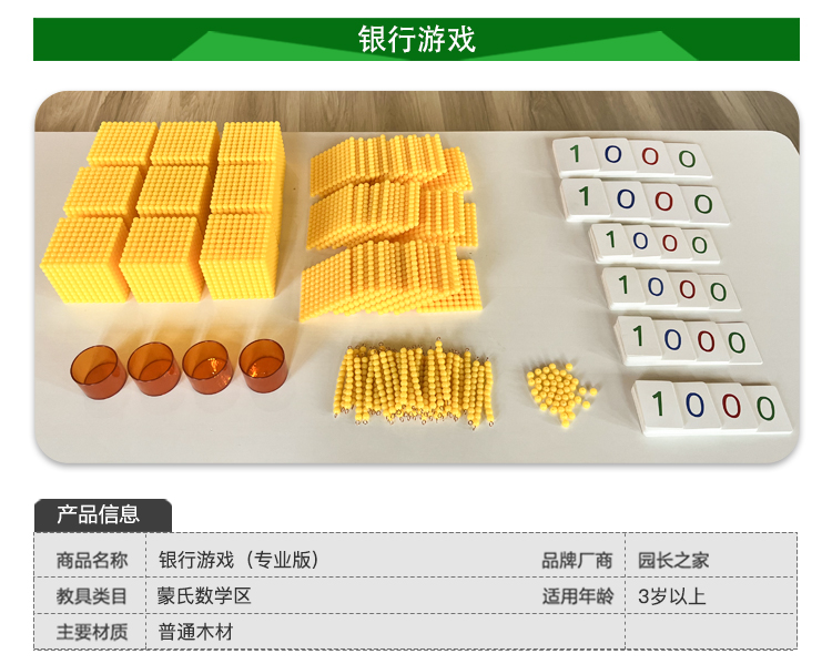蒙氏数学教具银行游戏蒙特梭利金色串珠十进位幼儿园蒙台早教玩具
