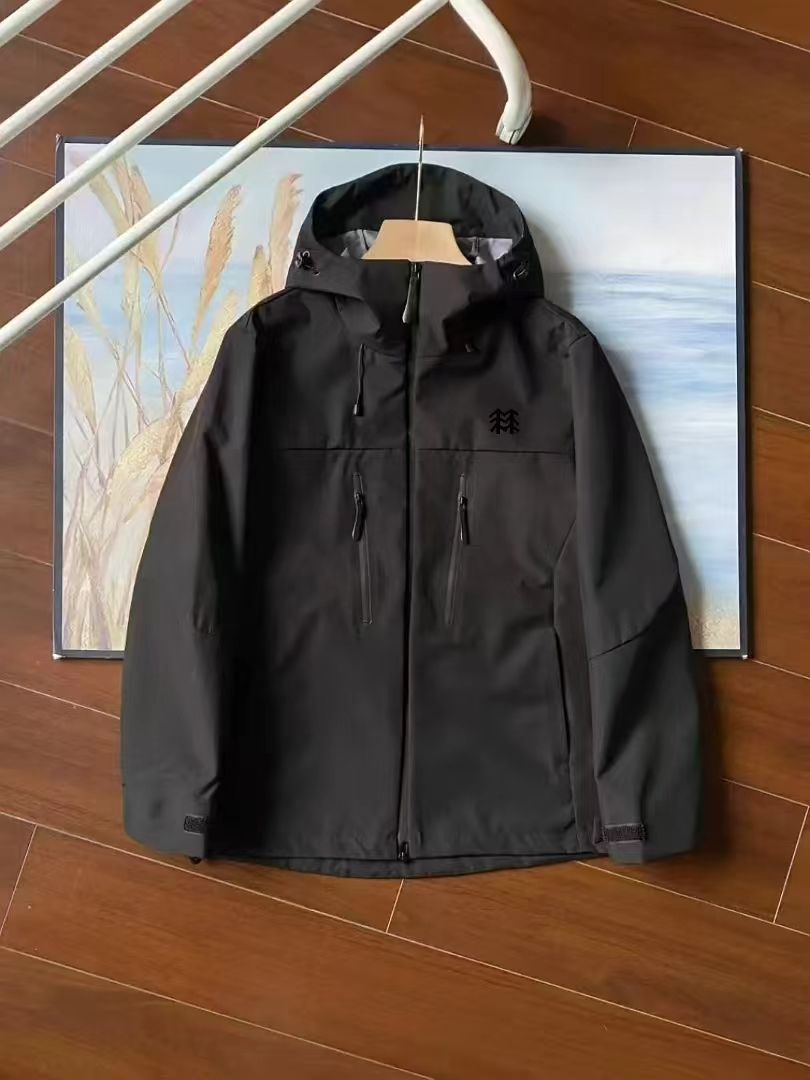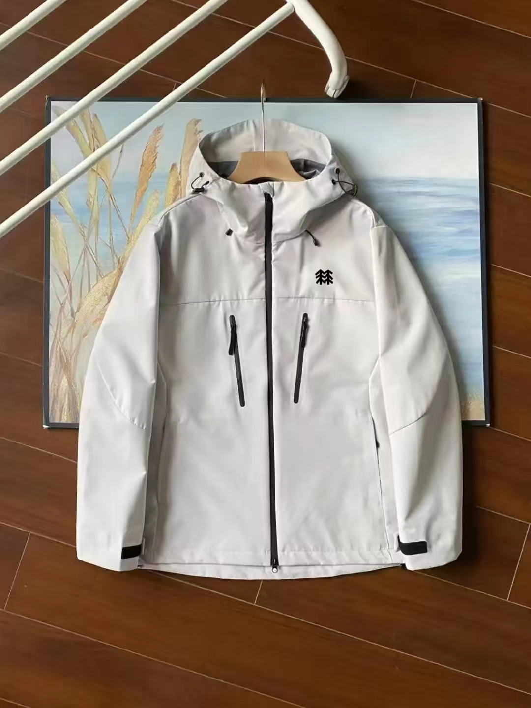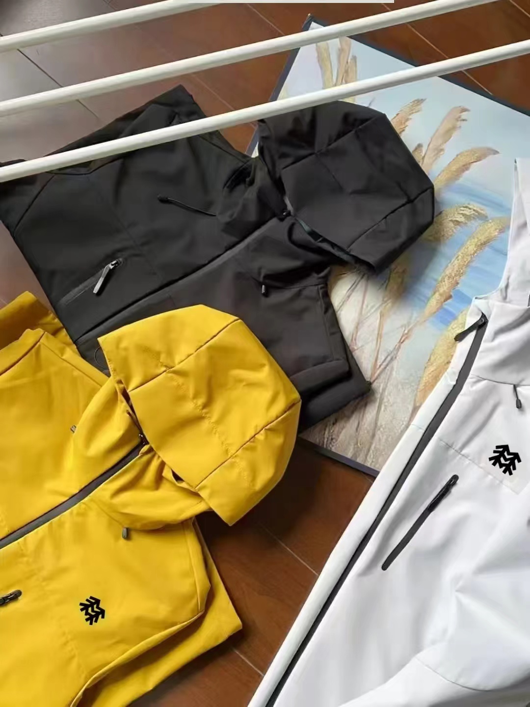 多功能户外休闲防风防雨宽松连帽运动休闲沖锋衣外套。采用环保防风防水功能性冲锋衣面料 ,防风的同时排湿效果也很好,手感舒适 可与其他产品一起搭配叠穿 ,下摆都有收紧防风扣, 适合日常休闲。设计亮点 整件衣服内里全部包边工艺,胸前拉链及口袋拉链都是自带防水功能 ,帽子有5公分压胶帽檐 防风调节扣, 袖口魔术贴防风设计 , 具备外部防风内里保温的设计,颜色出众独特 拼接工艺复杂耗时长,闭眼入手。