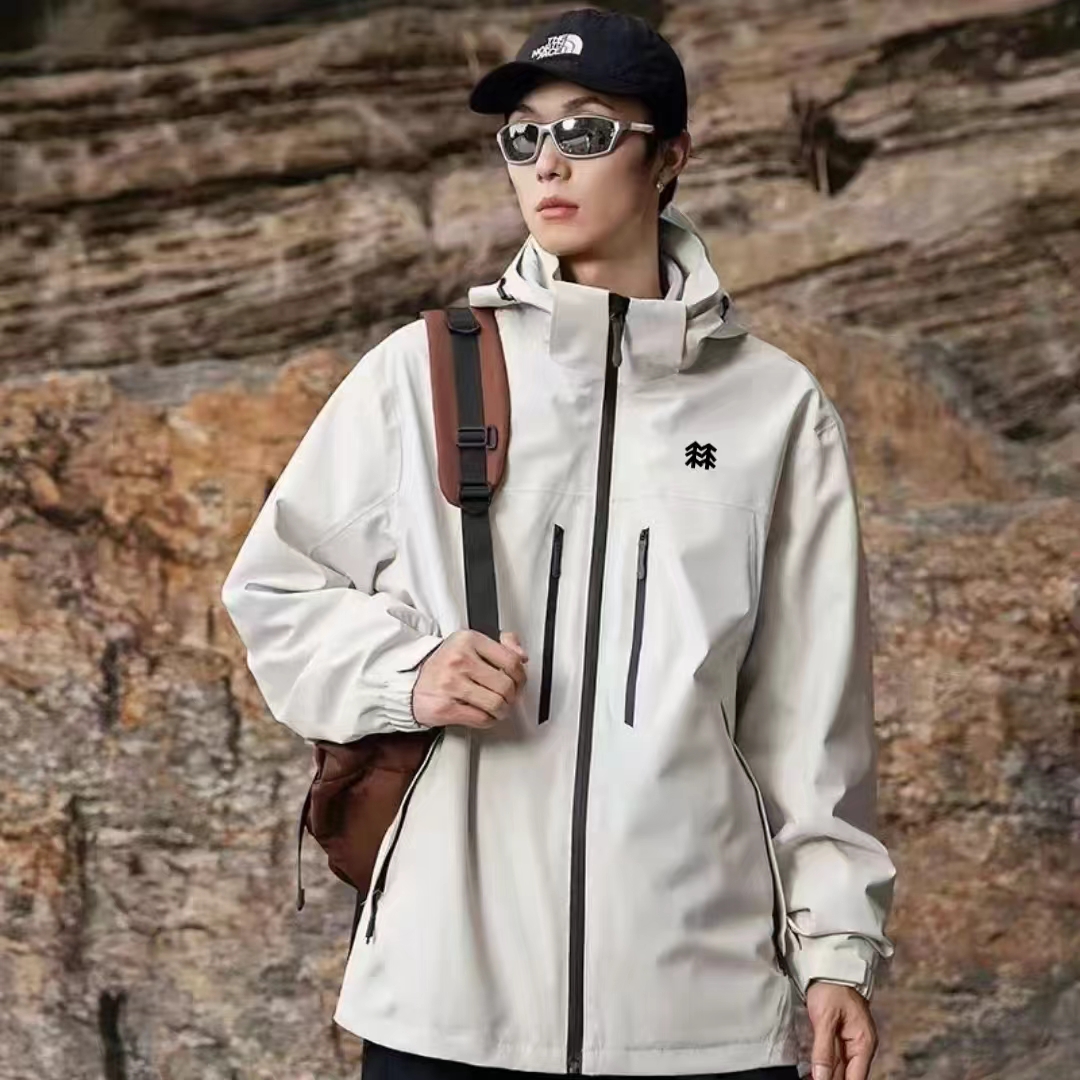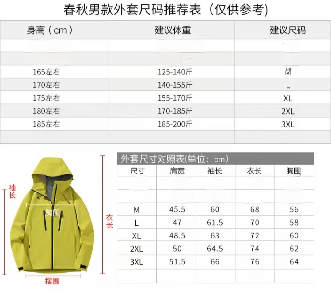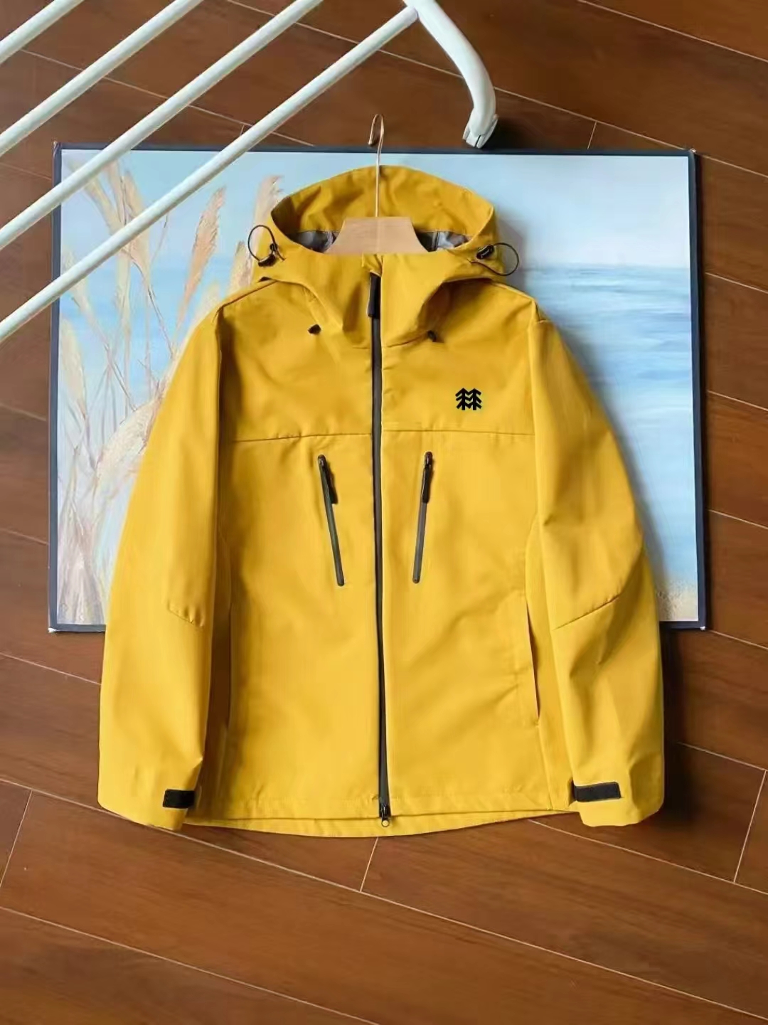 多功能户外休闲防风防雨宽松连帽运动休闲沖锋衣外套。采用环保防风防水功能性冲锋衣面料 ,防风的同时排湿效果也很好,手感舒适 可与其他产品一起搭配叠穿 ,下摆都有收紧防风扣, 适合日常休闲。设计亮点 整件衣服内里全部包边工艺,胸前拉链及口袋拉链都是自带防水功能 ,帽子有5公分压胶帽檐 防风调节扣, 袖口魔术贴防风设计 , 具备外部防风内里保温的设计,颜色出众独特 拼接工艺复杂耗时长,闭眼入手。