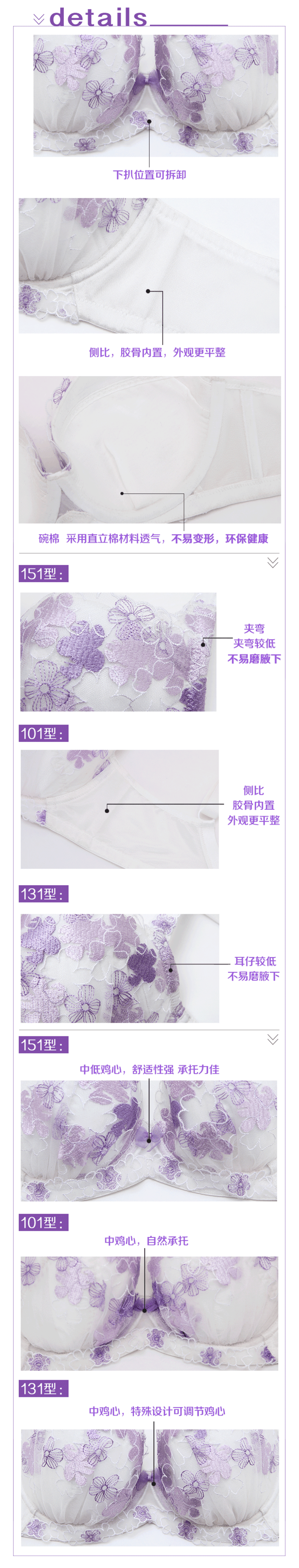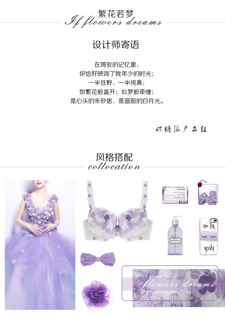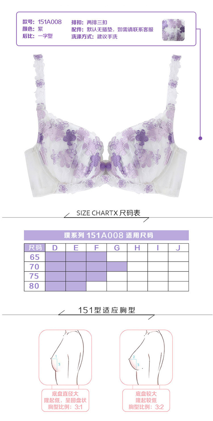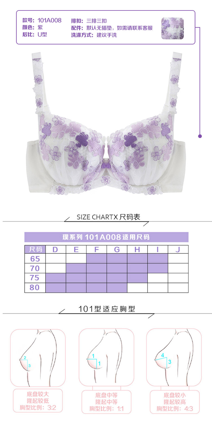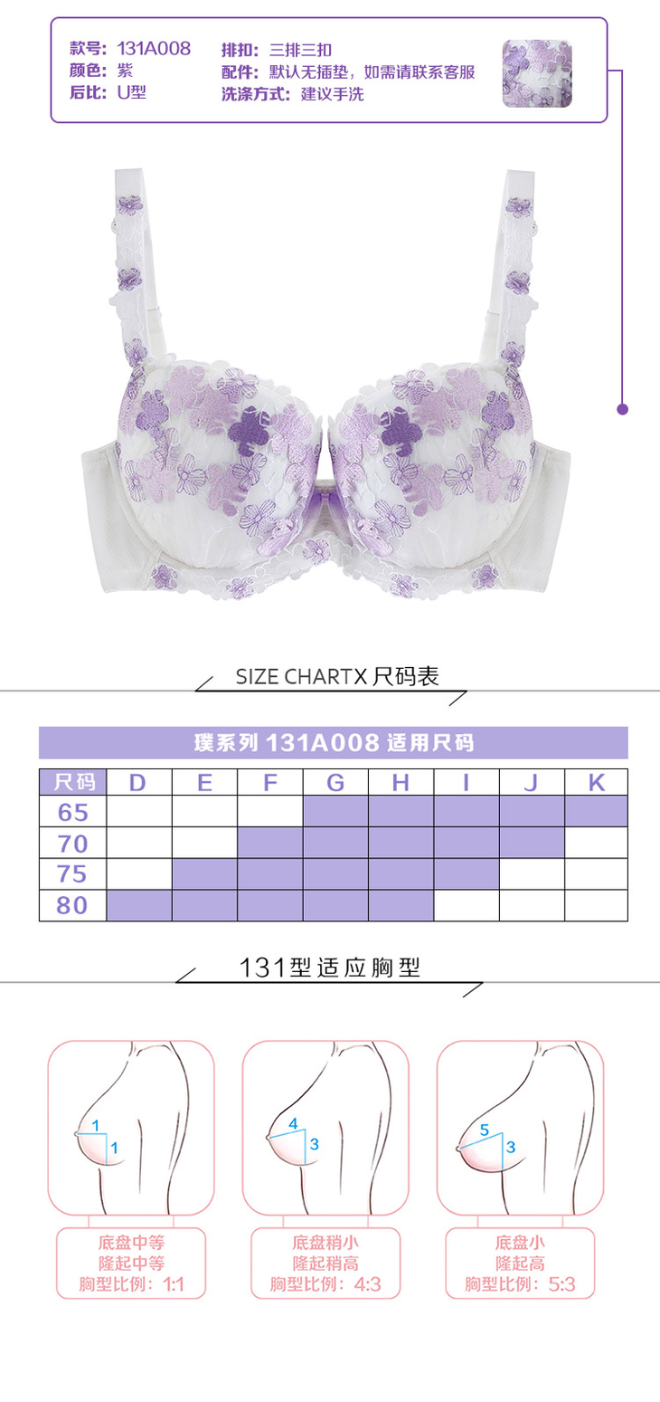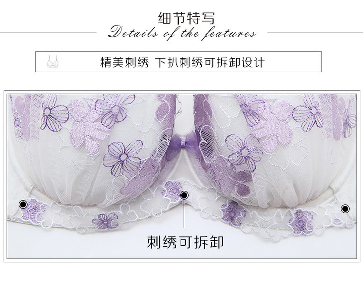 繁花若梦白紫色精美刺绣款少女大罩杯内衣