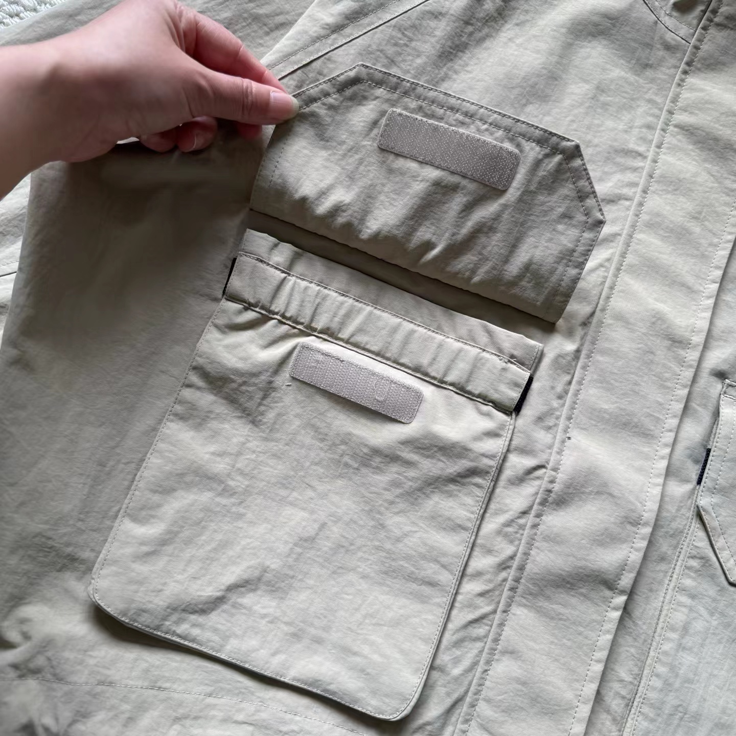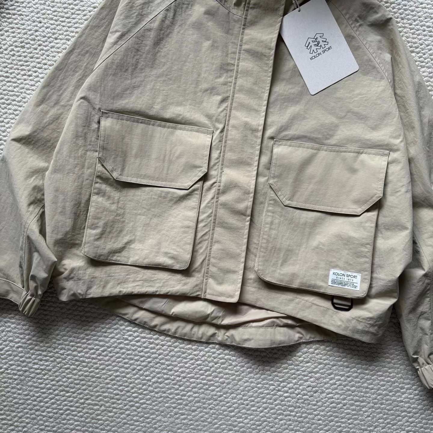 户外休闲衣女士露营短款宽松夹克运动外套女士短款夹克,丰餐露宿天地为营假日与家人友邻结伴出行,一同动手在湖边草坪搭起帐篷,烹制餐食,发呆撒野一一以醉舒适姿态与自然亲密对话。身着防护科技与可玩性兼具的露营服饰浸入山林,静听鸟叫蝉鸣交响,将身心摊开任自然写意。宽松版型的短款夹克,结合前短后长设计,功能和时尚兼备,下摆——可调节抽绳设计,可自由搭配出不同风格