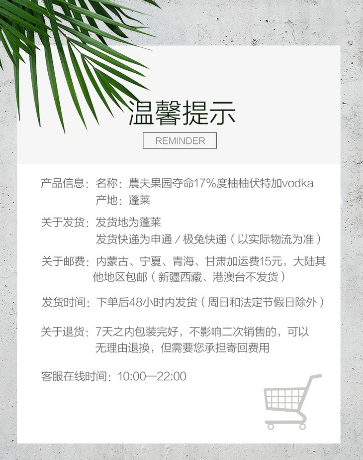 酒水专区【 1919全球酒水连锁专柜款 供港标准酿造 】 2026農夫果园夺命17%度柚柚伏特加vodka