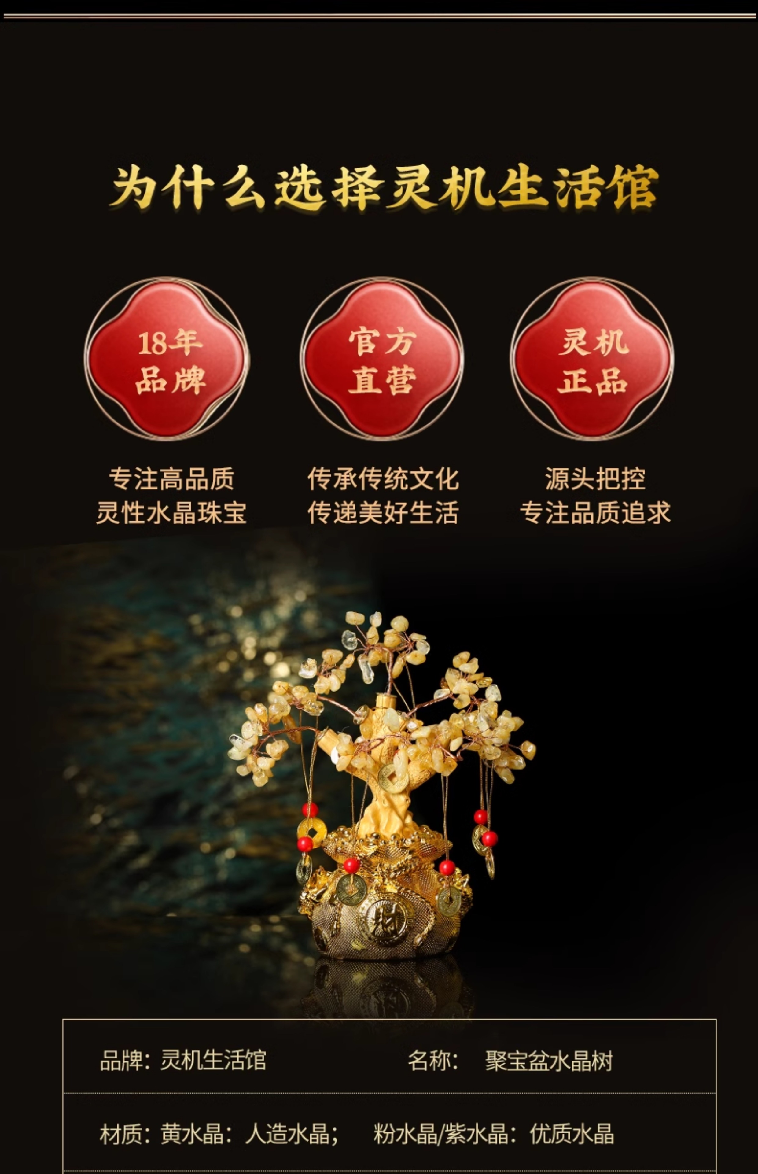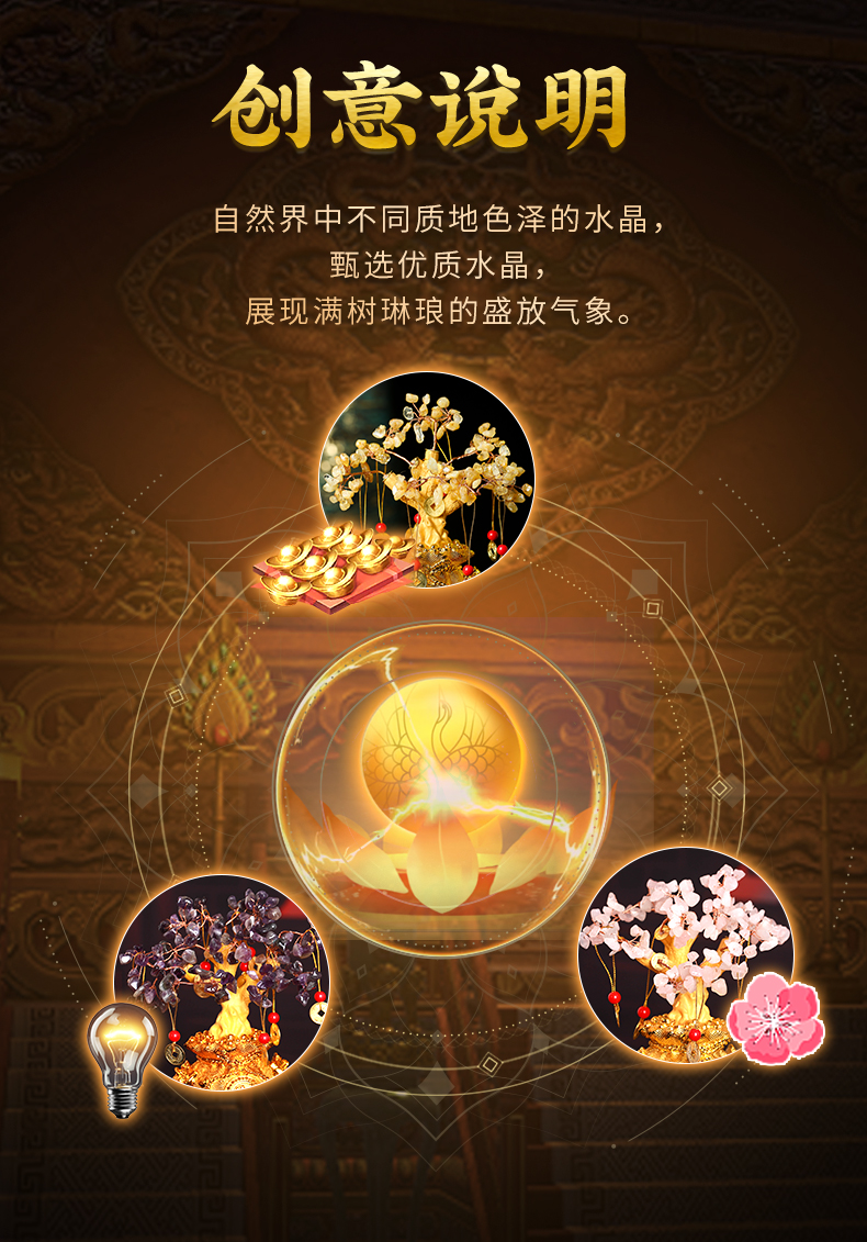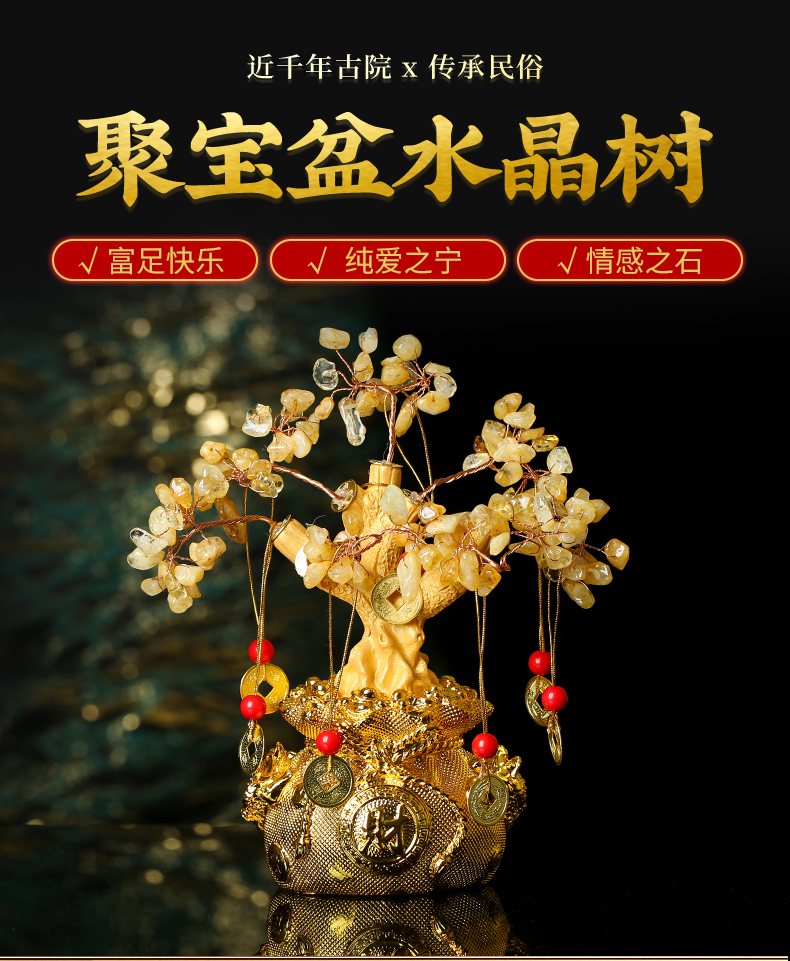 【祈愿吉品】聚宝盆黄水晶树 元宝摆件仿摇钱树