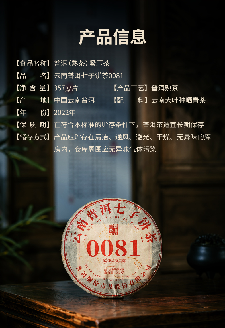 澜沧古茶2022年0081大饼普洱熟茶熟普七子饼茶357g