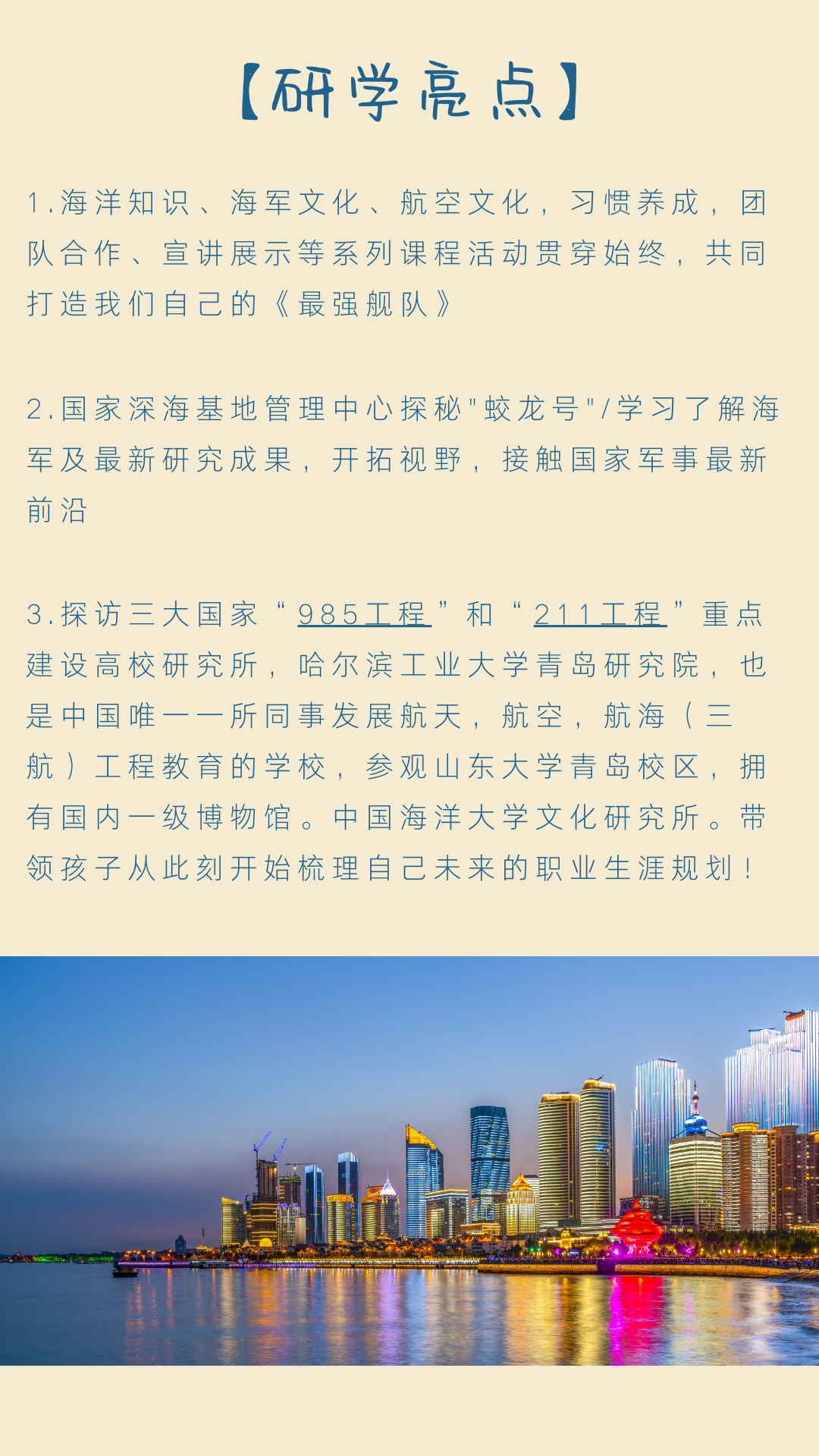 海军少年 | 暑期青岛研学,五天四夜,独立 栈桥 、五四广场、 奥帆基地、山东大学、哈尔滨工业大学、中国海洋大学研究所、海军博物馆……