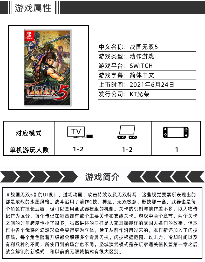 【畅玩卡可租】二手Switch游戏 战国无双5 中文版