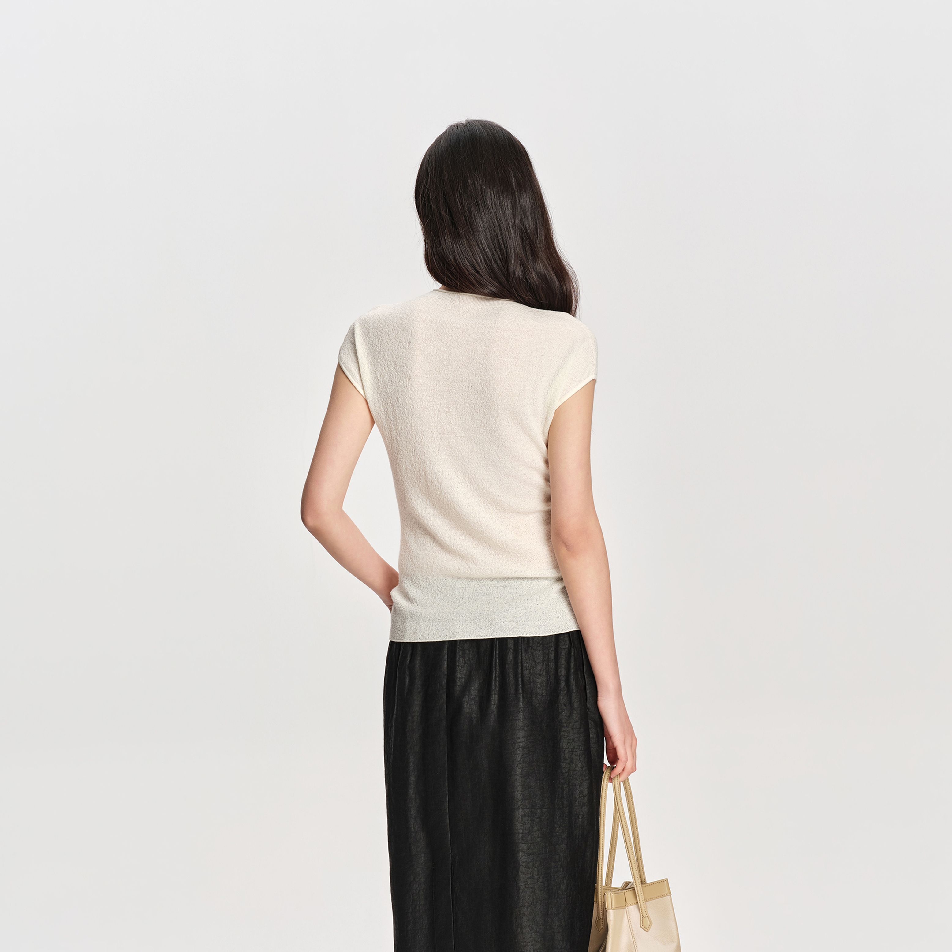2.【优雅穿搭公式】修身版型贴合身体曲线,舒适不紧绷,既勾勒身形又不显局促;小圆领经典耐看,不挑脸型;包肩袖巧妙包裹肩部,修饰肩线,弱化肩宽问题。