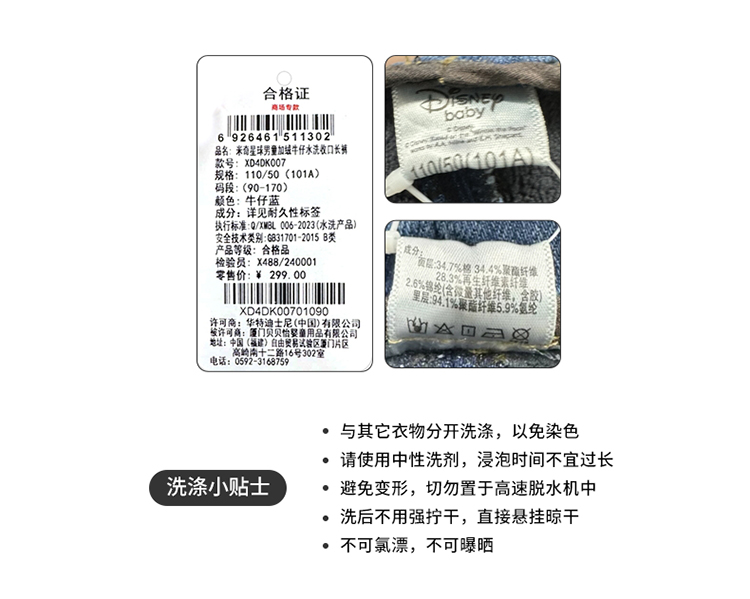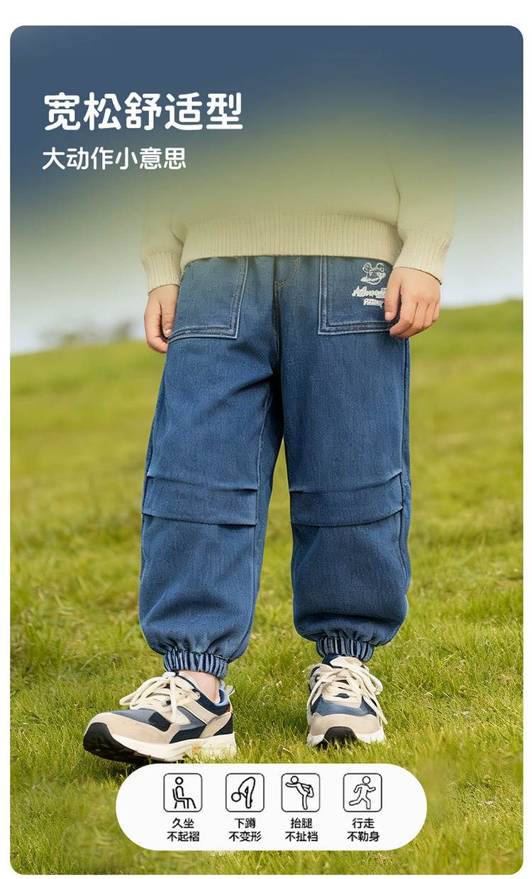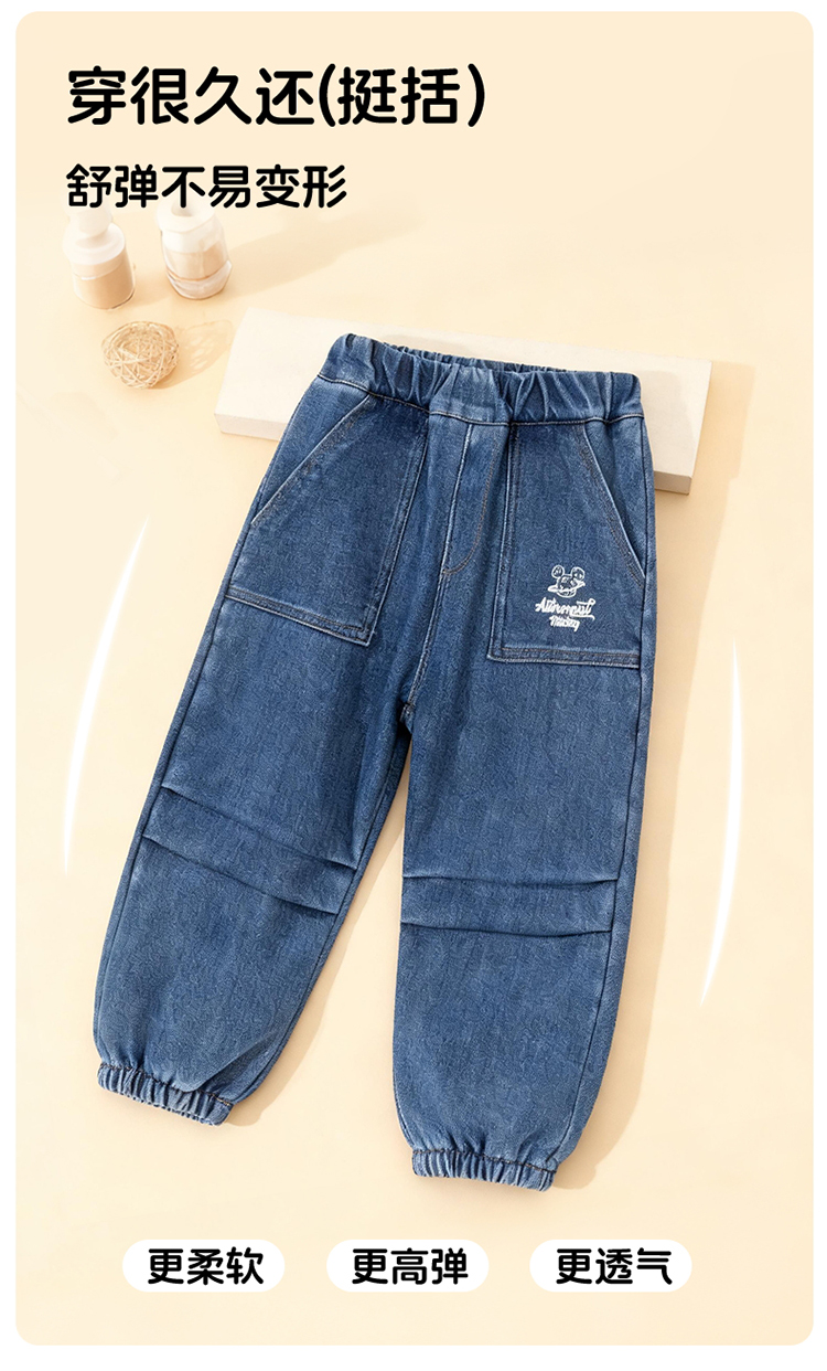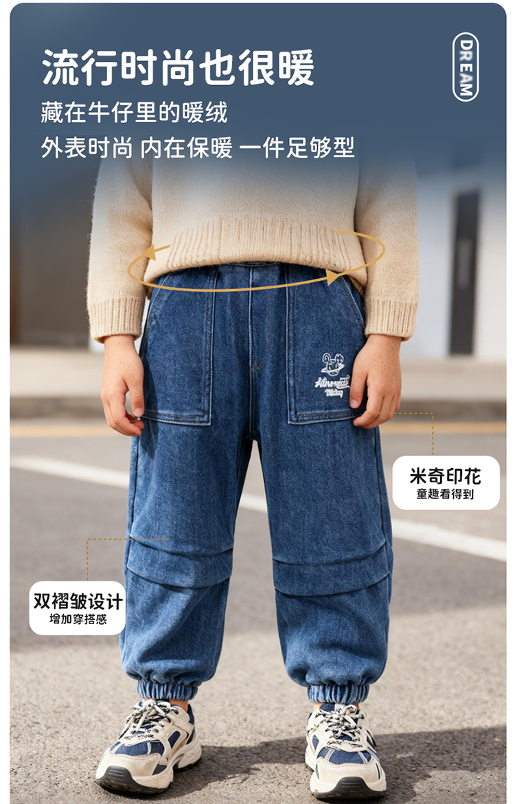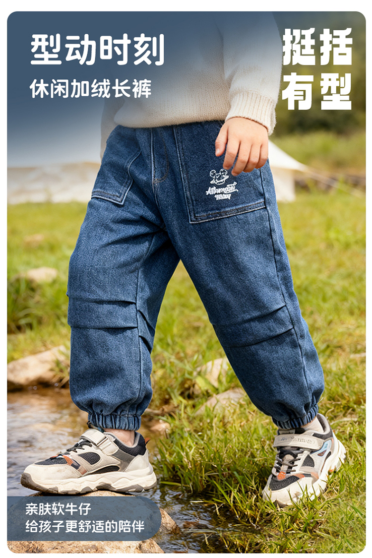 迪士尼男童秋冬加绒牛仔长裤XD4DK007