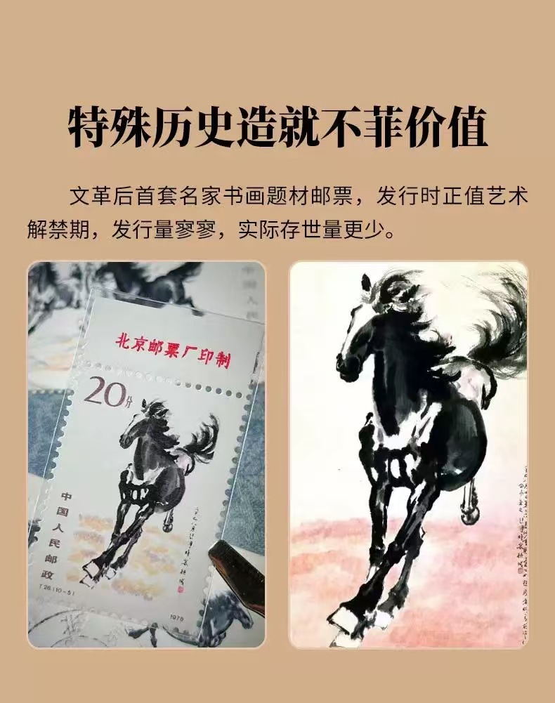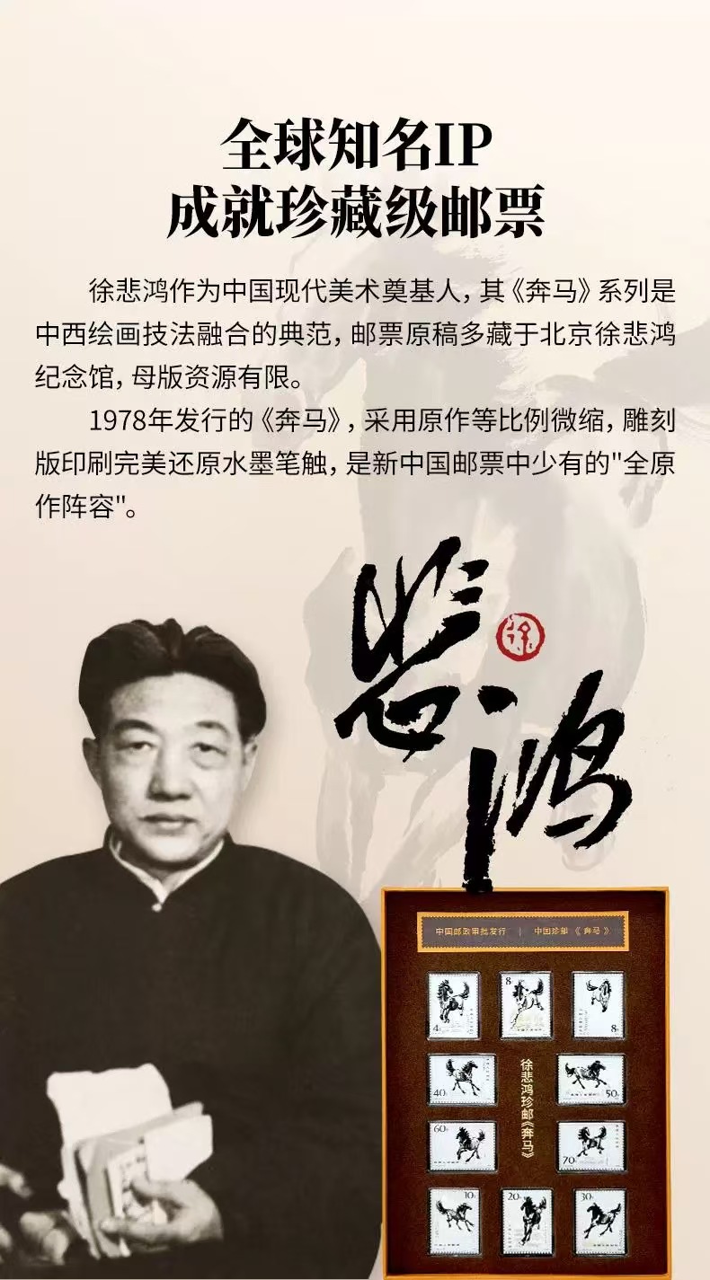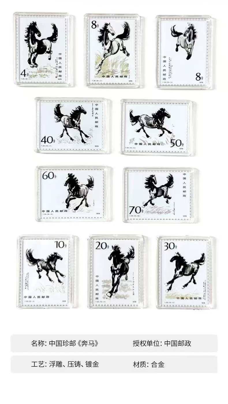 【品名】中国邮政 中国珍邮·徐悲鸿《奔马》纪念大全套 10幅经典图稿纪念邮票 【规格】 内含: 1、奔马邮票10枚组成: 10-1 4分(30mm×40mm)1枚 10-2 8分(30mm×40mm)1枚 10-3 8分(30mm×40mm)1枚 10-4 10分(30mm×40mm)1枚 10-5 20分(30mm×40mm)1枚 10-6 30分(30mm×40mm)1枚 10-7 40分(40mm×30mm)1枚 10-8 50分(40mm×30mm)1枚 10-9 60分(40mm×30mm)1枚 10-10 70分(40mm×30mm)1枚 2、收藏证书 3、合金框纪念册 【产地】国内 【发货包装】独立包装 【发货地】全国多仓随机发 【发货快递】中通、圆通、申通、韵达随机发 【不发货区域】新疆、西藏、港澳台 【发货时效】48-72小时,周末节假日顺延 |