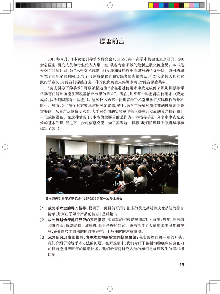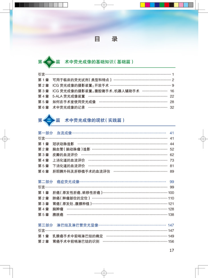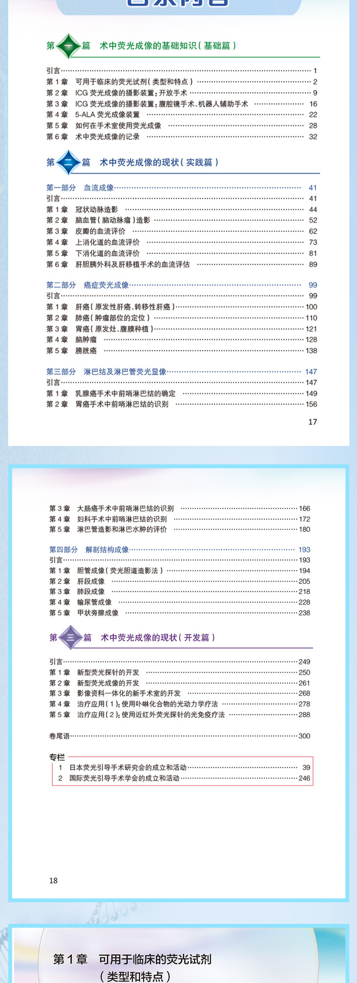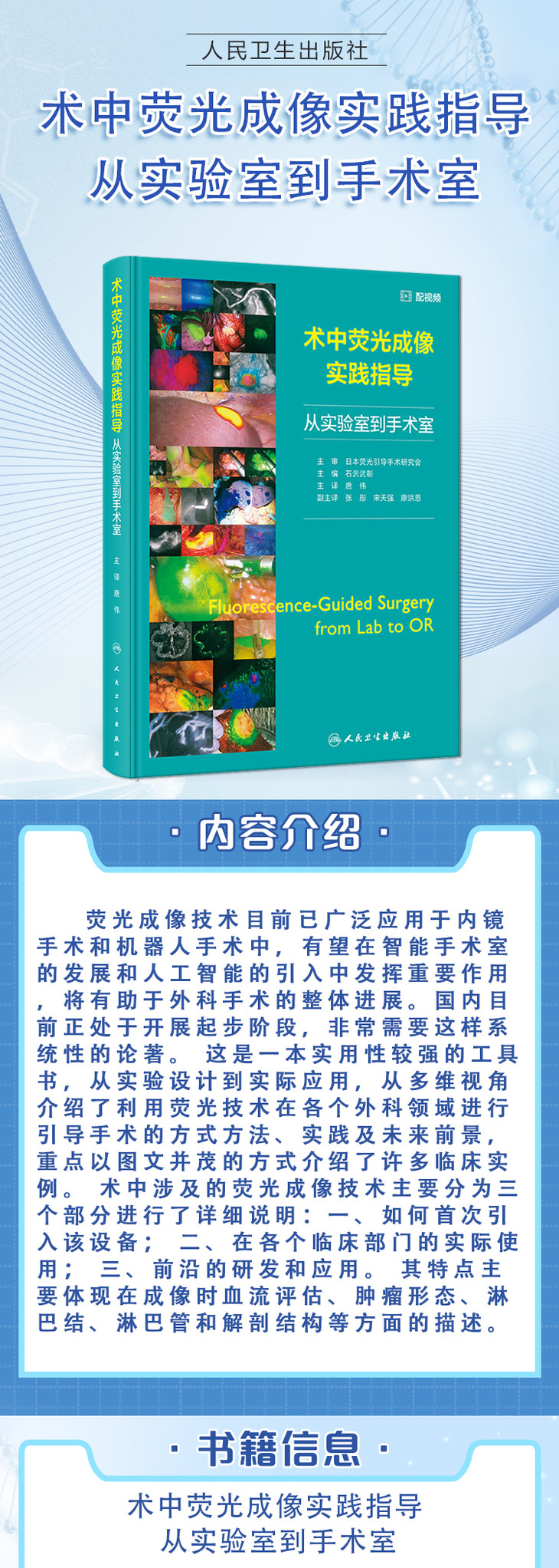 荧光成像技术目前已广泛应用于内镜手术和机器人手术中,有望在智能手术室的发展和人工智能的引入中发挥重要作用,将有助于外科手术的整体进展。国内目前正处于开展起步阶段,非常需要这样系统性的论著。 这是一本实用性较强的工具书,从实验设计到实际应用,从多维视角介绍了利用荧光技术在各个外科领域进行引导手术的方式方法、实践及未来前景,重点以图文并茂的方式介绍了许多临床实例。 术中涉及的荧光成像技术主要分为三个部分进行了详细说明:一、如何首次引入该设备; 二、在各个临床部门的实际使用; 三、前沿的研发和应用。 其特点主要体现在成像时血流评估、肿瘤形态、淋巴结、淋巴管和解剖结构等方面的描述。