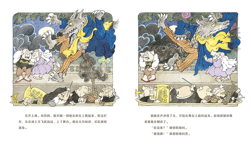 【免费在线读】剧院外张贴着许多剧照。没错,真想不到!每张剧照上都有猪,在跳跃、旋转,或鞠躬,都是肥美的猪。狼的心狂跳不已,爪子禁不住颤抖起来。