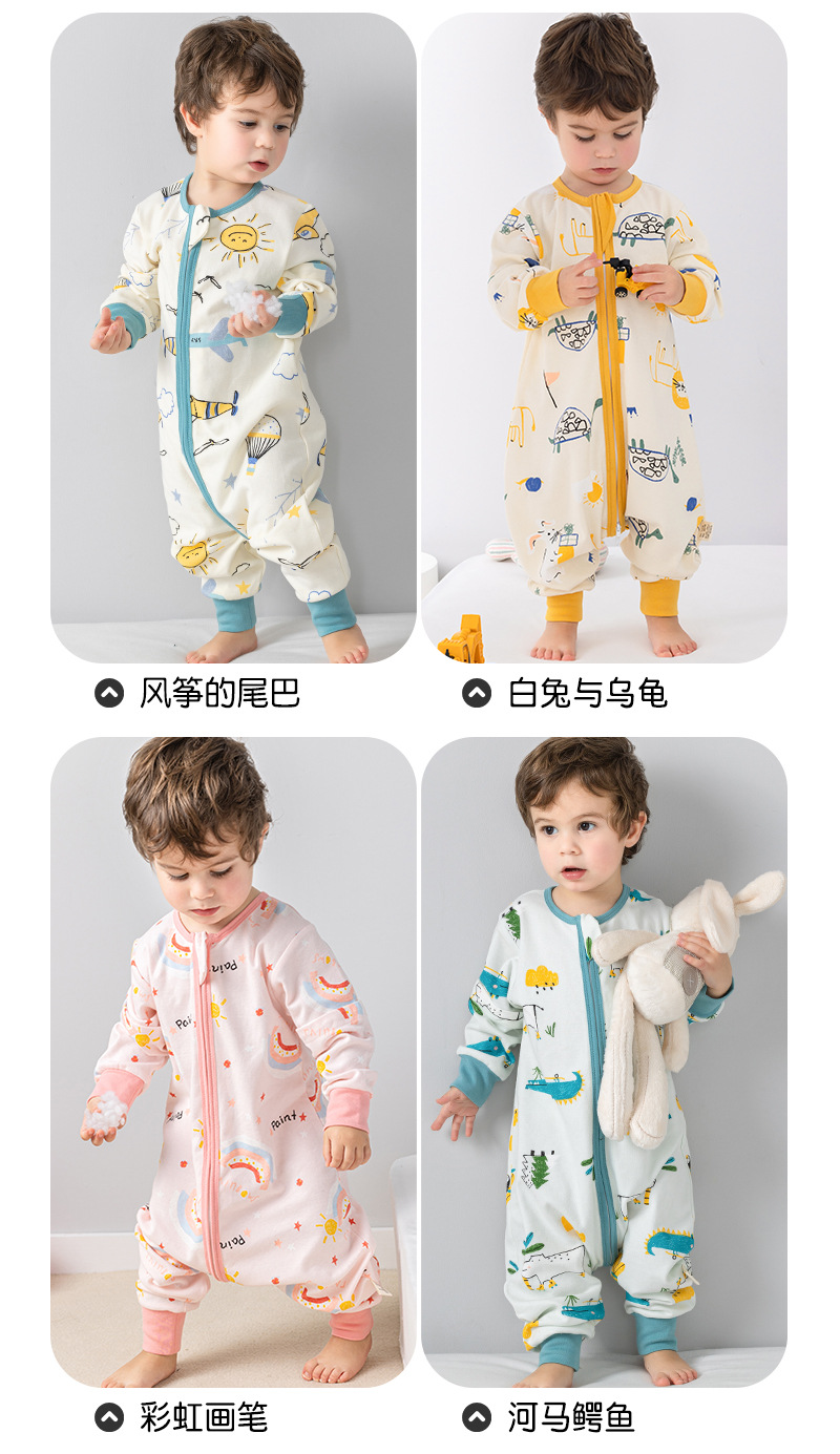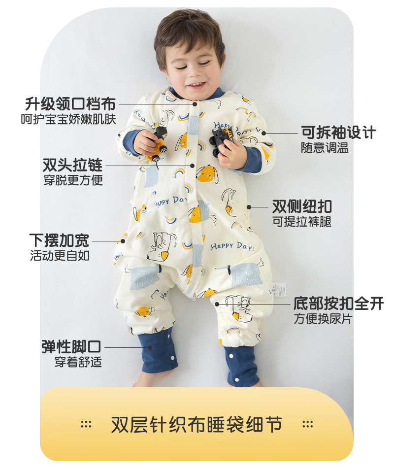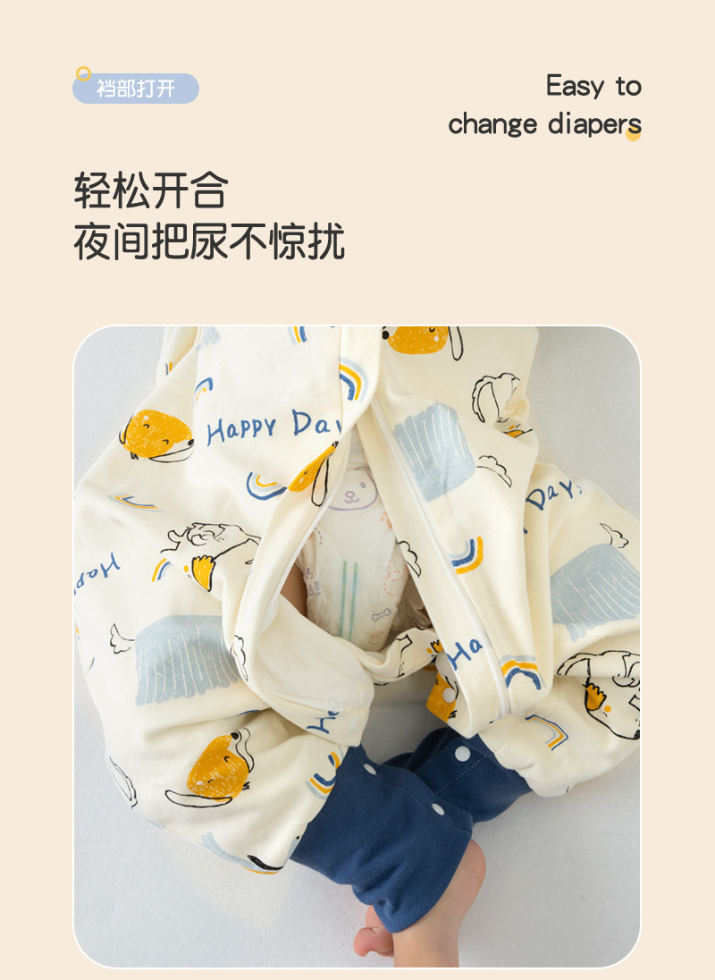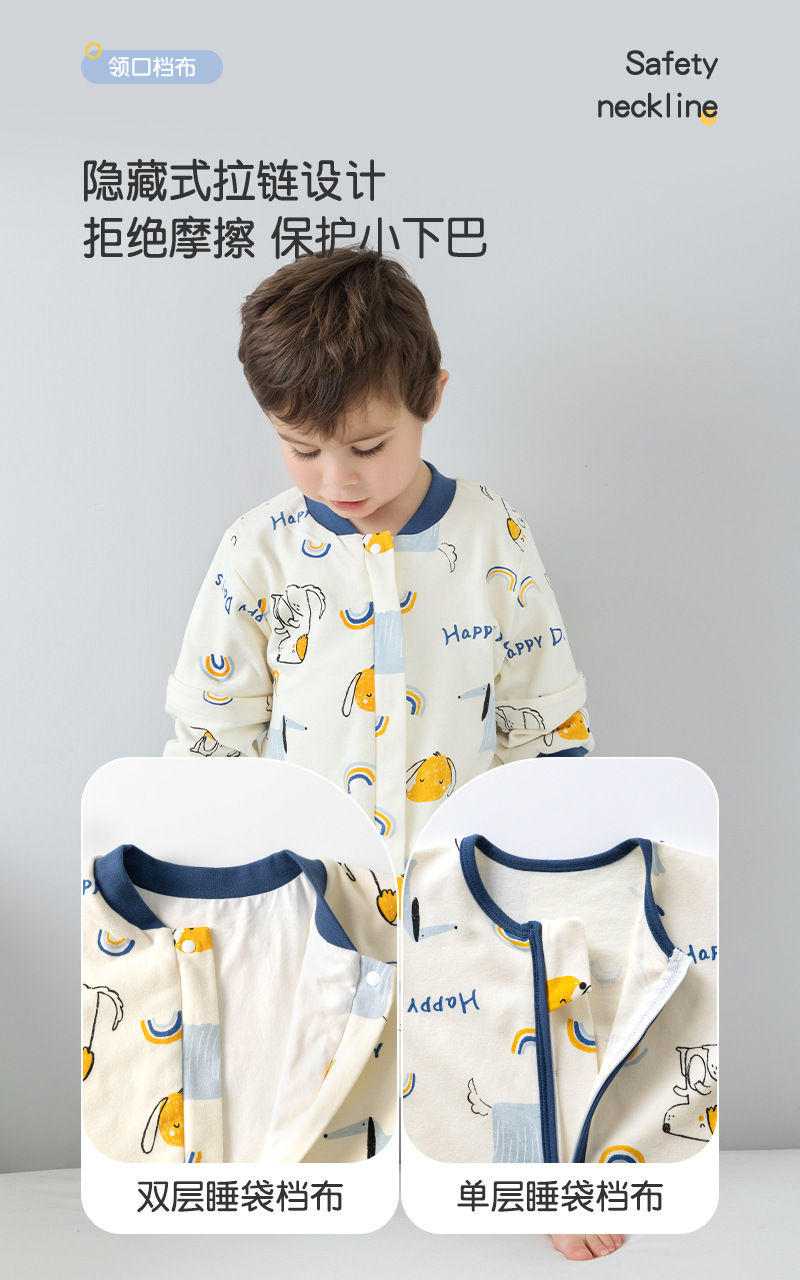 2023新款婴儿睡袋春秋纯棉双层宝宝分腿睡袋儿童秋季空调房防踢被