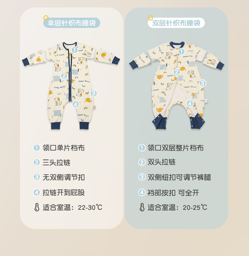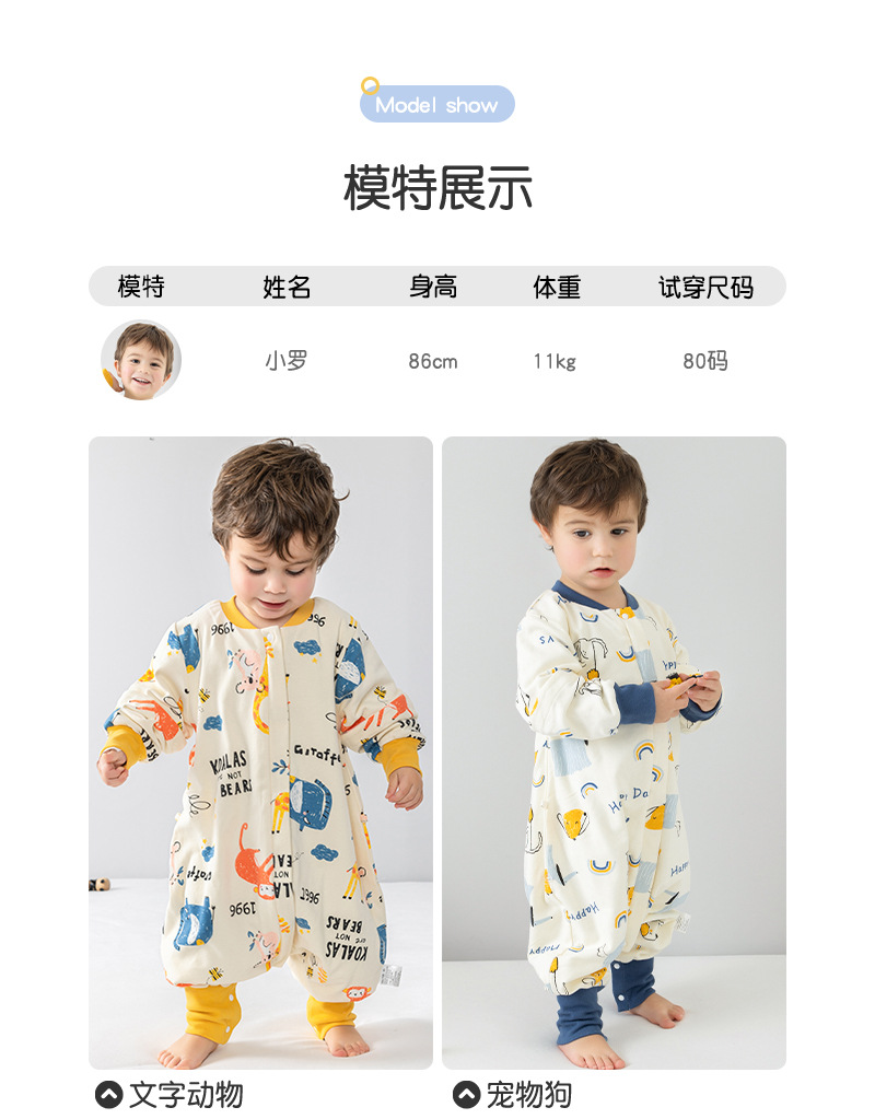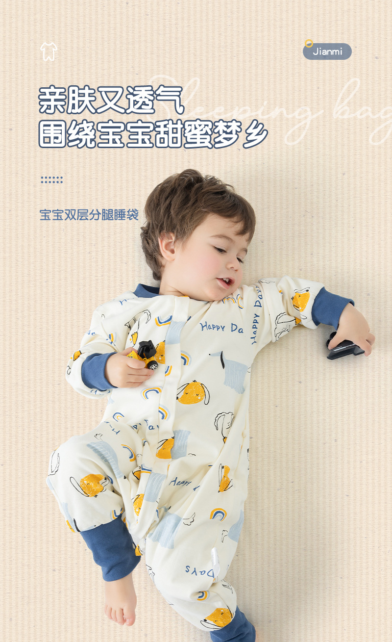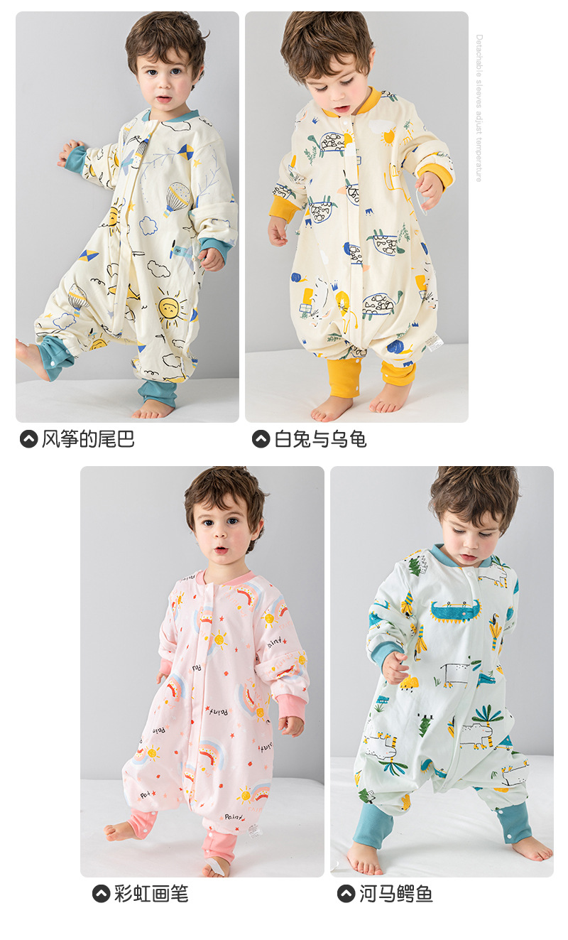 2023新款婴儿睡袋春秋纯棉双层宝宝分腿睡袋儿童秋季空调房防踢被
