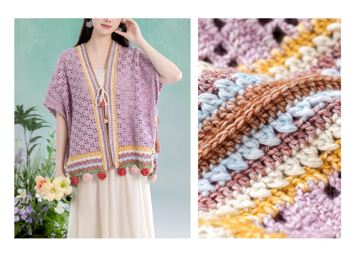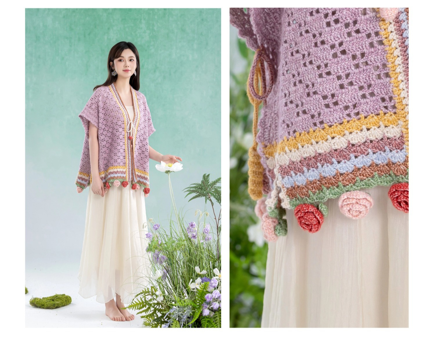 苏苏姐家玫瑰披肩手工编织自制diy钩针毛线团披肩材料包打发时间