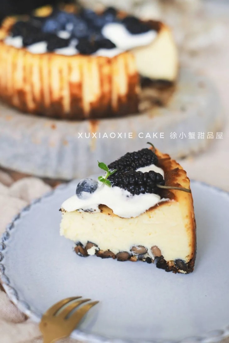在巴斯克芝士蛋糕底部铺满【日式酱油丹波黑豆】,这可不是普通的黑豆,制作日式酱油黑豆至少需要花费至少一天的工序。