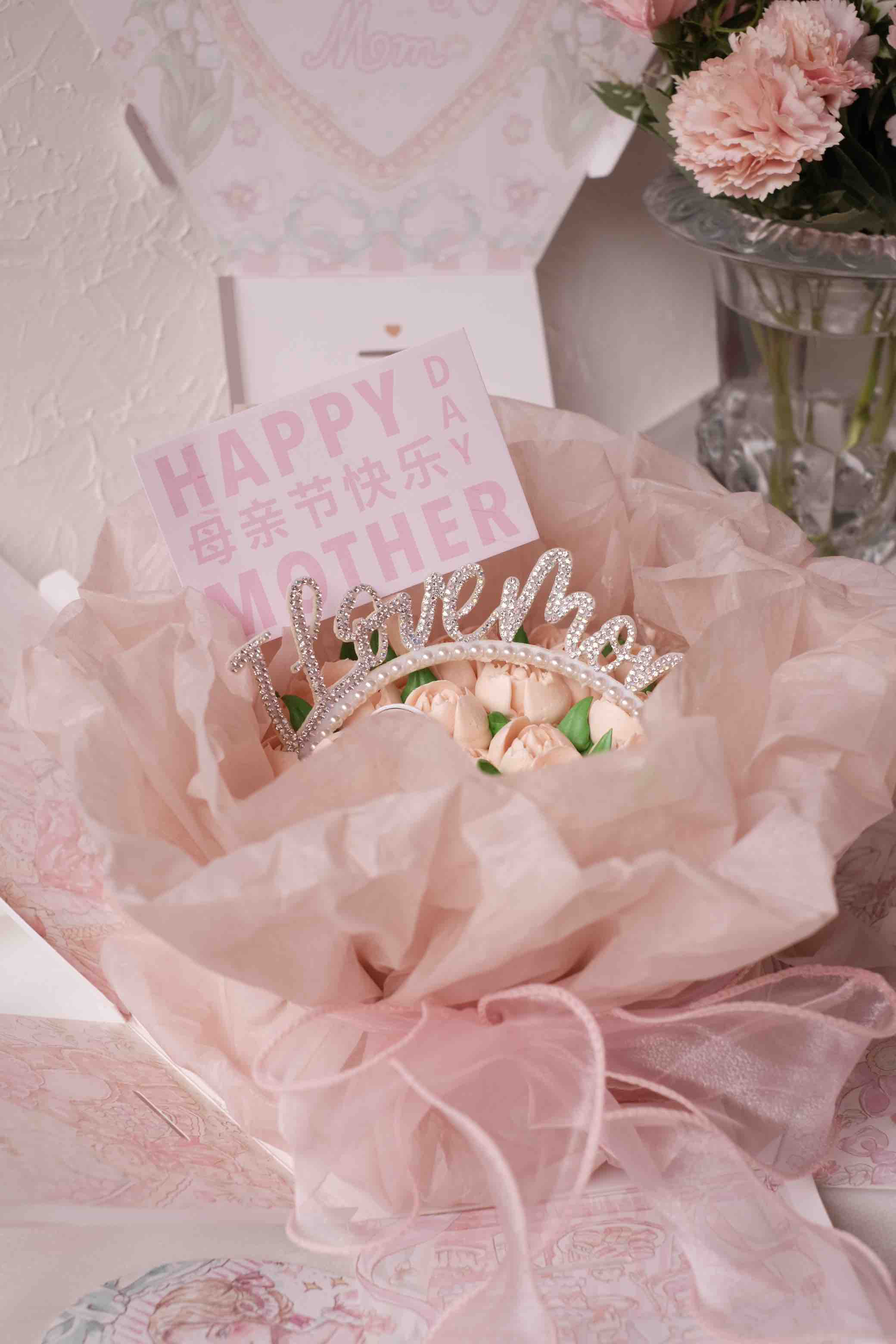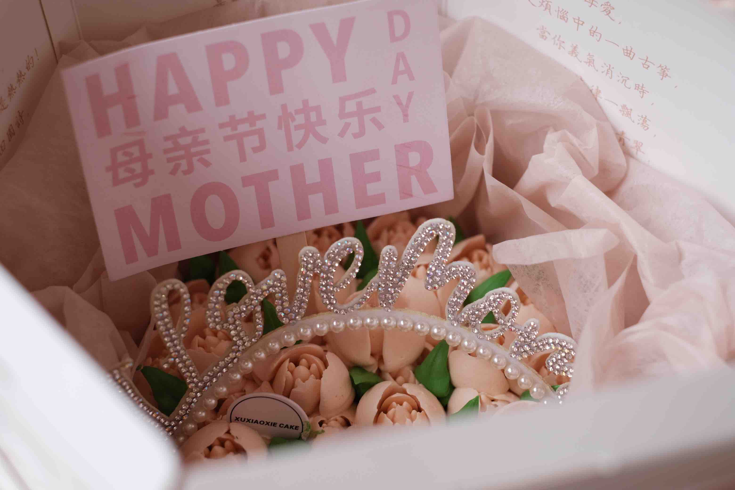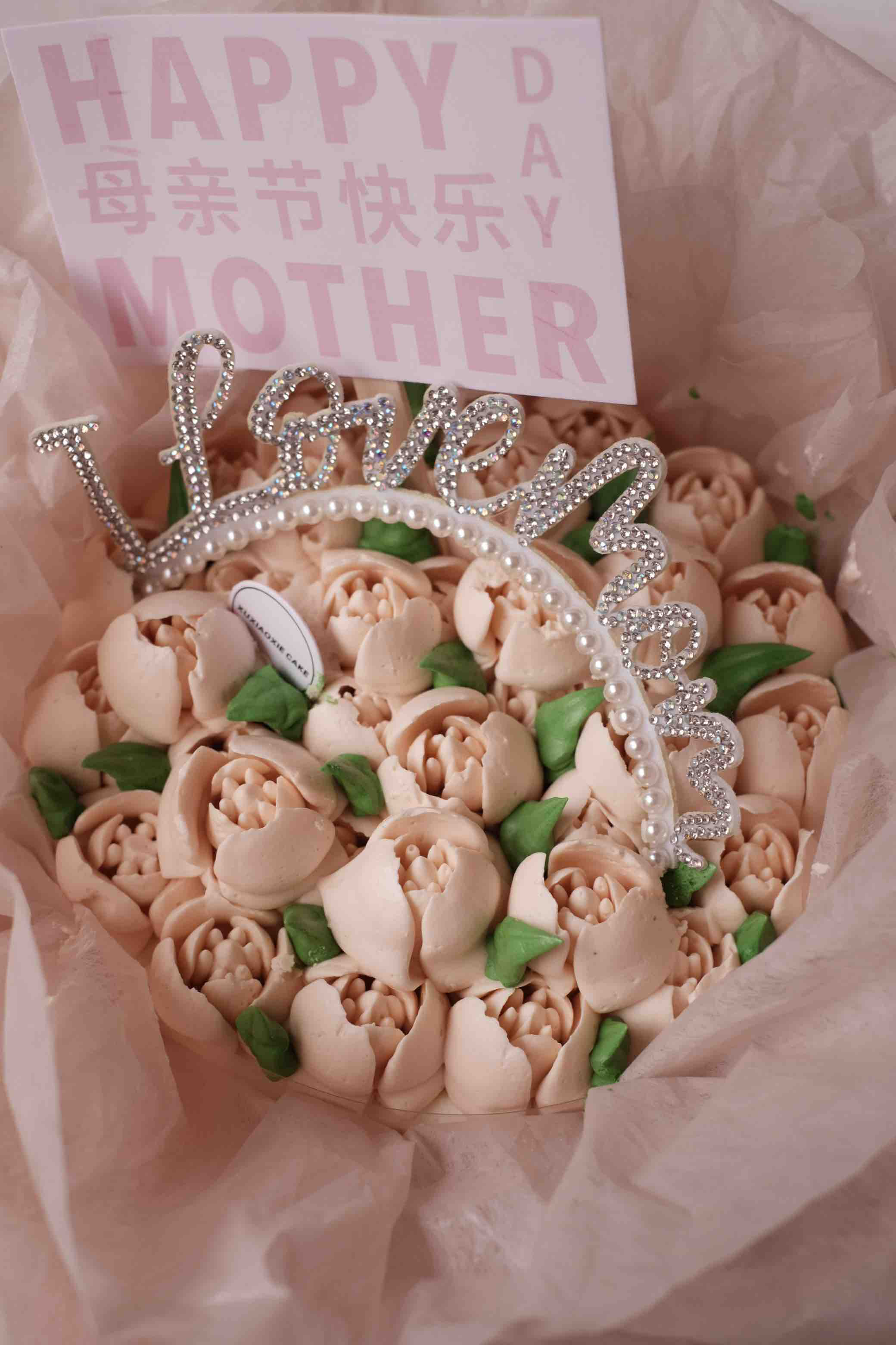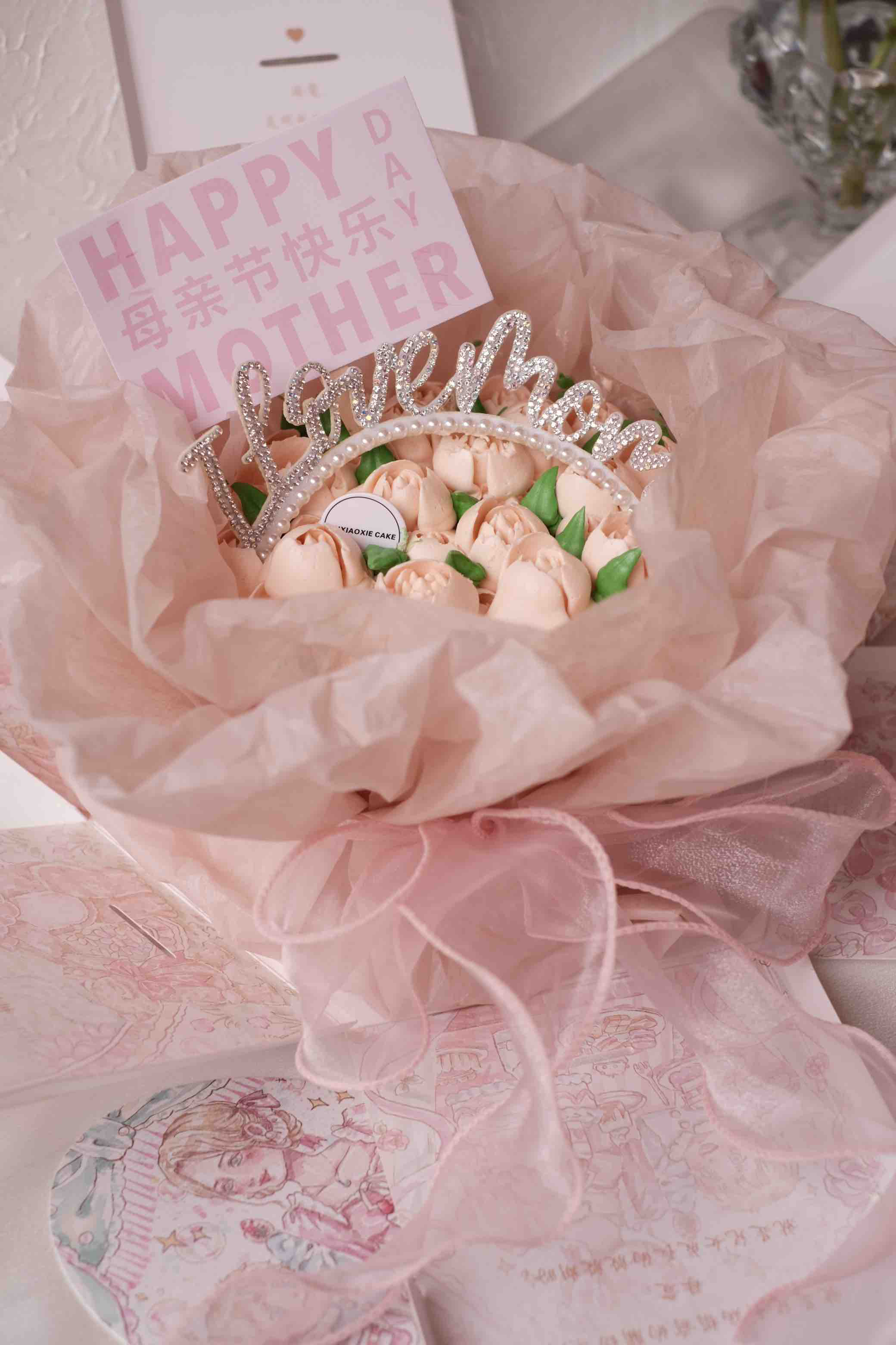 蛋糕底部是巴斯克芝士蛋糕,表面是奶油霜裱花